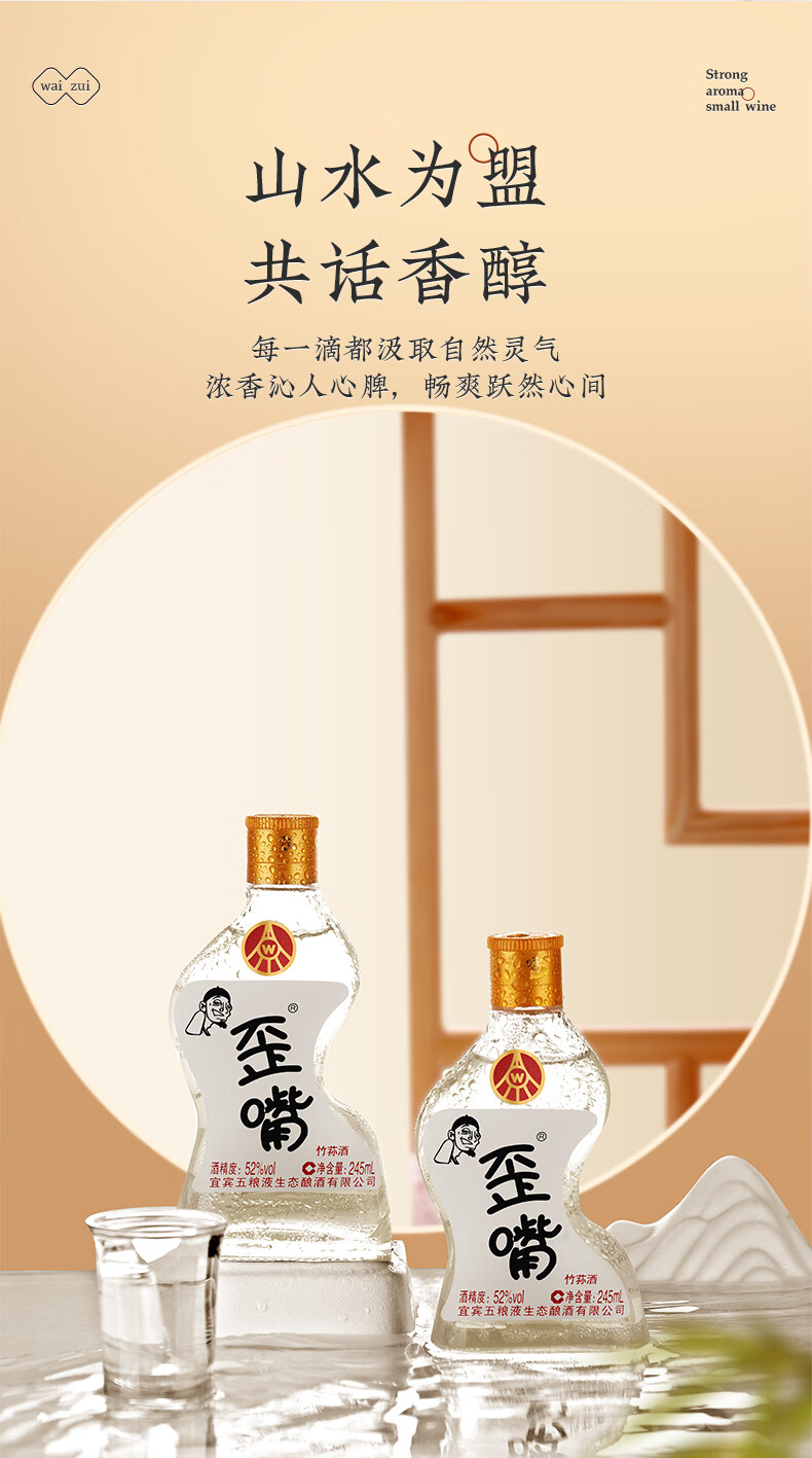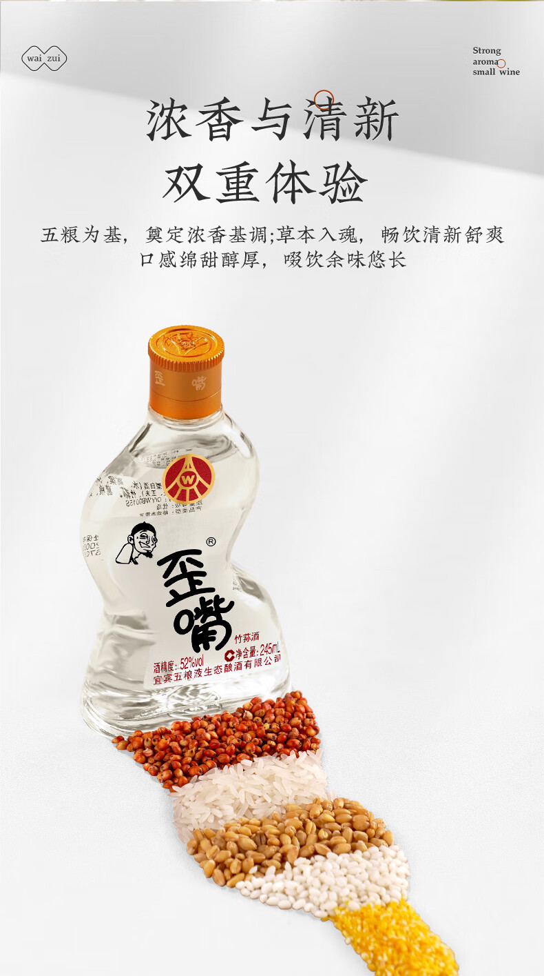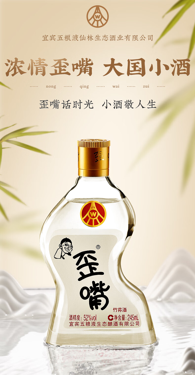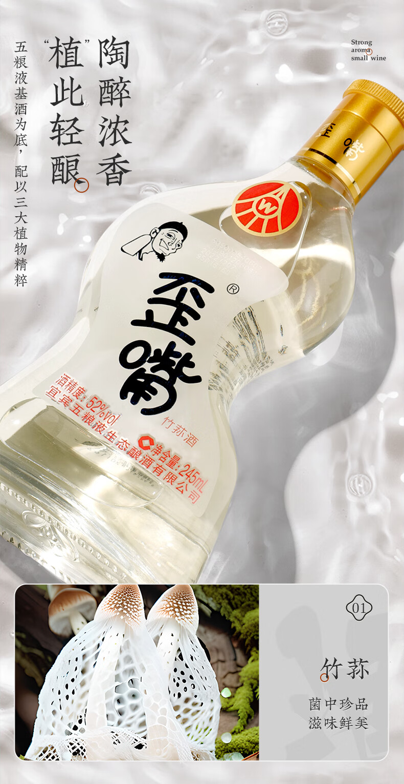 五粮浓香竹荪酒45/52°歪嘴小酒245ml*12瓶整箱浓香型调配酒小瓶装 45度 245mL 12瓶 整箱