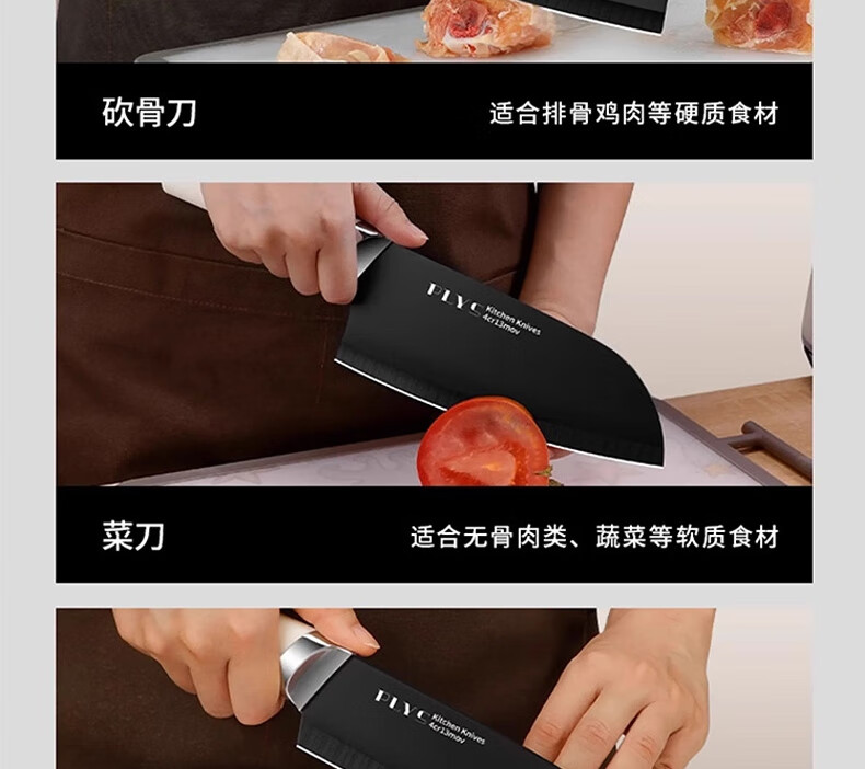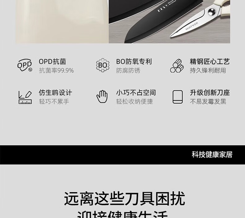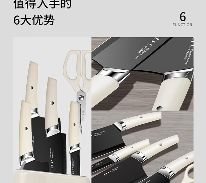 派莱斯刀具套装家用菜刀套装厨房抗菌菜板厨具全套不锈钢切片砍骨组合 【新一代抗菌】刀具 6件套