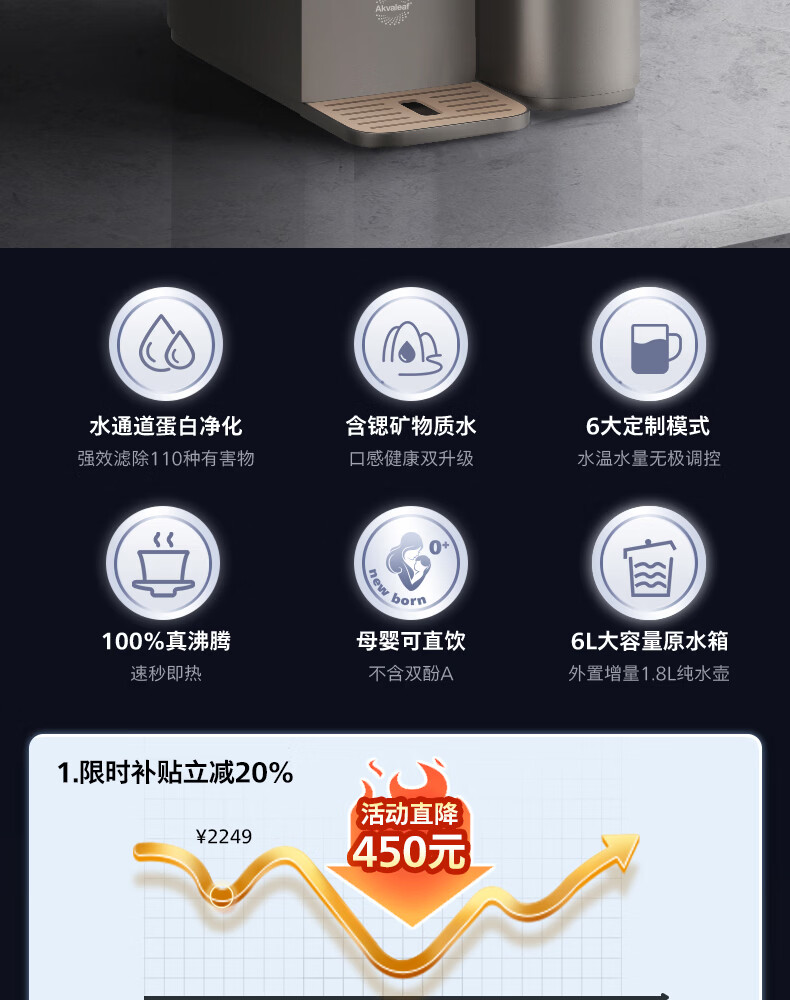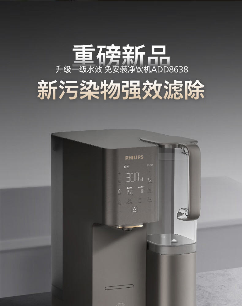 飞利浦净水器家用净化加热直饮一体机RO反渗透净饮机富锶矿化免安装台式即热式饮水机 水通道蛋白ADD8638 ADD8638双芯装