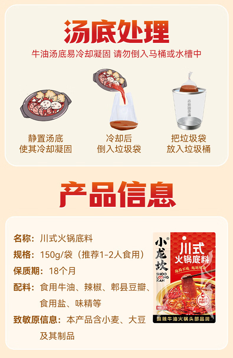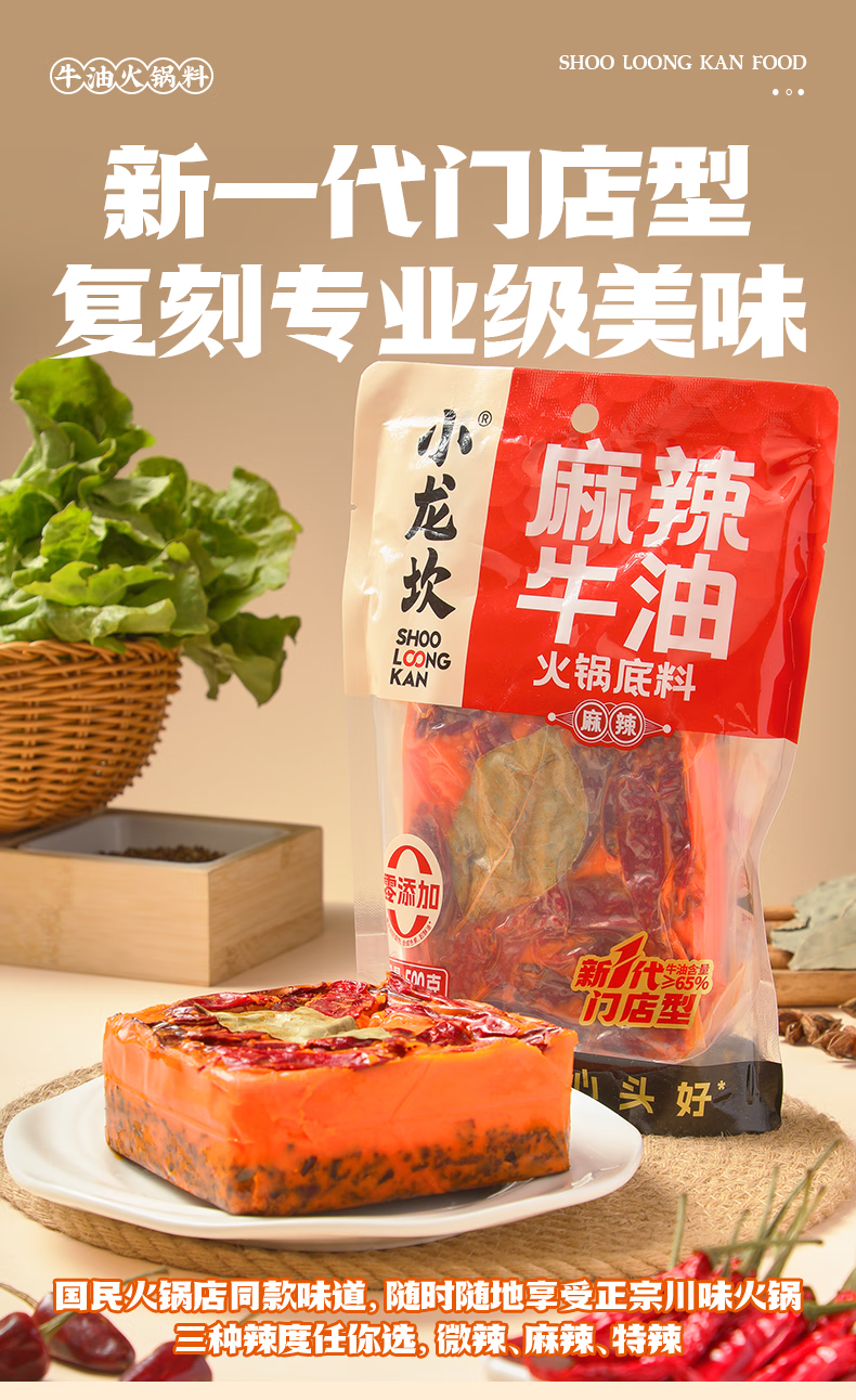 小龙坎 火锅底料 新型一料多用牛油冒菜干锅麻辣香锅调料 颗粒装 川式牛油150g*6袋
