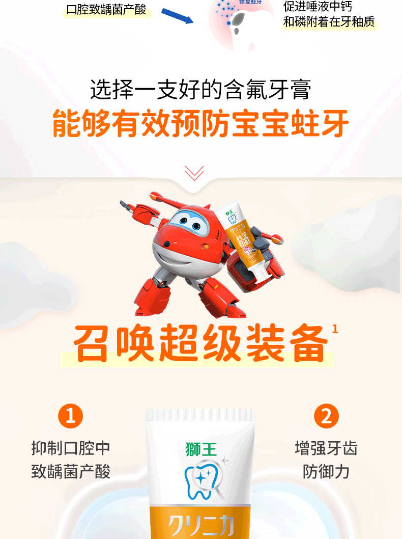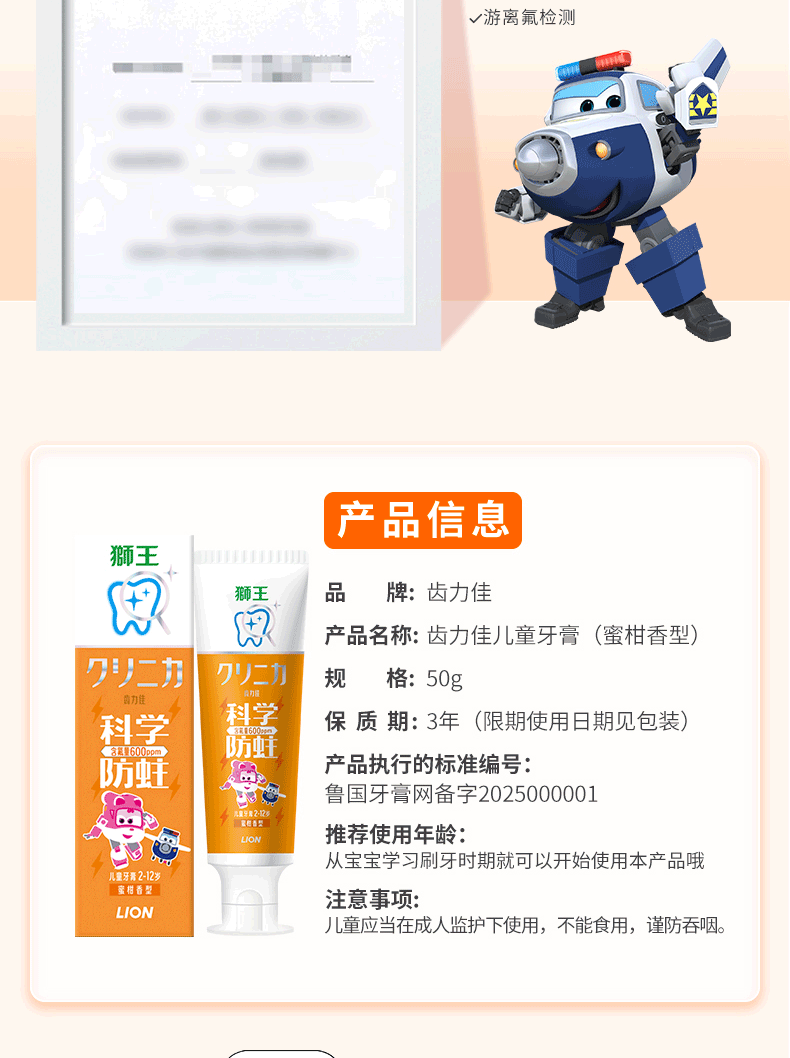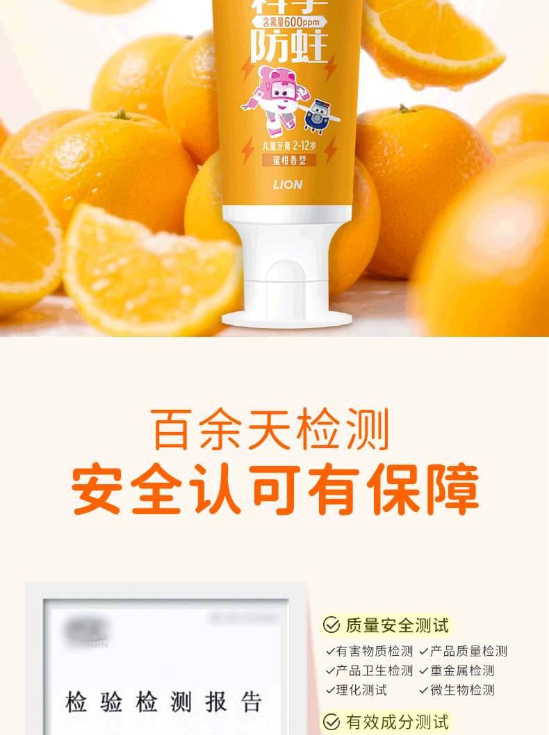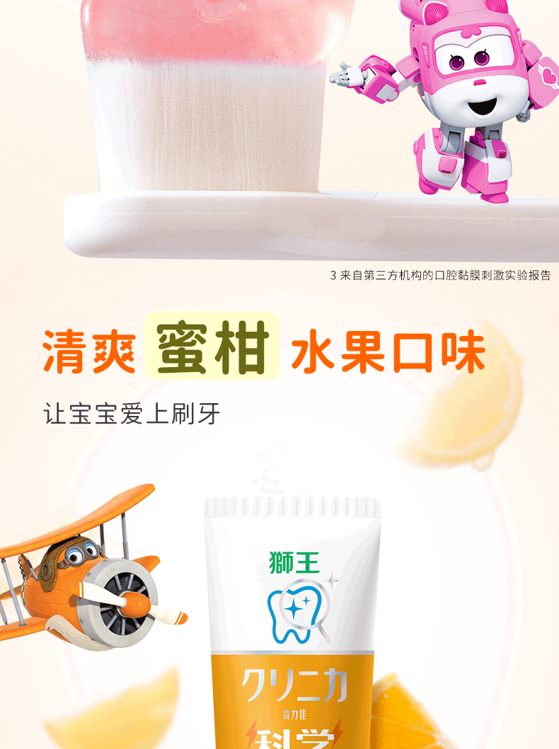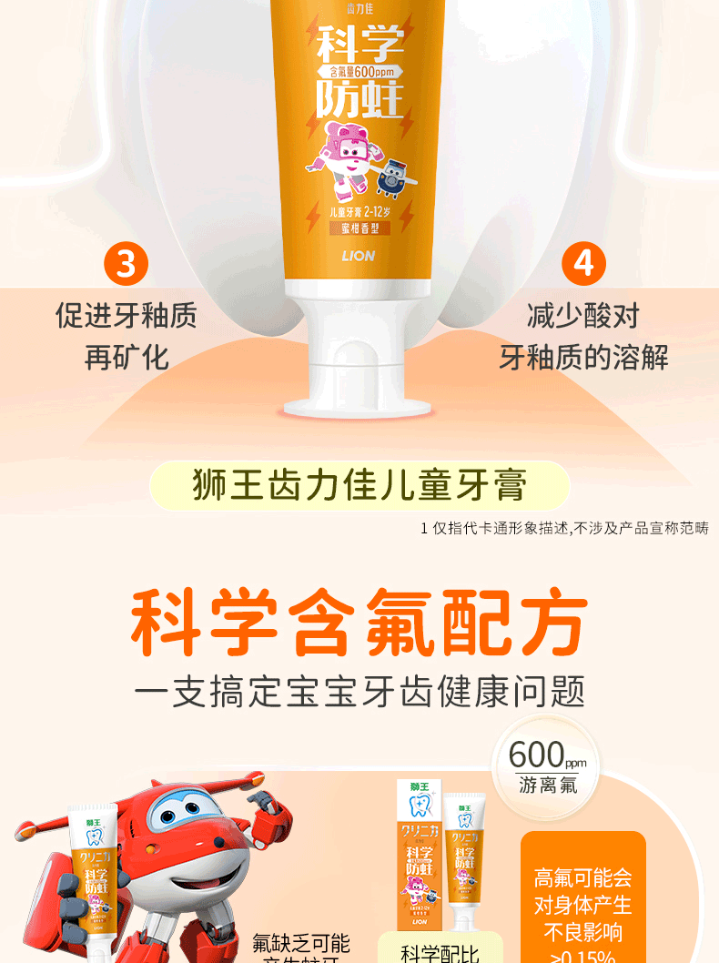 狮王(Lion)齿力佳儿童科学防蛀牙膏2-12岁(蜜柑)50g含木糖醇防蛀牙固齿
