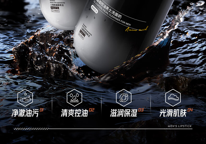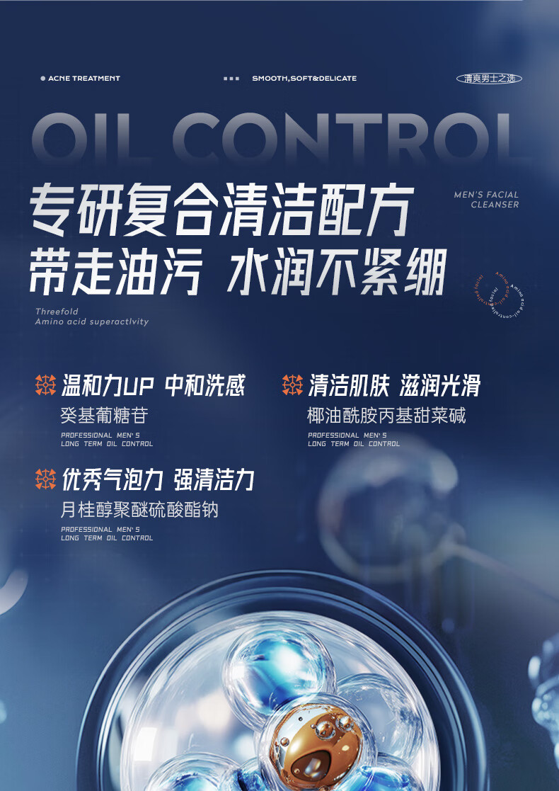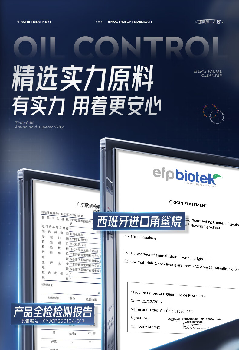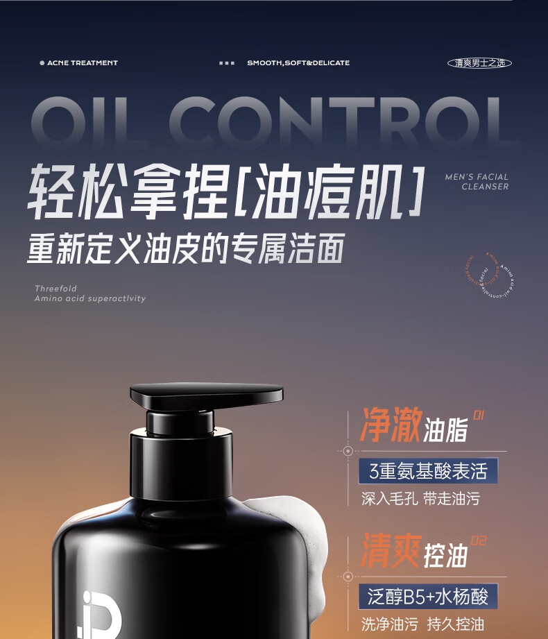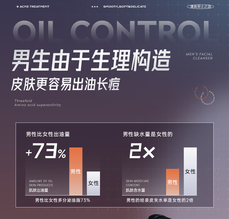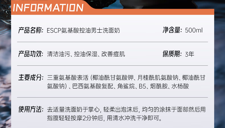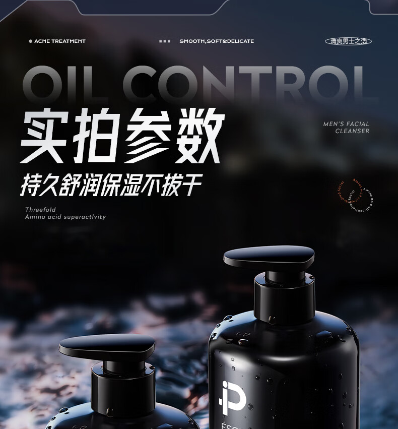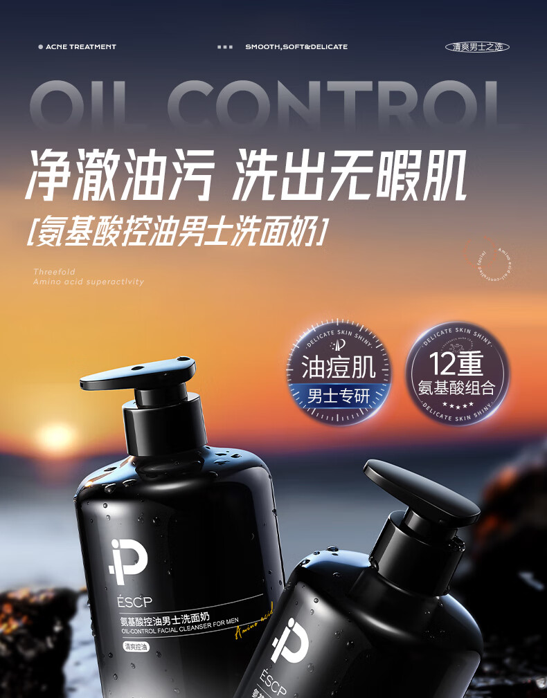 ESCP氨基酸控油男士洗面奶清洁保湿控油收缩毛孔洁面乳圣诞节礼物 2瓶/1000ml
