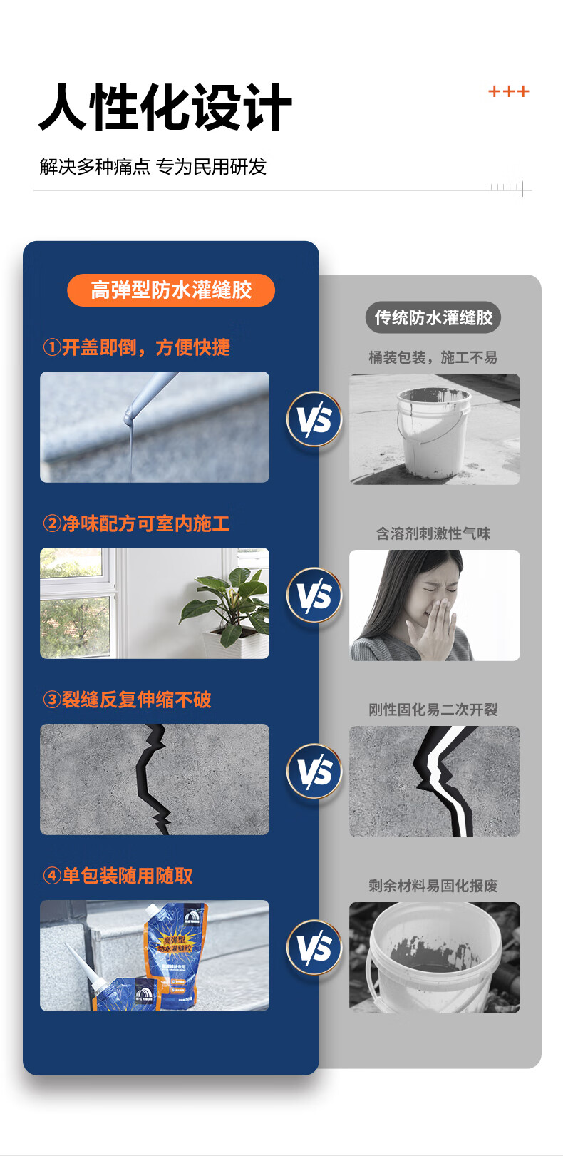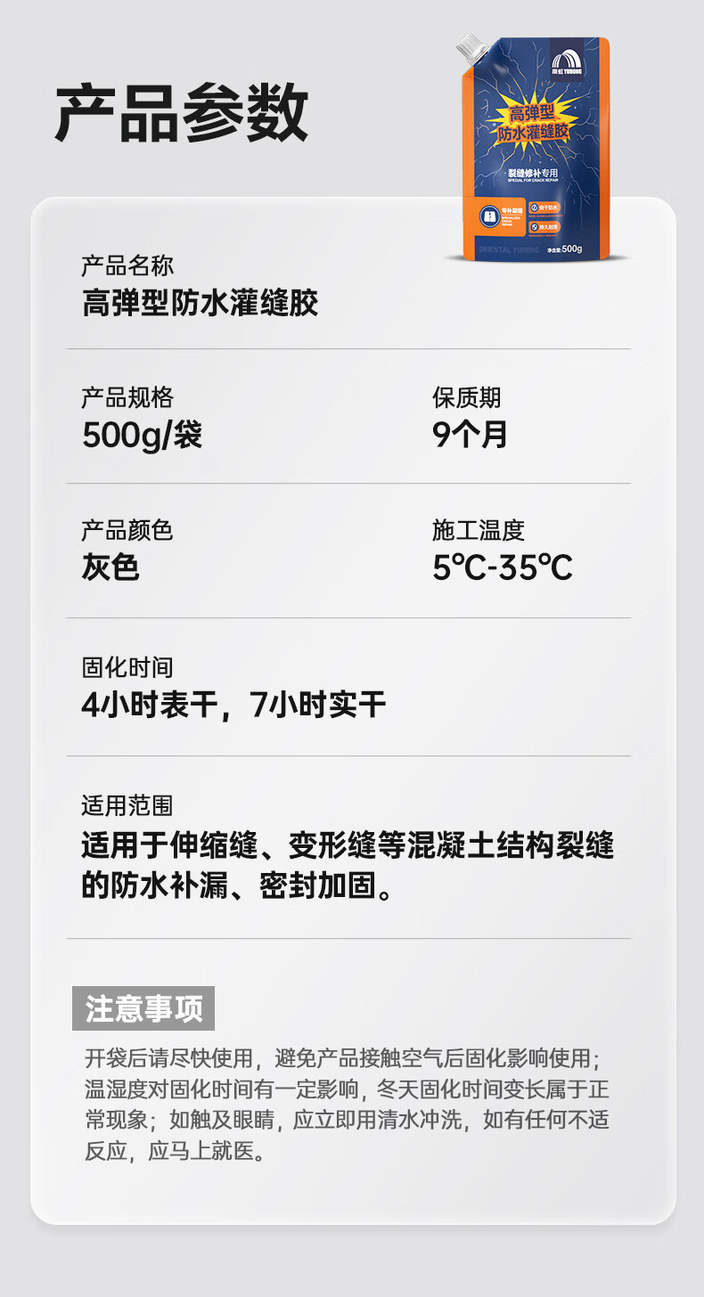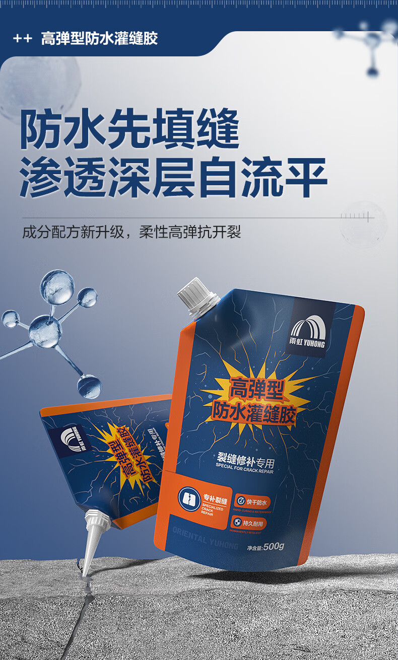 雨虹防水高弹型防水灌缝胶屋顶地面裂缝修复抗裂墙体缝隙500g 约施工6米