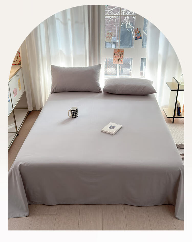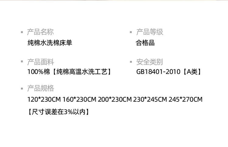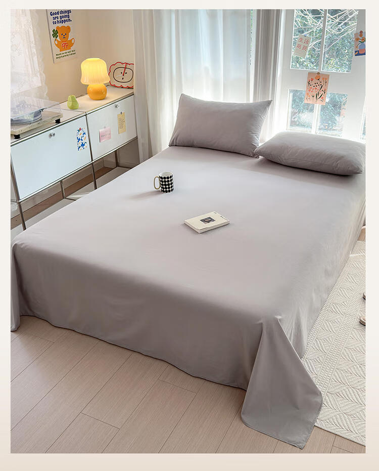浪莎(LangSha)A类纯棉水洗棉床单1.5米x2米床垫保护套200x230cm单件宿舍床笠罩 浅米 245cm*270cm 床单