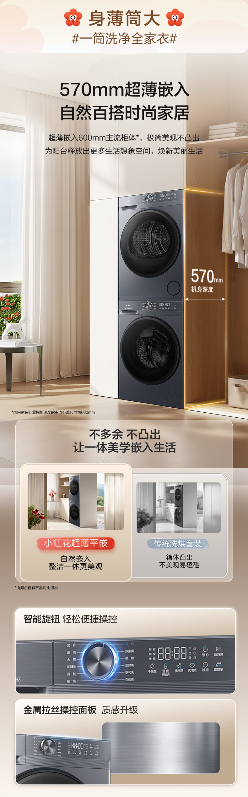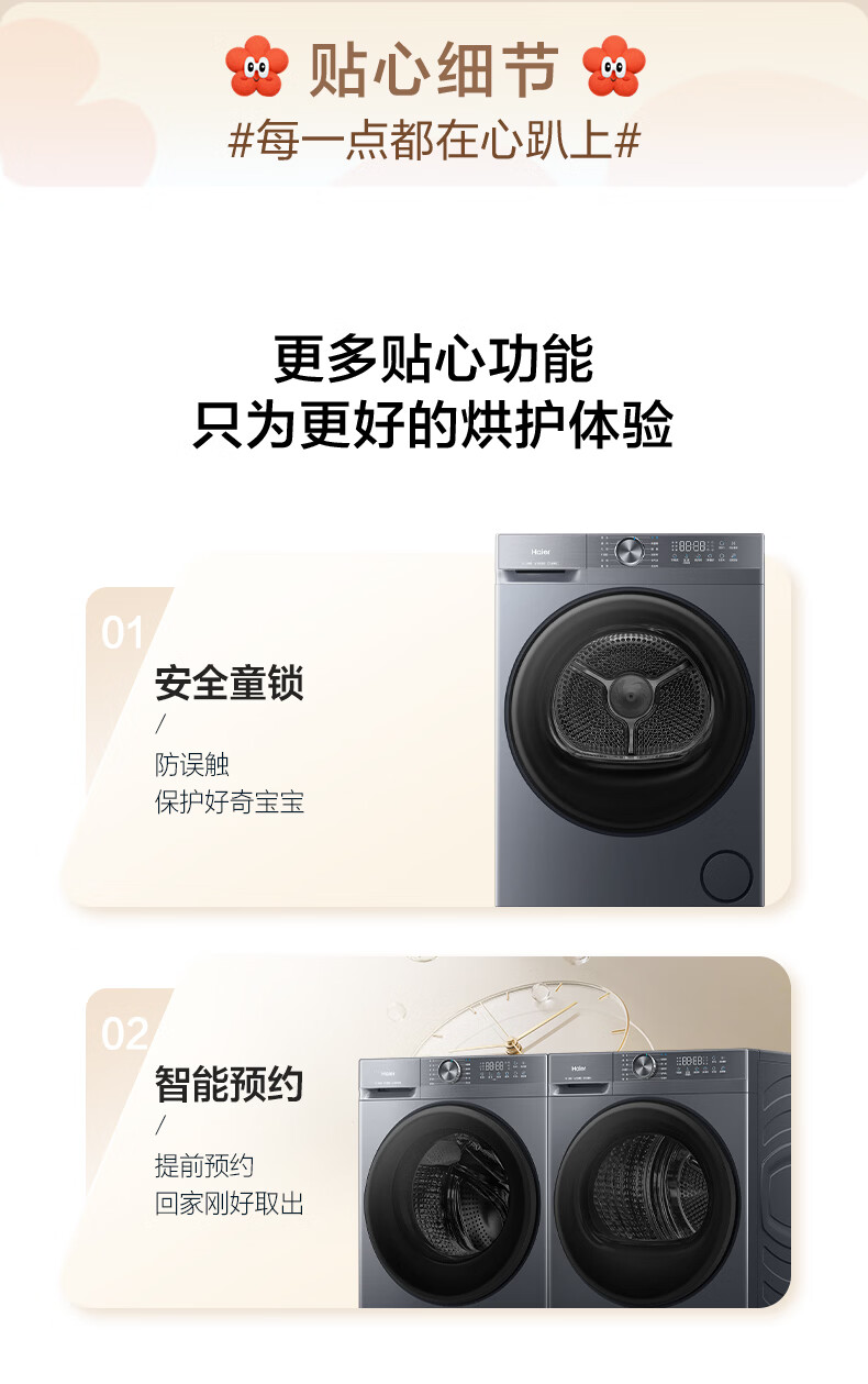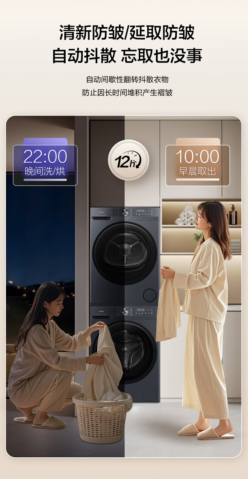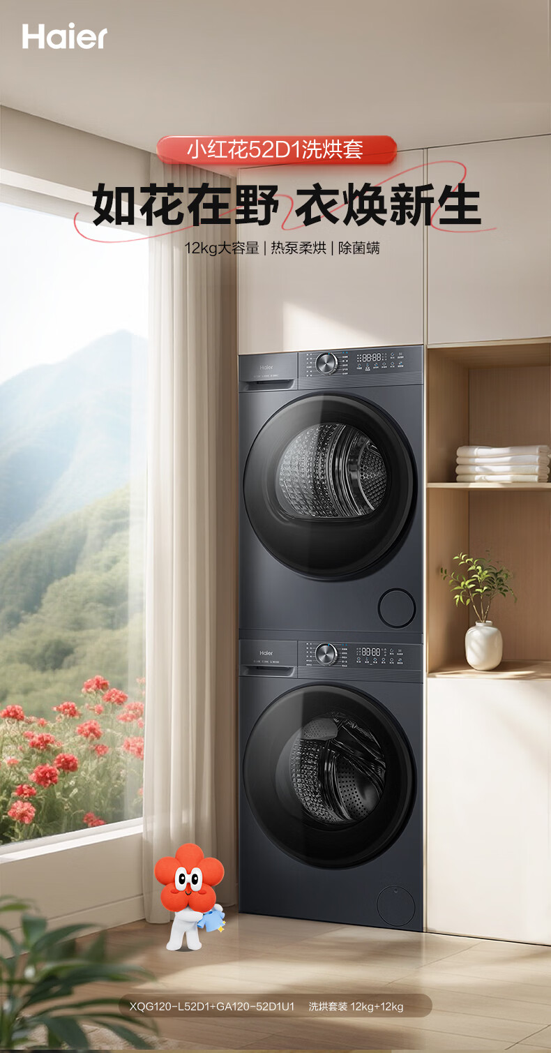 海尔(Haier)【2026旗舰新品小红花系列】12公斤超薄大容量八维减震洗烘套装12KG滚筒洗衣机+12KG热泵烘干机组合洗烘一体 双重除菌+慕斯冲浪洗+热泵智柔烘干洗烘套装12kg