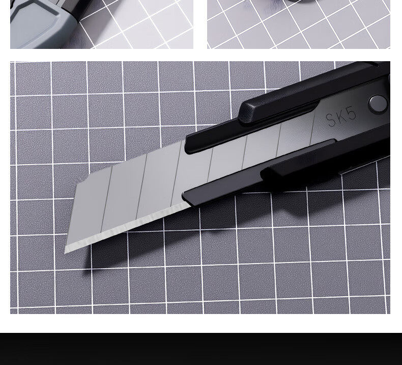 得力(deli)黑刃防锈美工刀/裁纸刀大号耐用经典升级自锁18mm可拆快递可折 黑色TD464