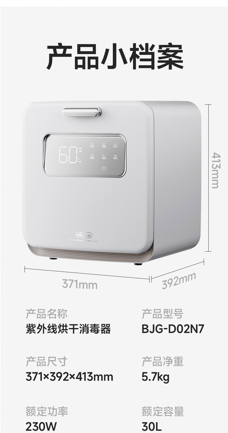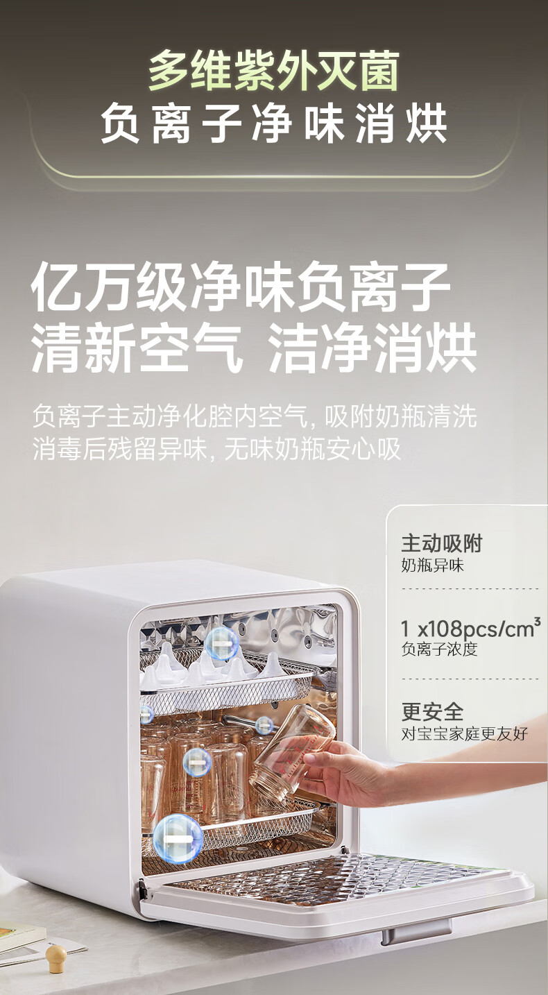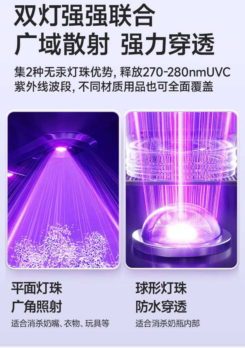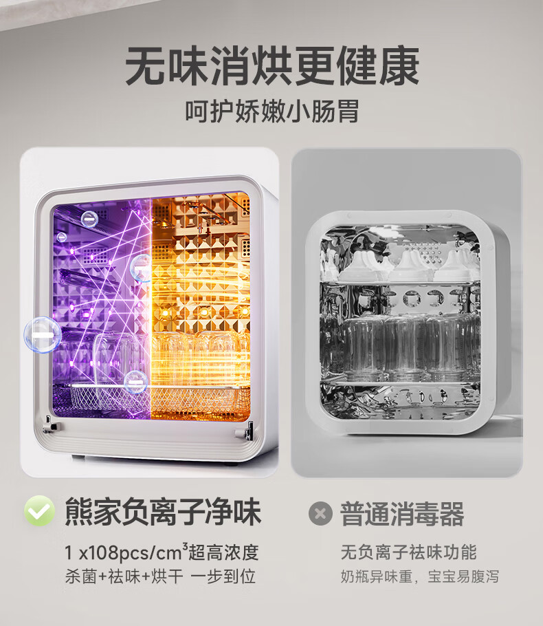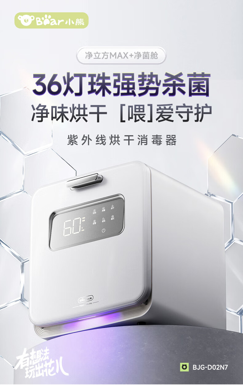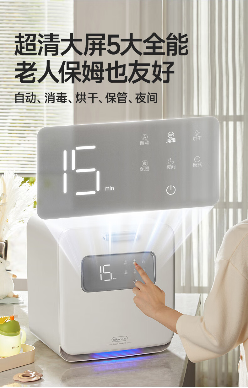 小熊(Bear)消毒柜 奶瓶消毒器带烘干 婴儿紫外线消毒器36灯珠30L 净立方Max+