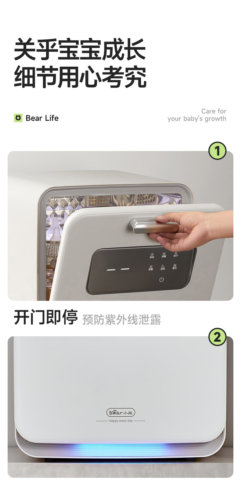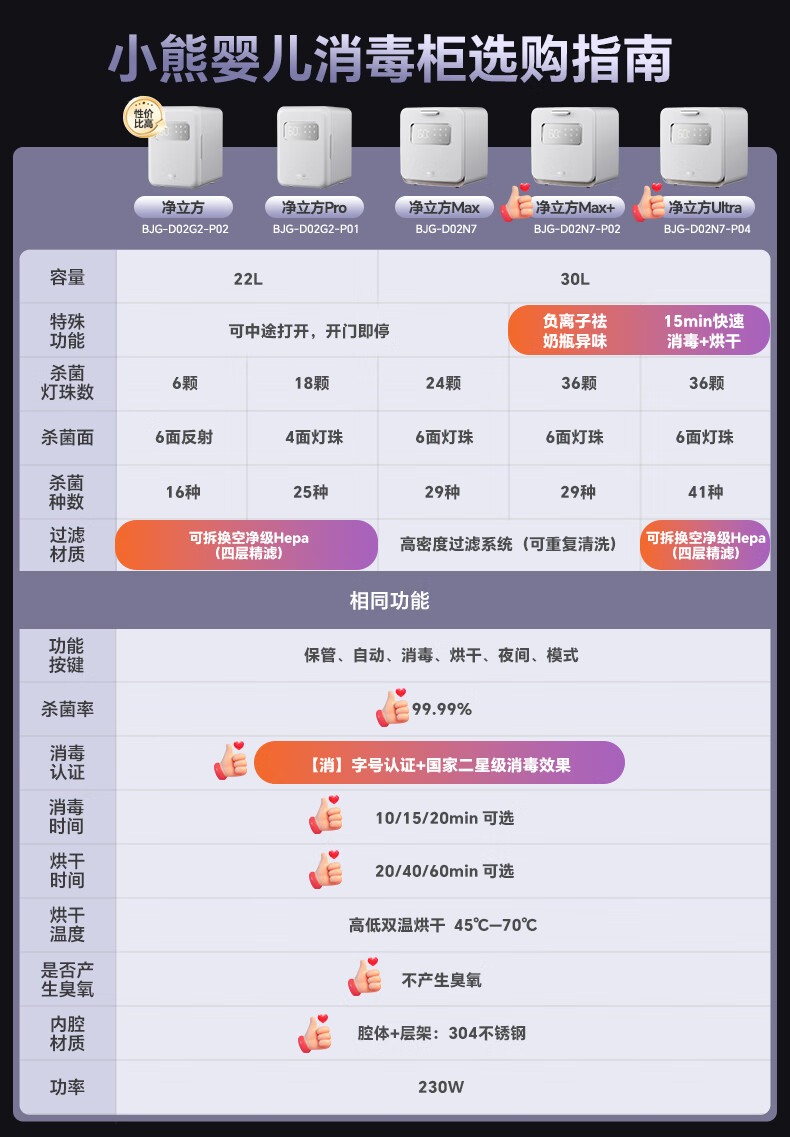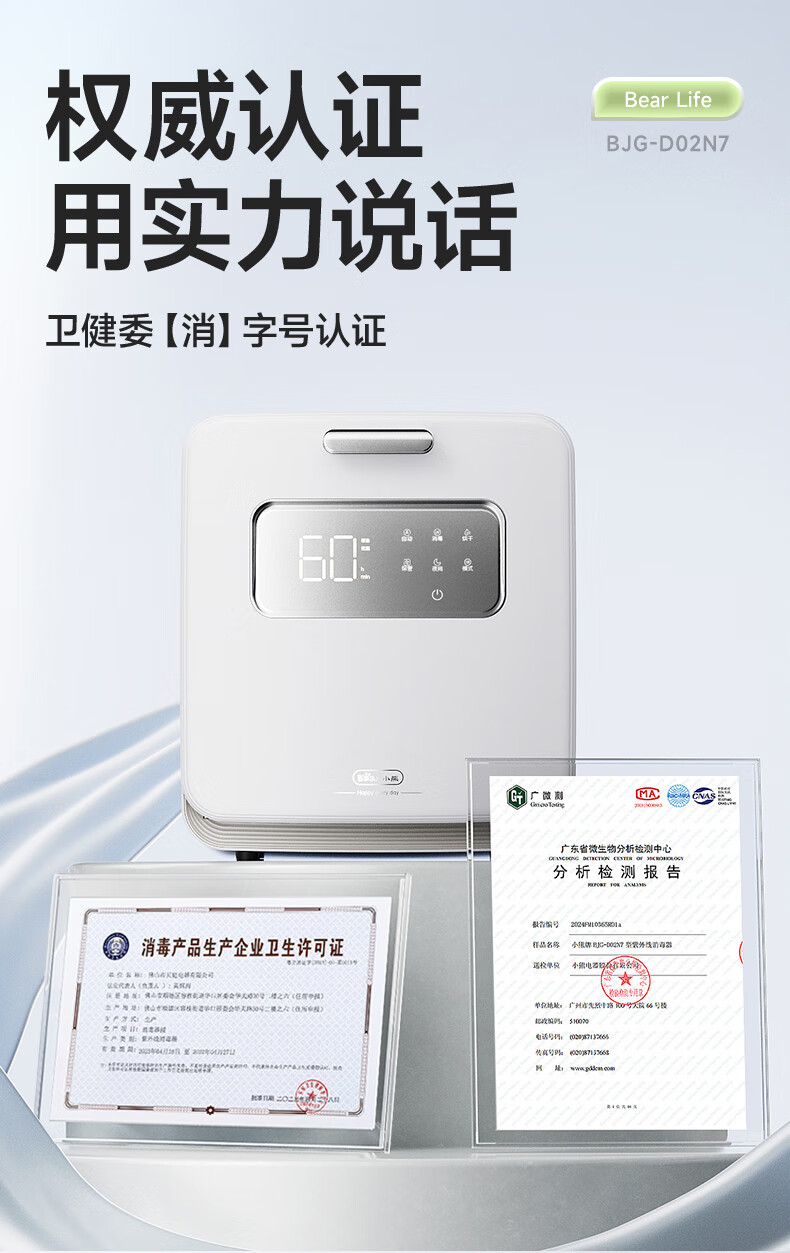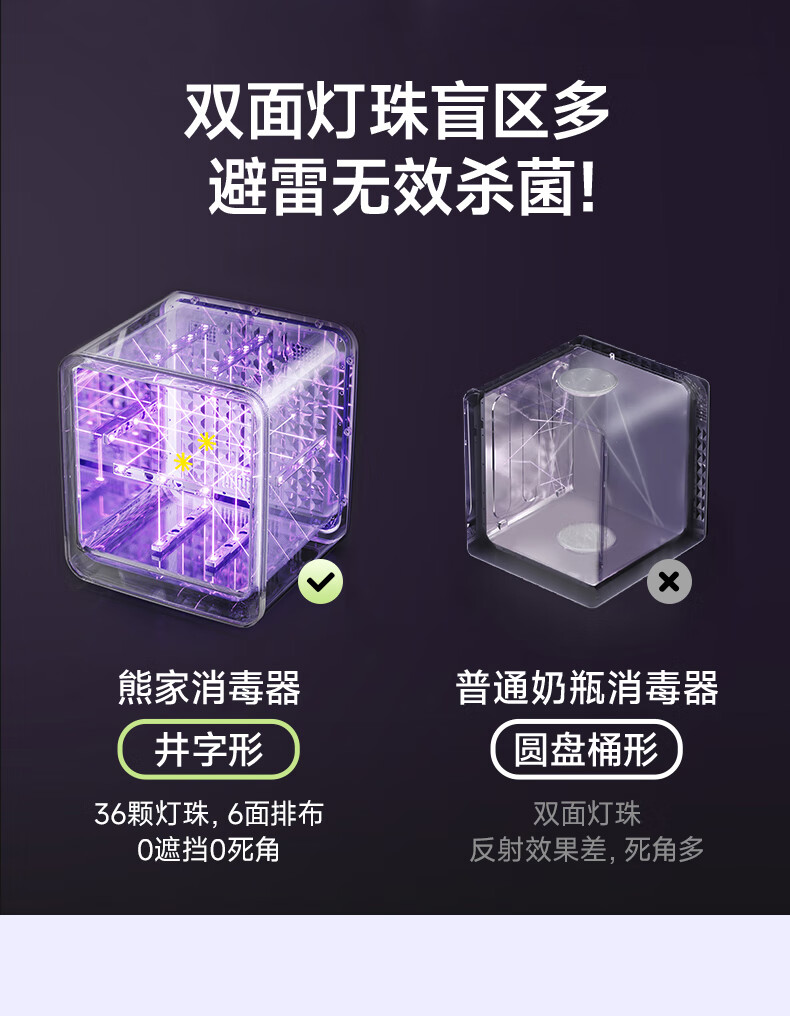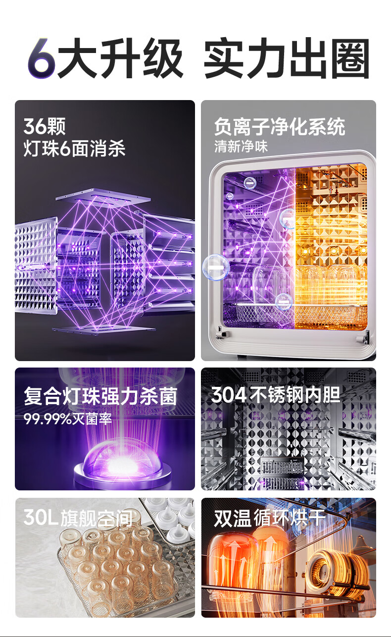 小熊(Bear)消毒柜 奶瓶消毒器带烘干 婴儿紫外线消毒器36灯珠30L 净立方Max+