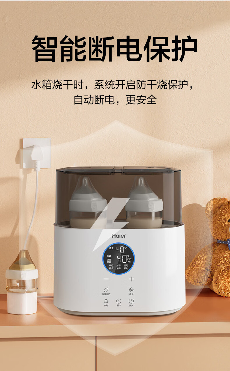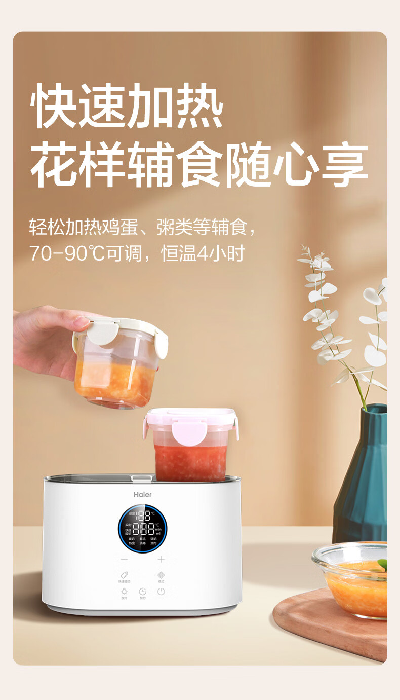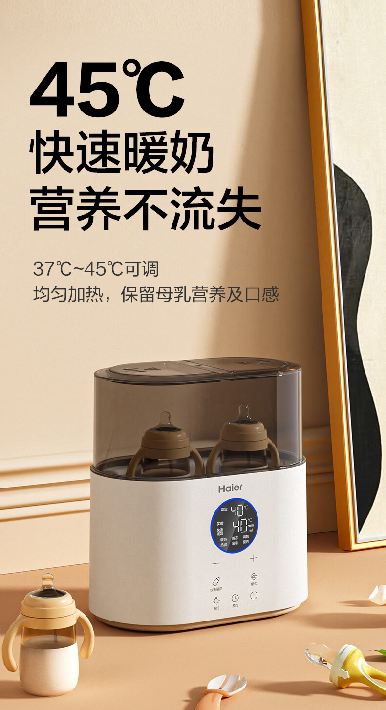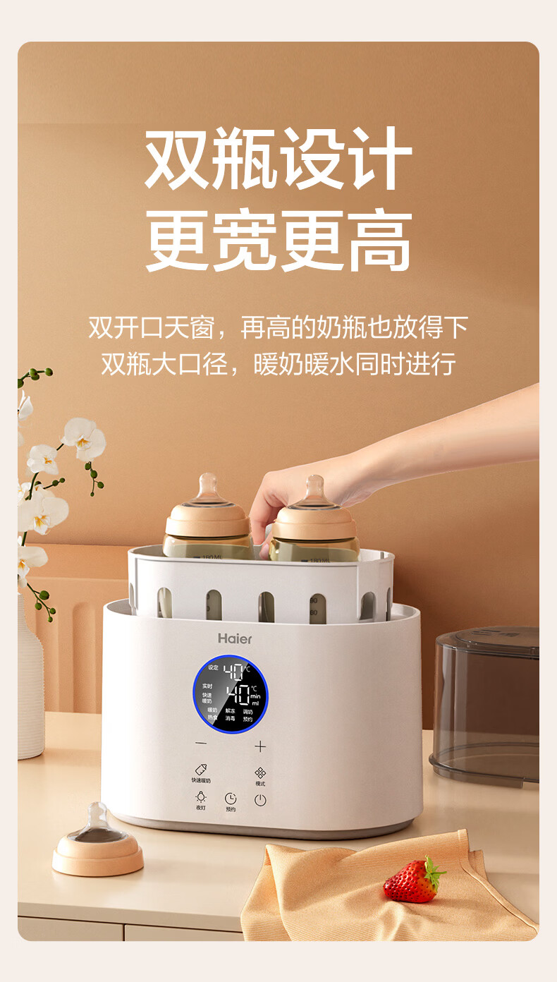 海尔(Haier)温奶器婴儿暖奶器奶瓶消毒器二合一恒温保温母乳热奶解冻定时加热