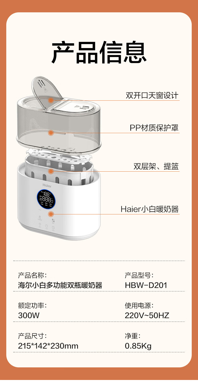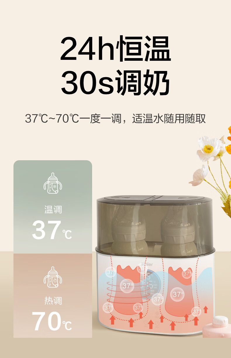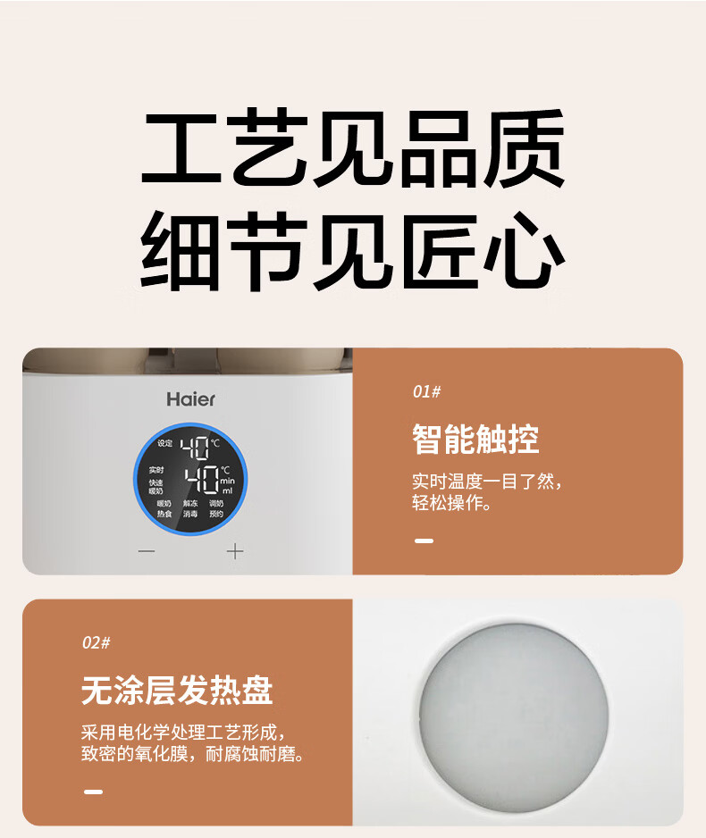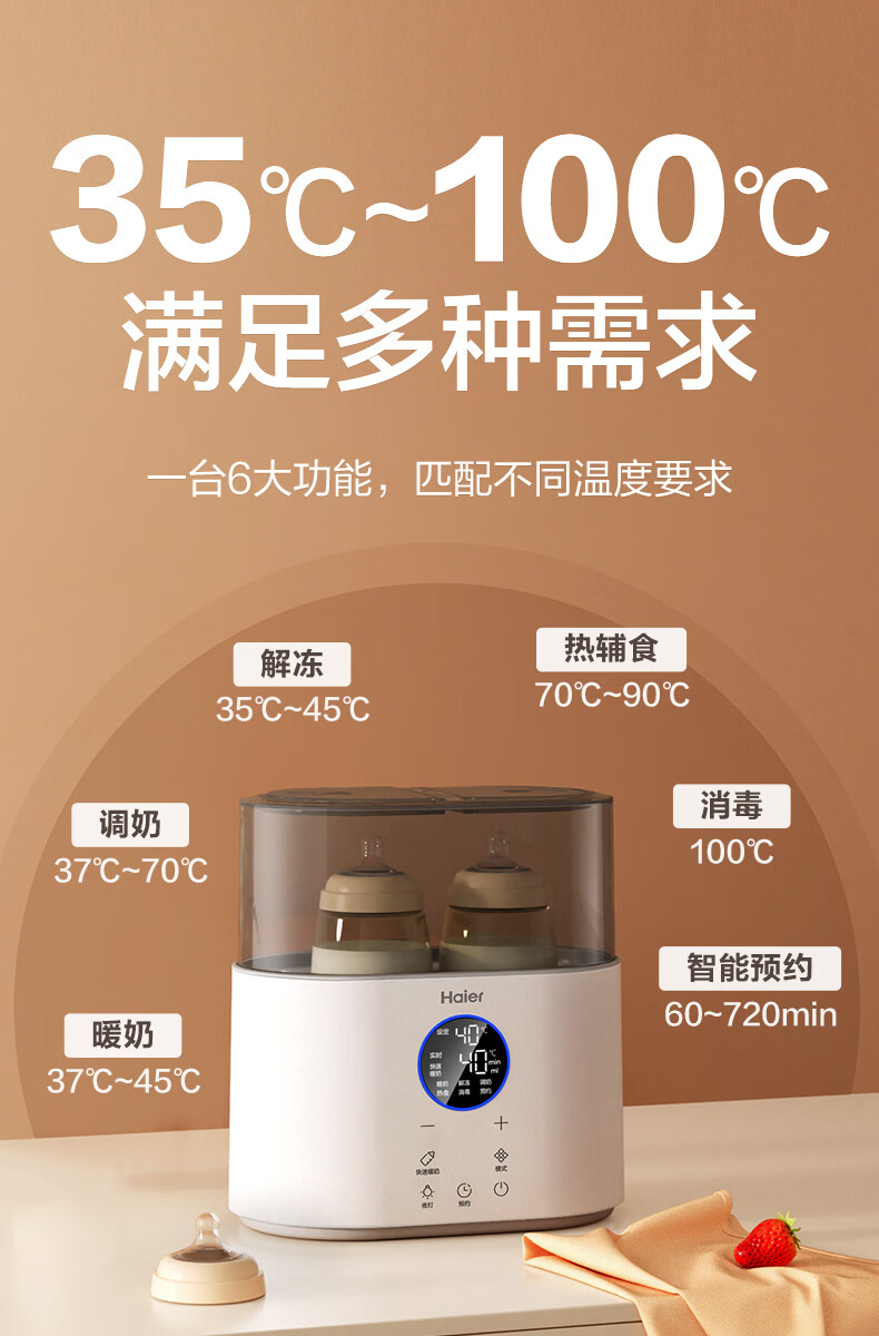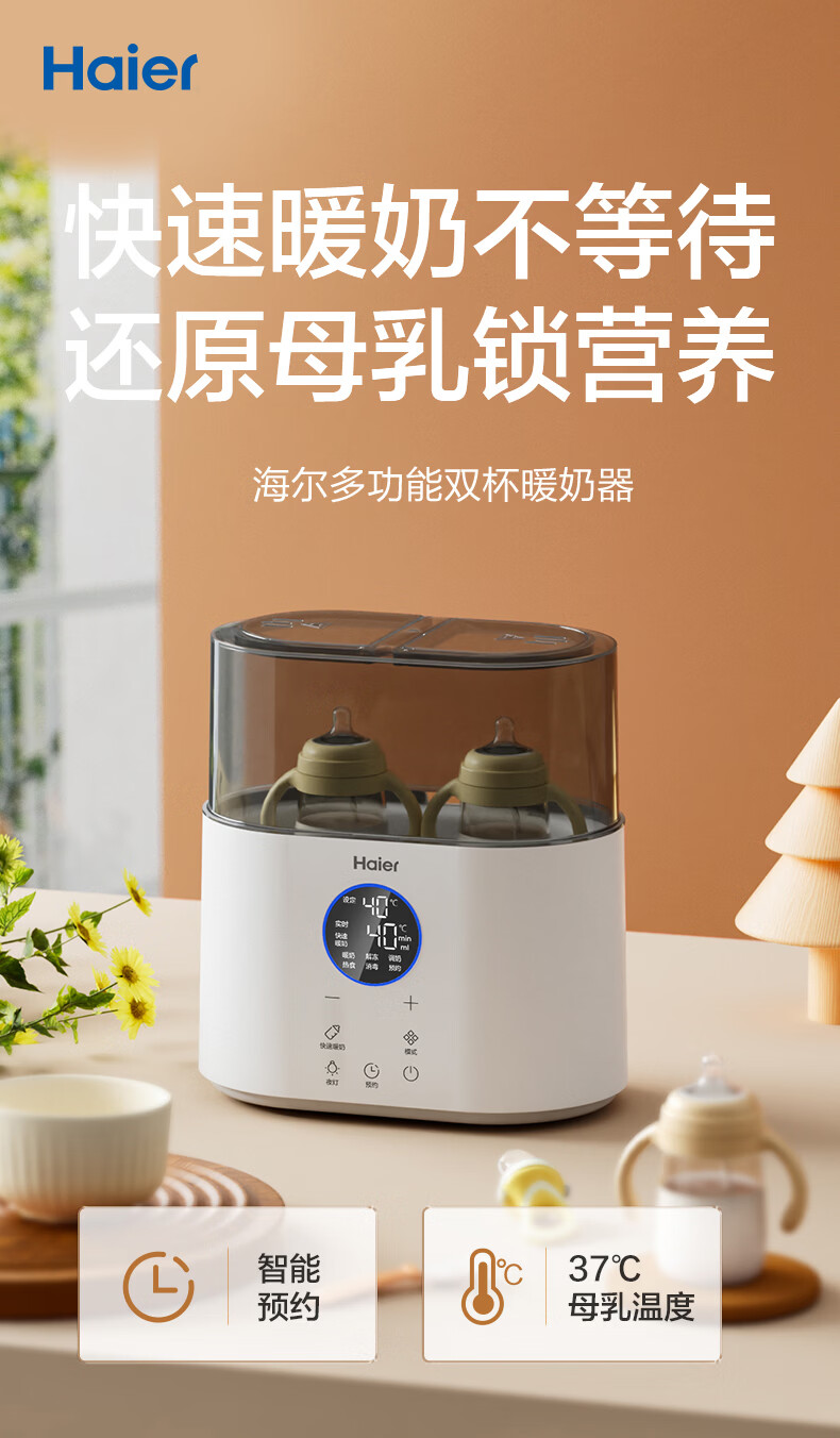 海尔(Haier)温奶器婴儿暖奶器奶瓶消毒器二合一恒温保温母乳热奶解冻定时加热
