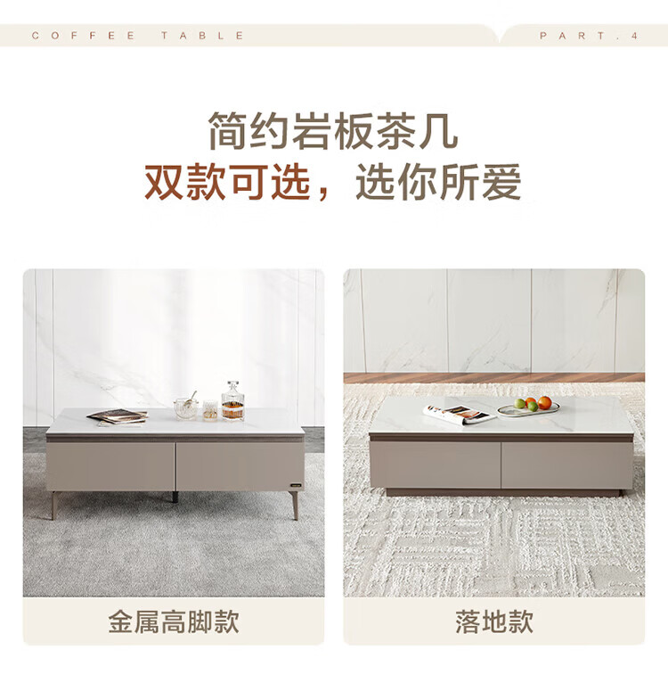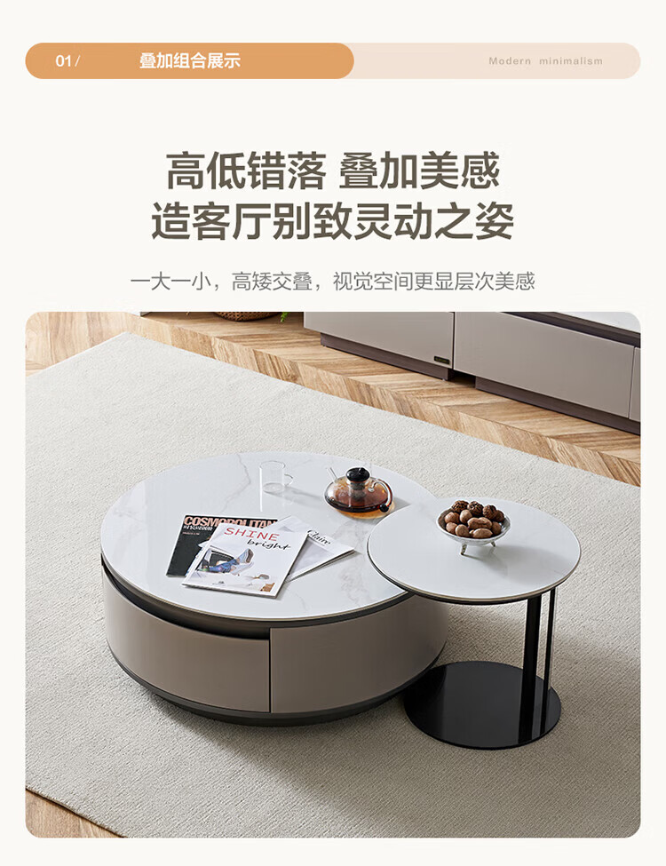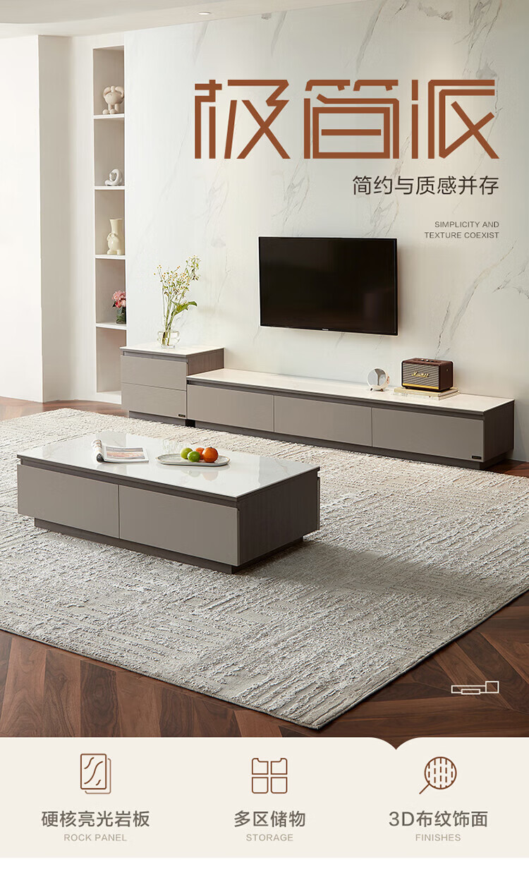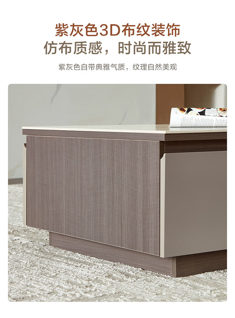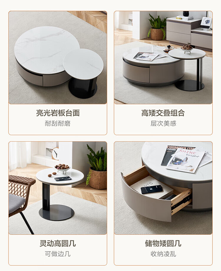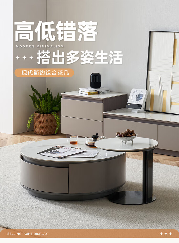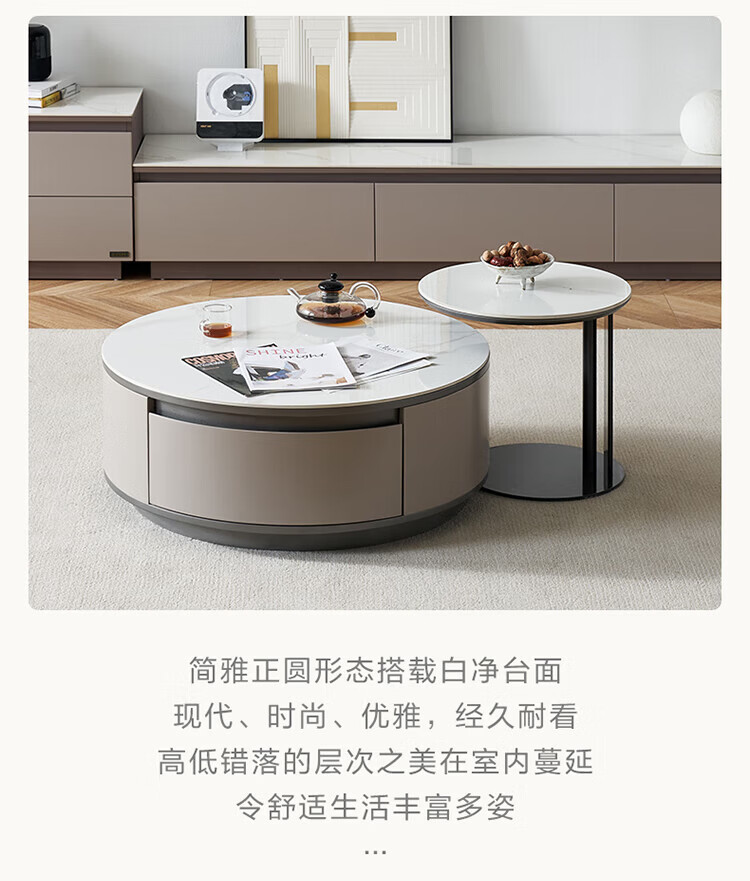 全友家居奶油风岩板茶几电视机柜子组合现代简约小户型客厅收纳储物柜 高圆茶几 岩板+大容量储物+多规格可选