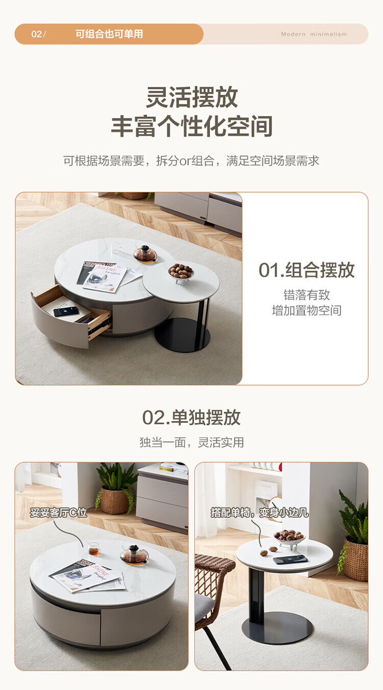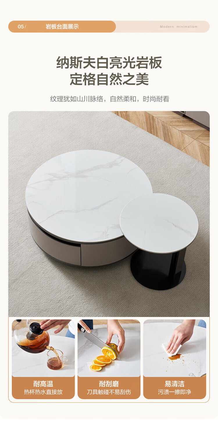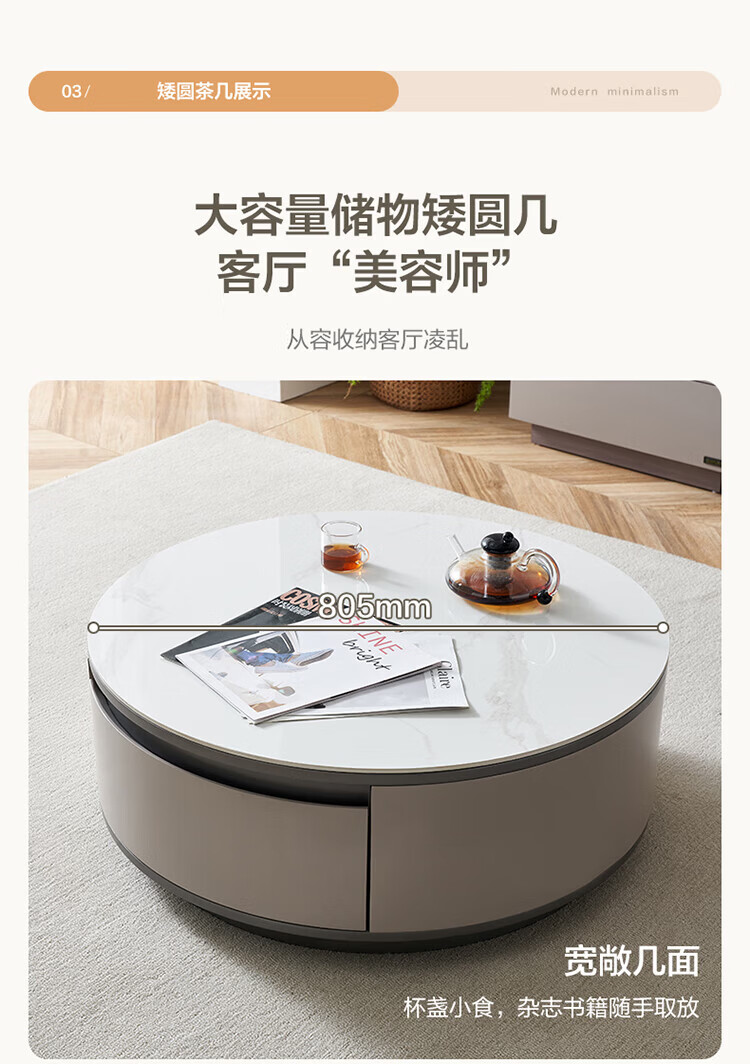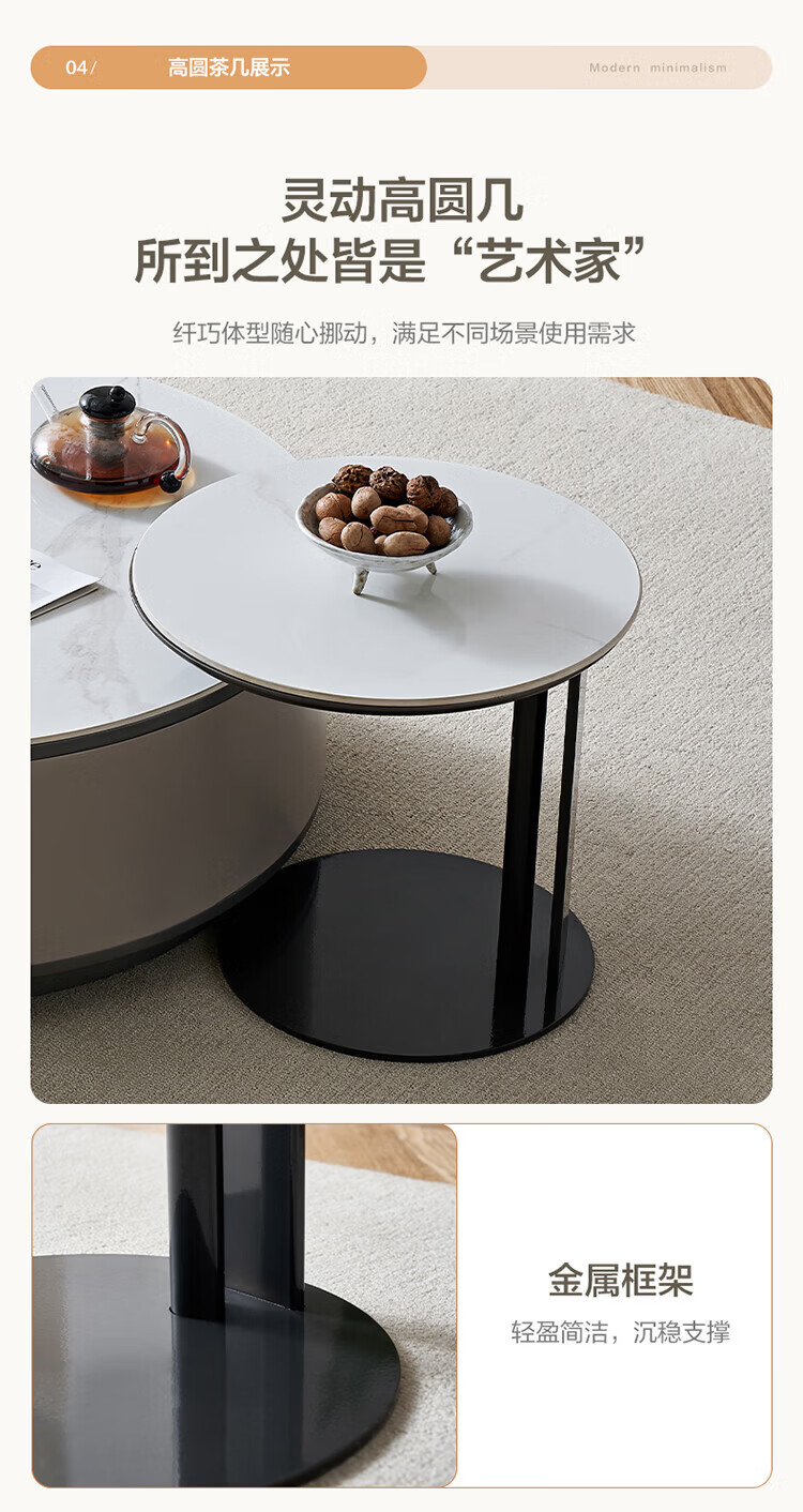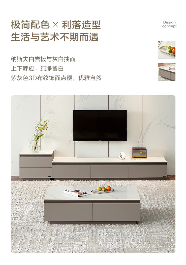 全友家居奶油风岩板茶几电视机柜子组合现代简约小户型客厅收纳储物柜 高圆茶几 岩板+大容量储物+多规格可选