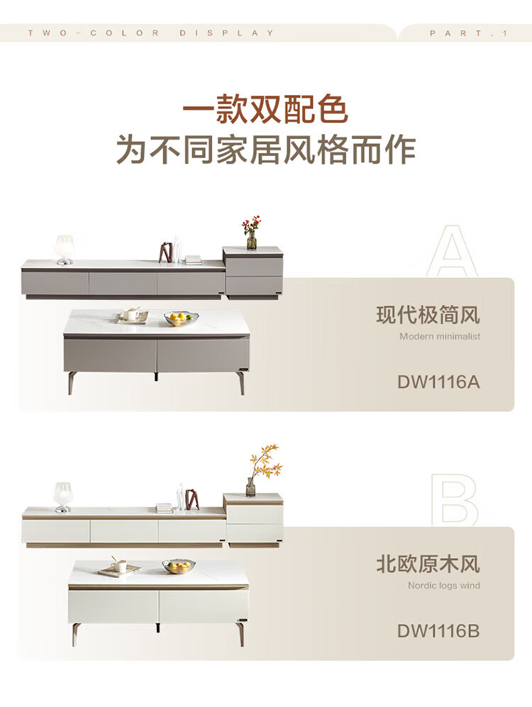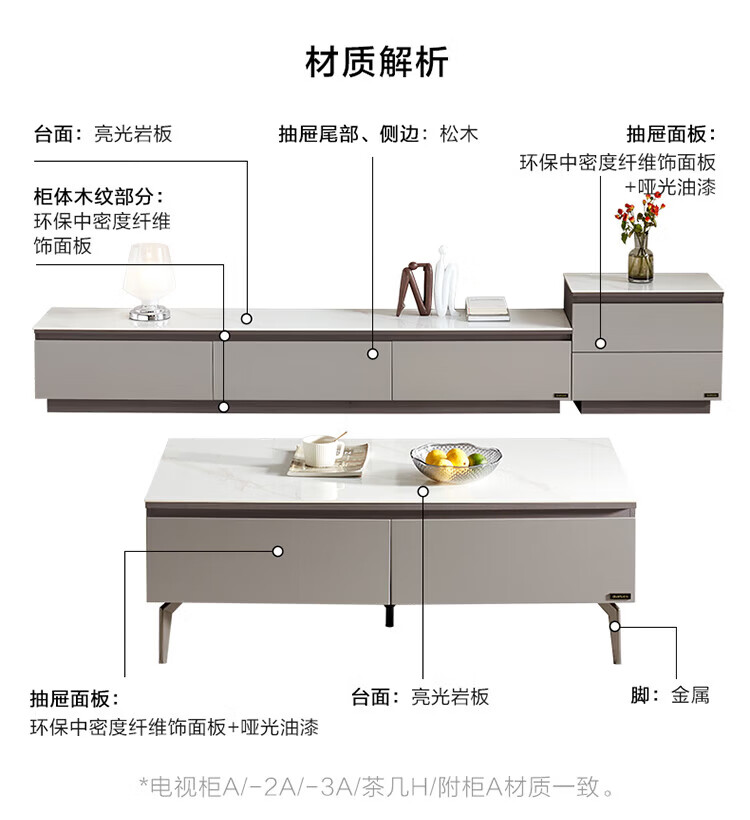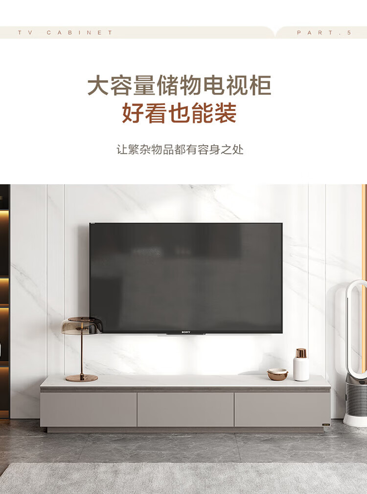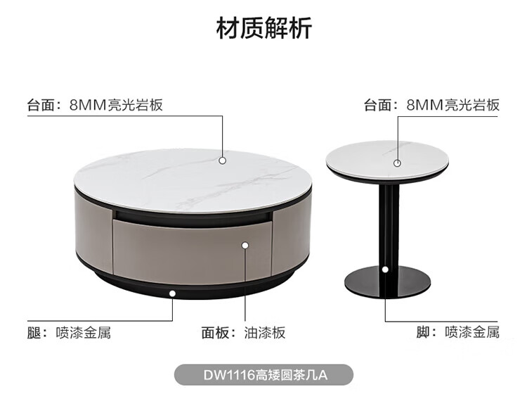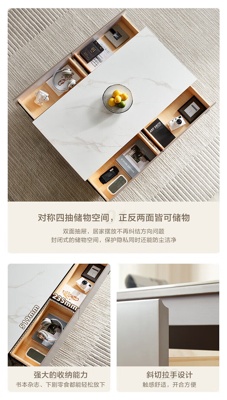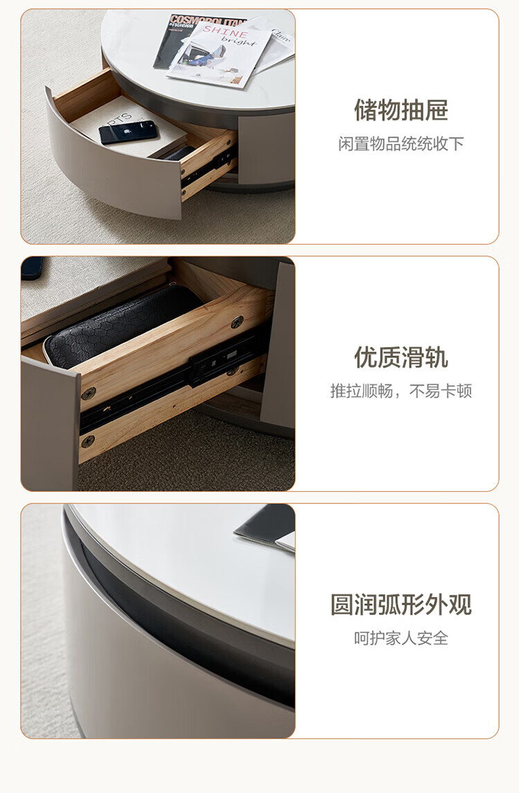 全友家居奶油风岩板茶几电视机柜子组合现代简约小户型客厅收纳储物柜 高圆茶几 岩板+大容量储物+多规格可选
