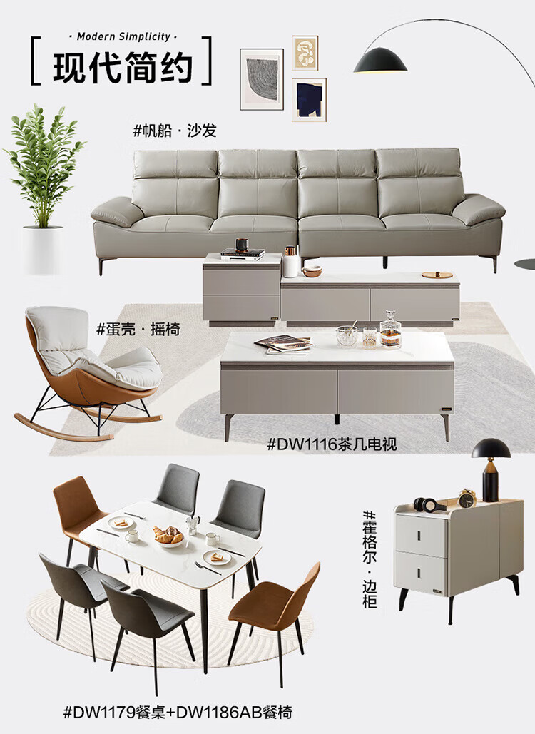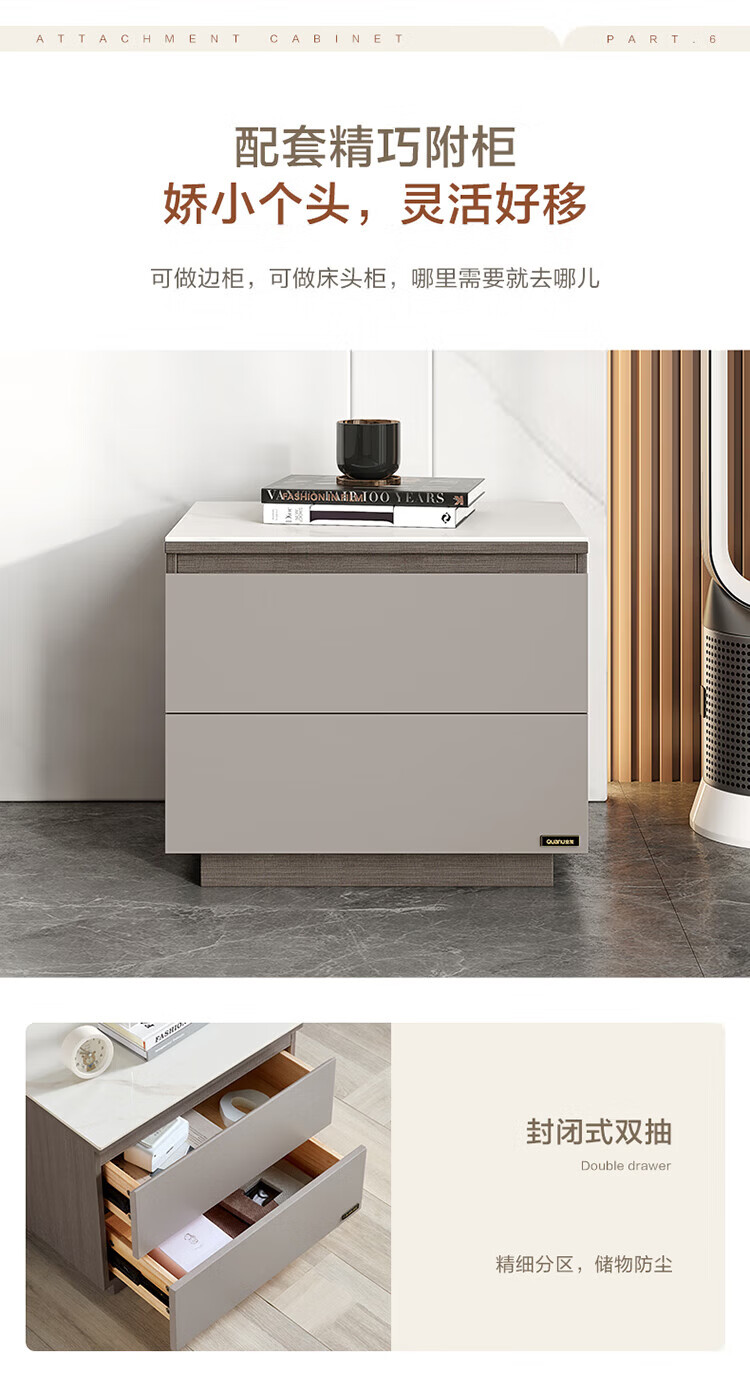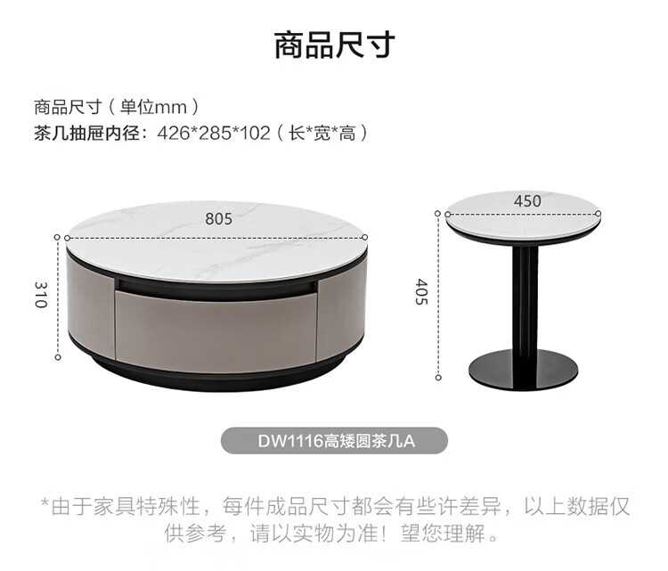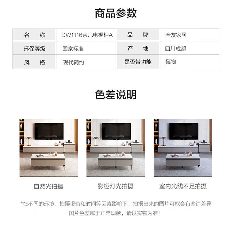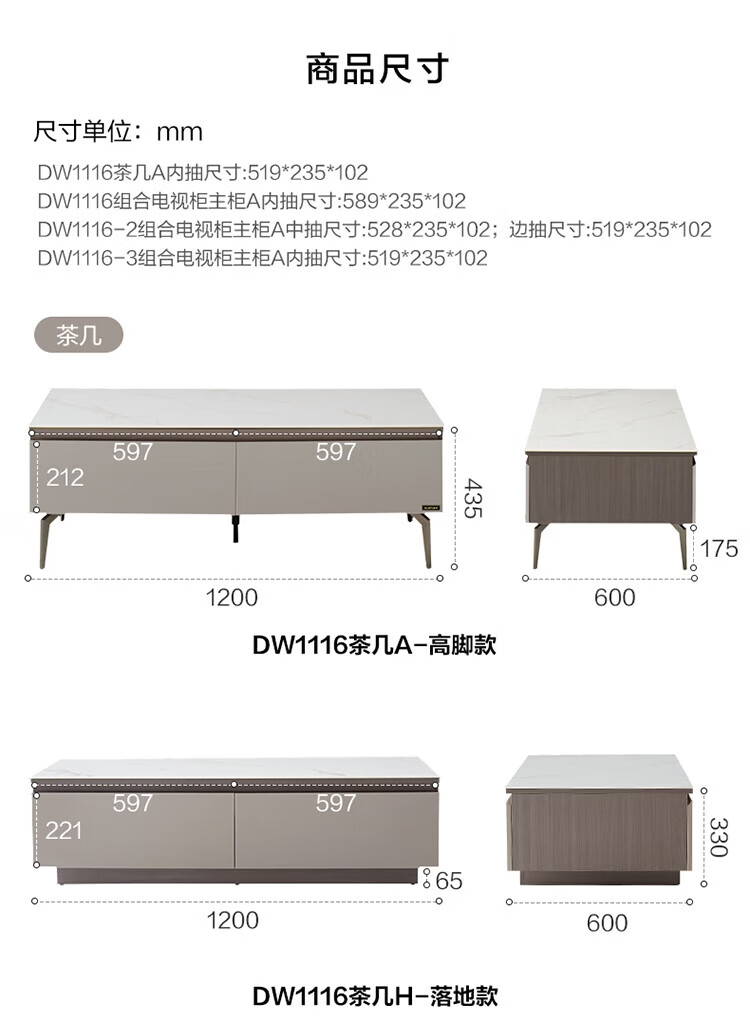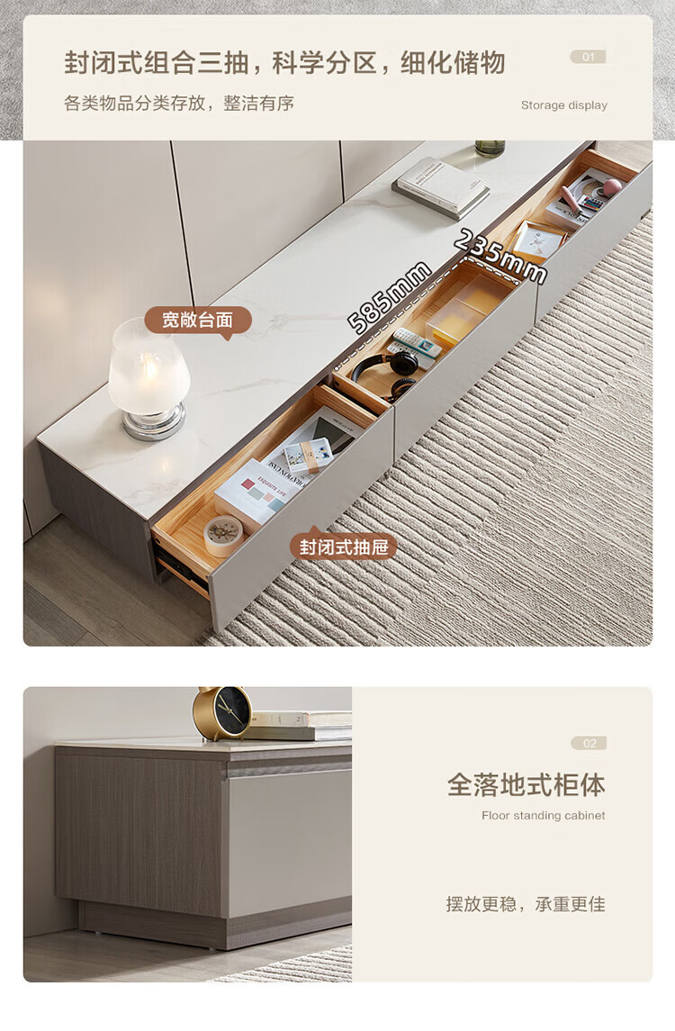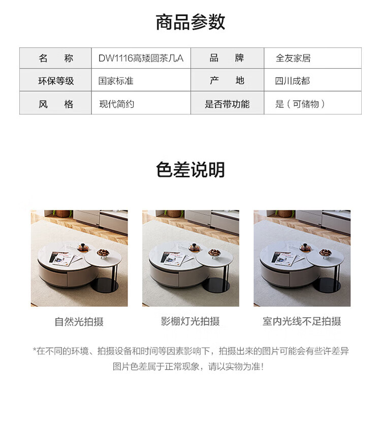 全友家居奶油风岩板茶几电视机柜子组合现代简约小户型客厅收纳储物柜 高圆茶几 岩板+大容量储物+多规格可选