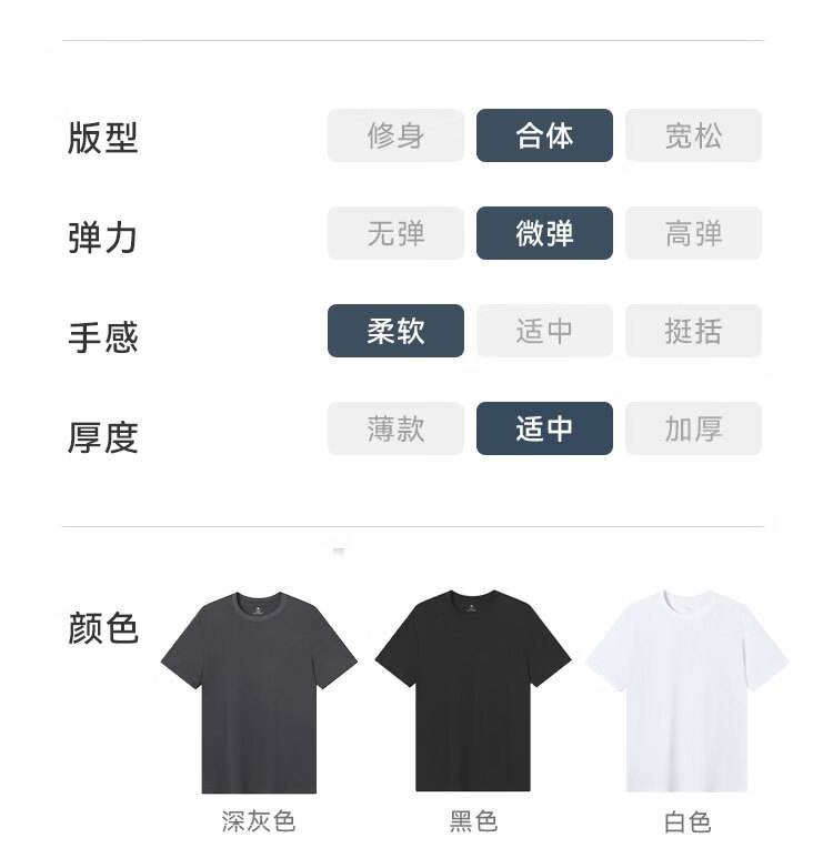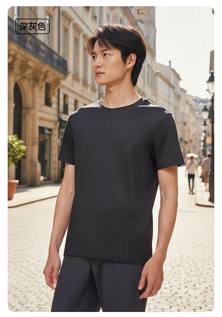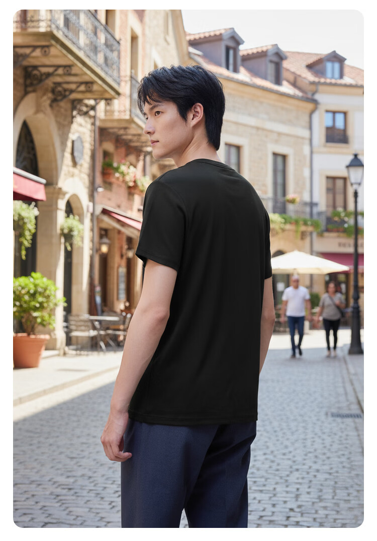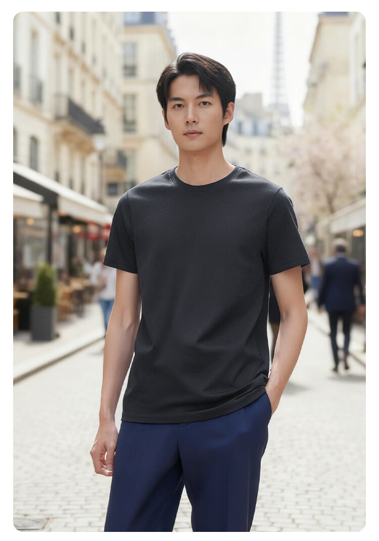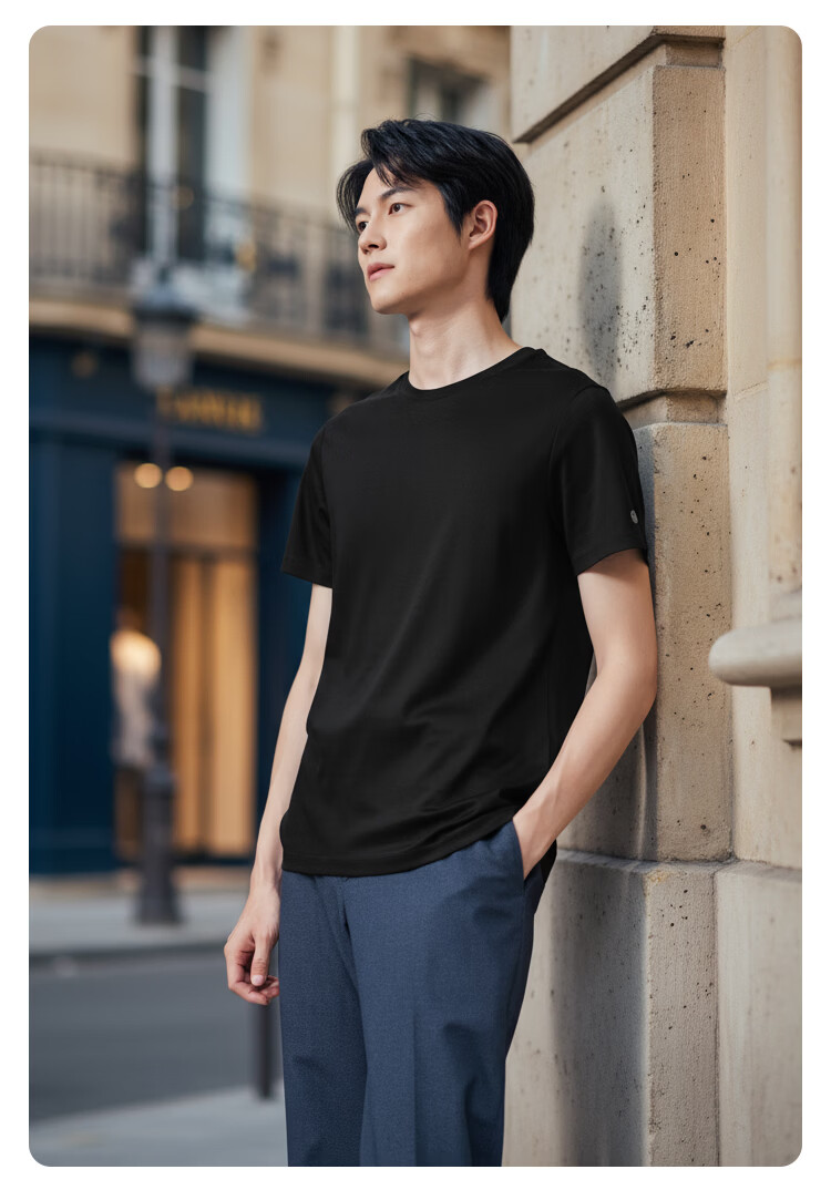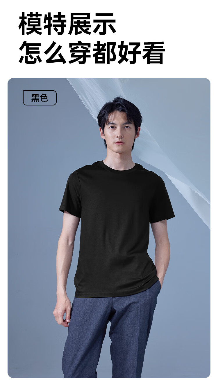 京东京造80支液氨短袖男士t恤打底衫内搭春季新款男装衣服轻奢抗皱黑M