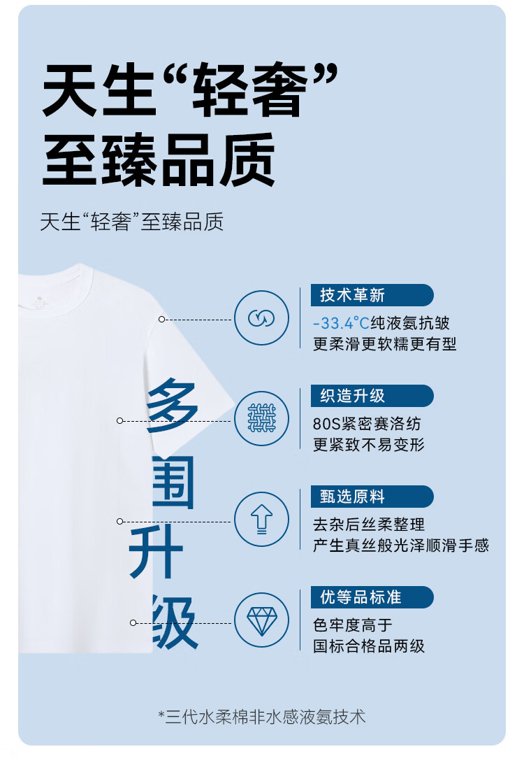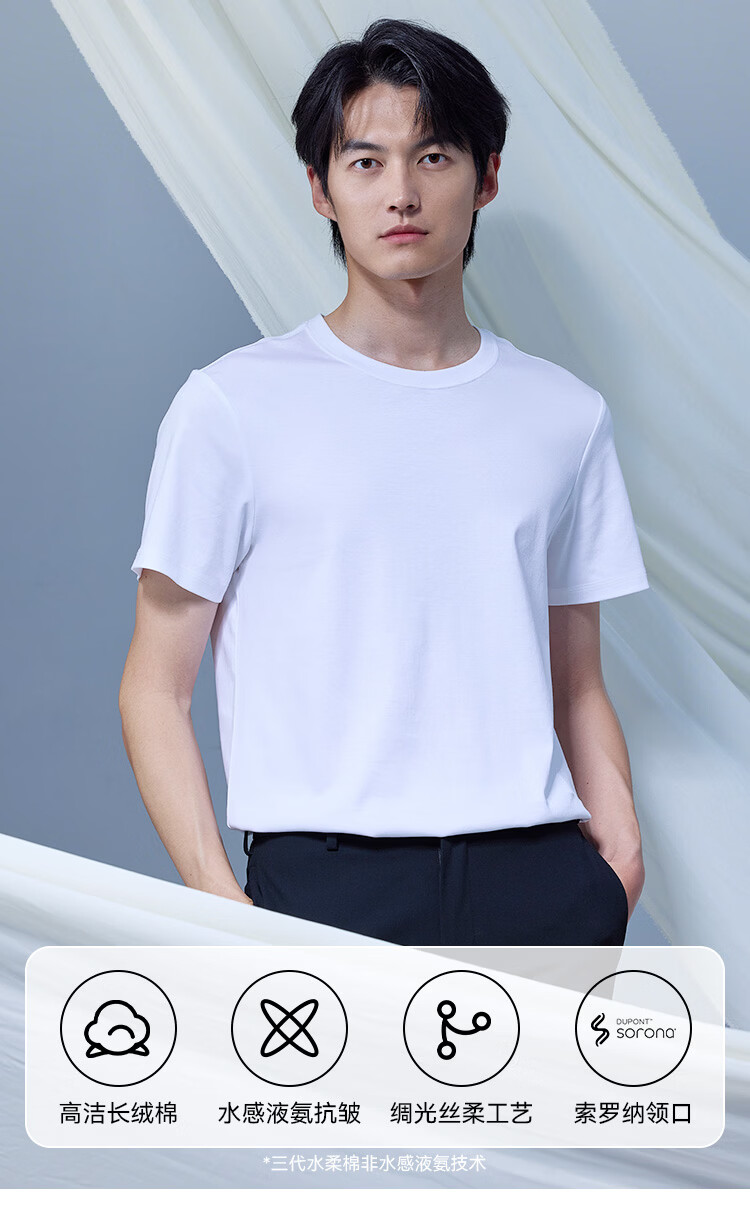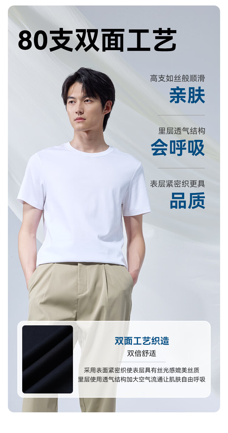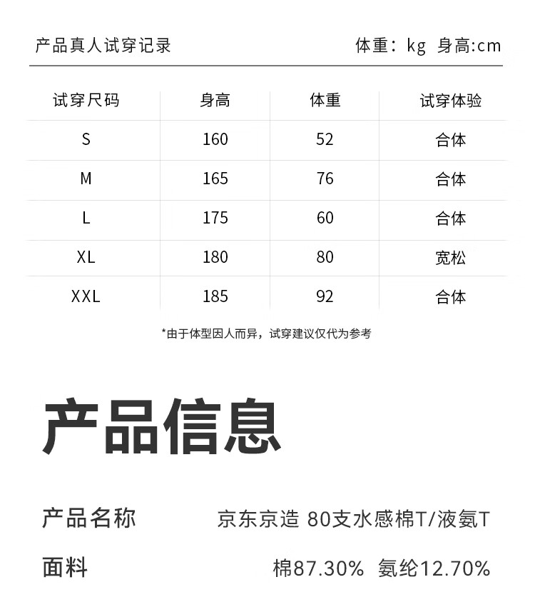 京东京造80支液氨短袖男士t恤打底衫内搭春季新款男装衣服轻奢抗皱 白XL