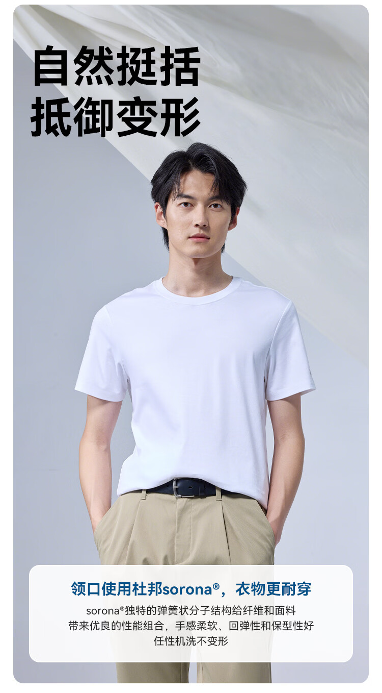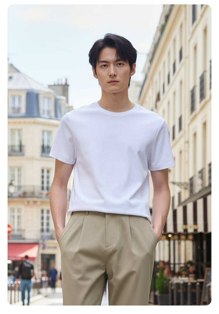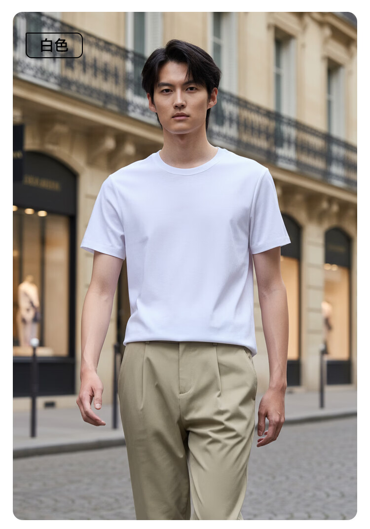 海澜之家(HLA)短袖T恤男冰爽棉撞色圆领凉感短袖男 米白50 M 170/88A 推荐63-68kg