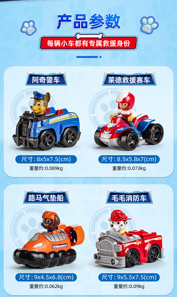 汪汪队立大功(PAW PATROL)全套正版玩具车巡逻队救援赛车7只礼盒装男女孩儿童3-6岁生日礼物