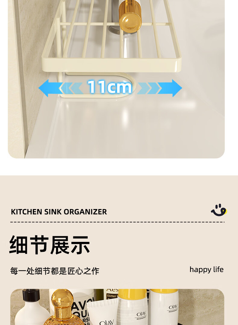 艾仕可(ASCOR)碳钢立式免打孔洗漱台置物架水龙头卫生间洗手壁挂收纳架沥水架子 免安装-轻奢黑50cm【镂空沥水 稳固承重】