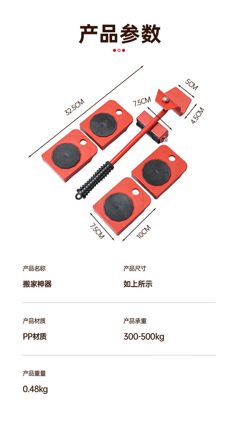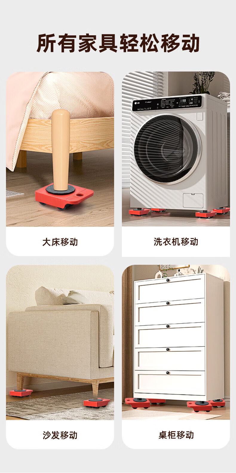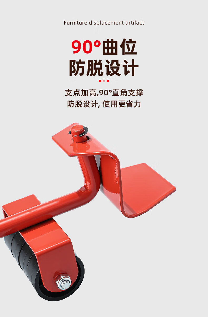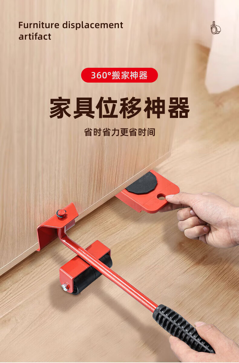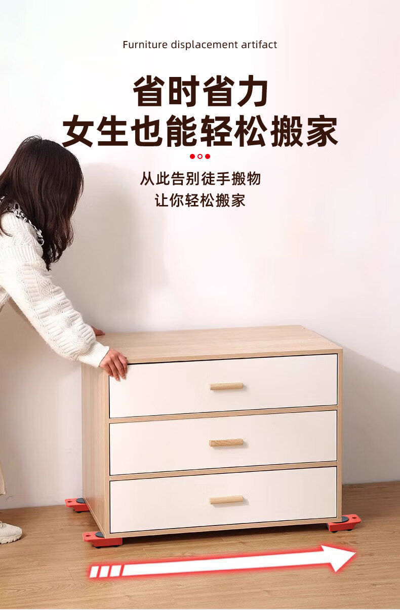 亚伦大力士搬重物搬家神器移动滑轮万向轮移动底座运家具床冰箱洗衣机移位器 4个方形包胶轮滑板-带撬棍【承重600kg】 万向旋转-不伤地板