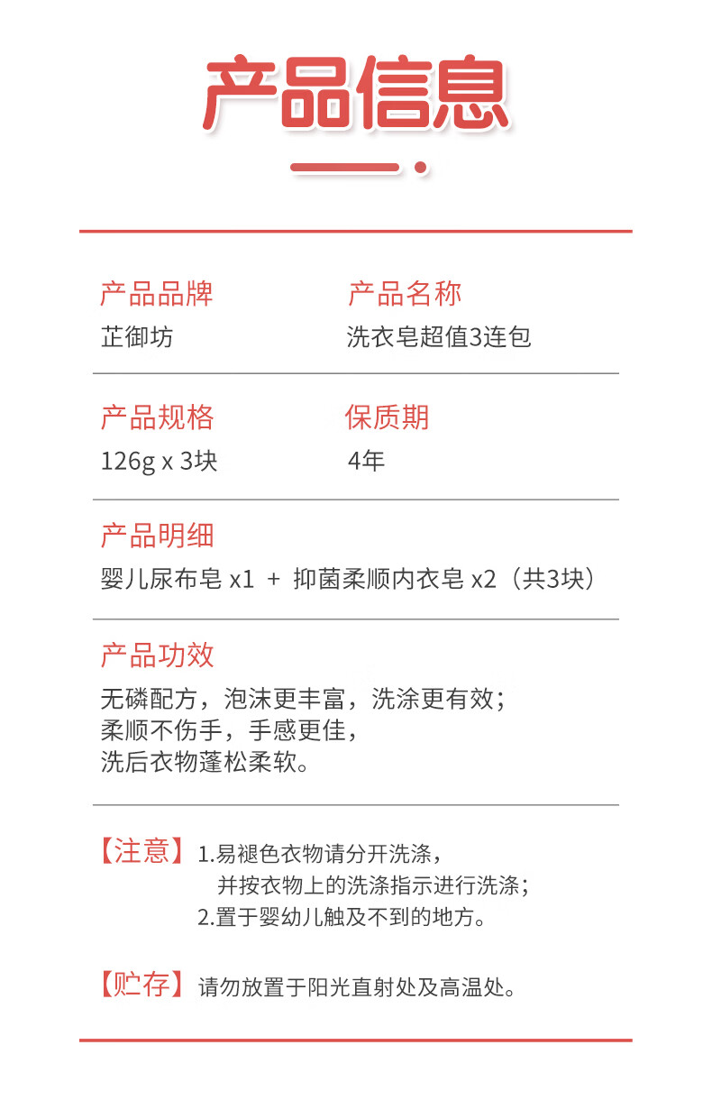 芷御坊婴儿洗衣皂 婴儿皂宝宝污渍清香 单包