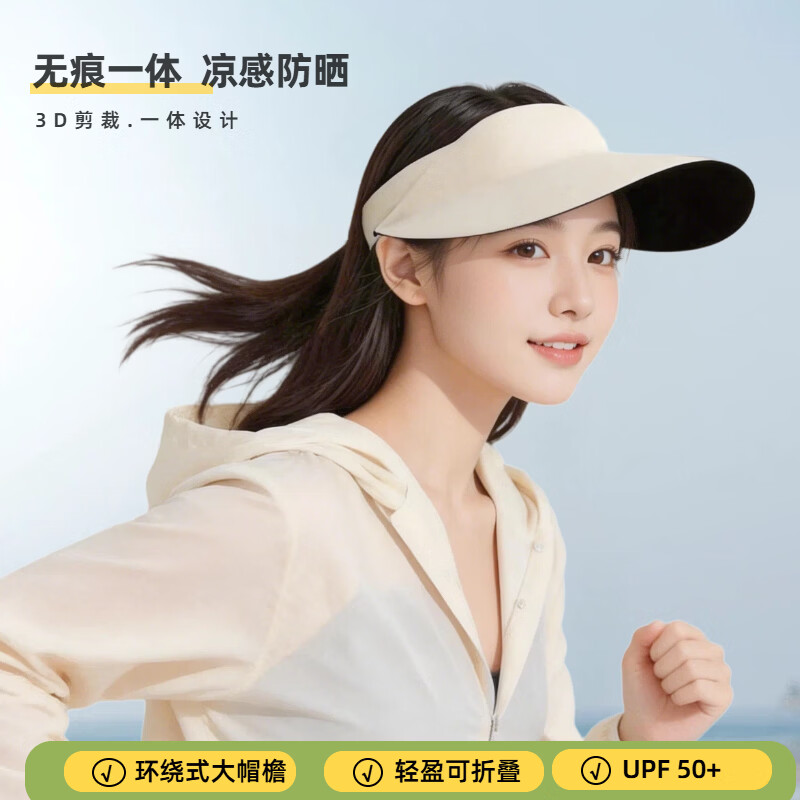 2026旅行爬山男女遮阳帽无痕一体防晒帽大帽檐空顶透气散热可折叠 樱花粉 可折叠+速干防晒+超大环绕帽檐