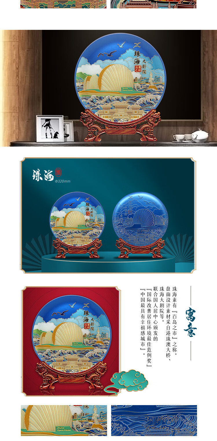 雅琅晶广东珠海澳门桌面摆件城市特色文创纪念品粤港澳工艺品办公创意礼 耀世而出粤港澳大湾区-32cm线雕