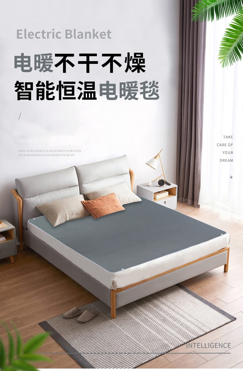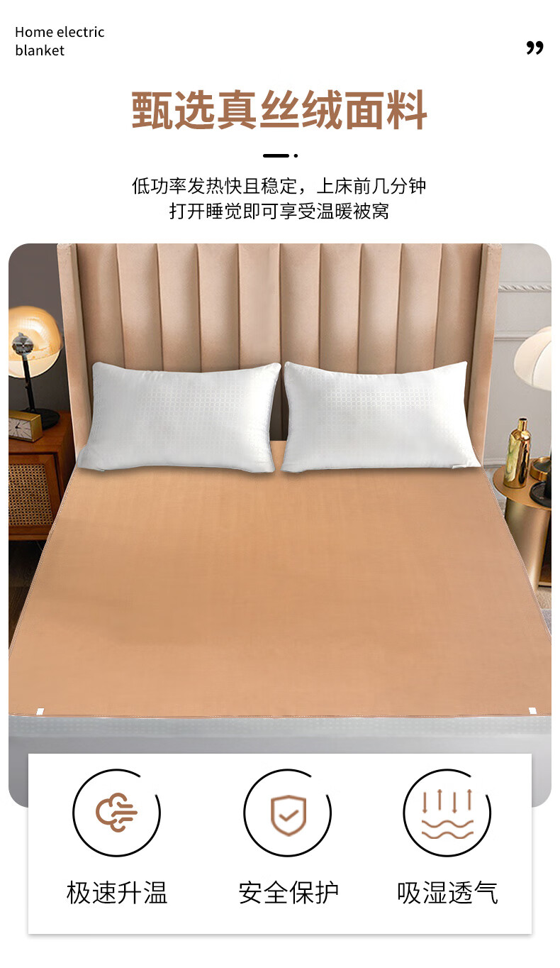 贵人梦电热毯双人双控1.8米2米调温学生宿舍家用防漏电除湿单人电褥子 纯色亲肤绒-智能定时 180*120cm单控