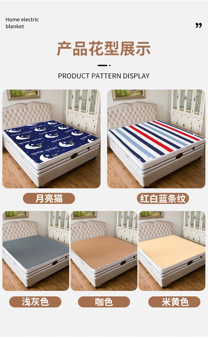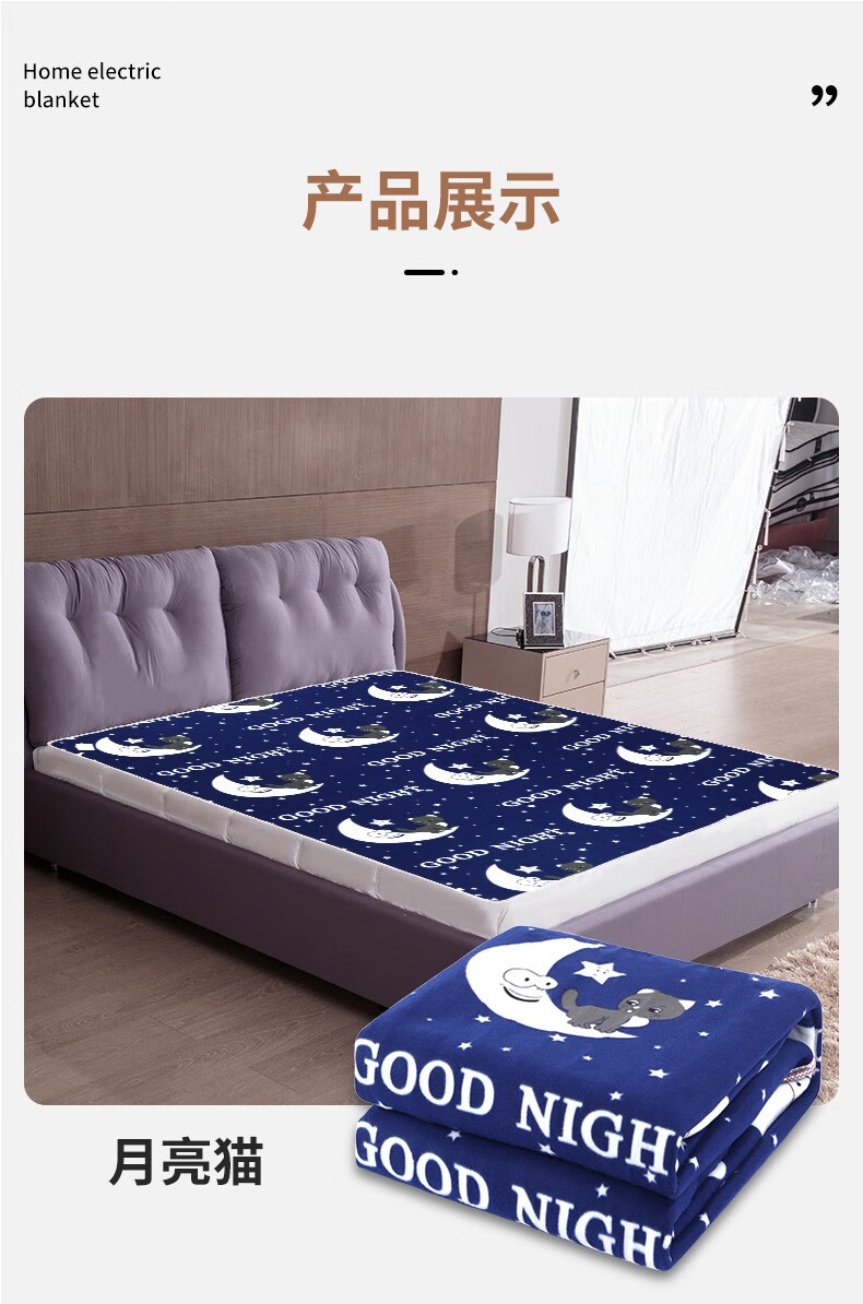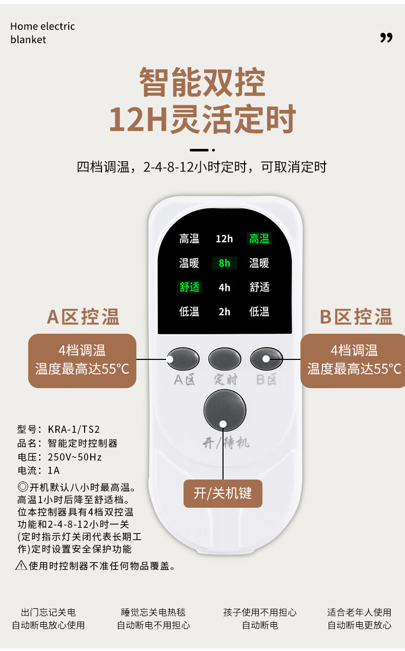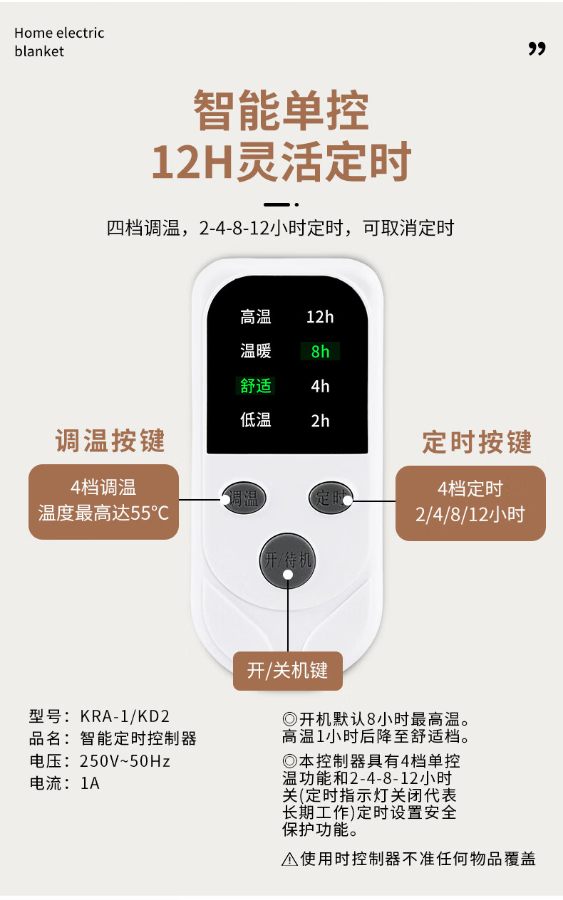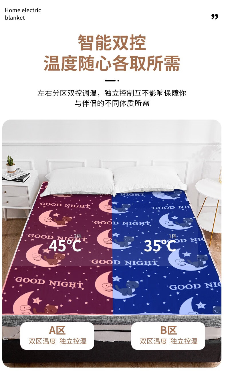 贵人梦 电热毯(长2.0米宽1.8米)单人双人双控智能定时家用速热电褥子 双人单控长1.5米*1.2米宽/高低档