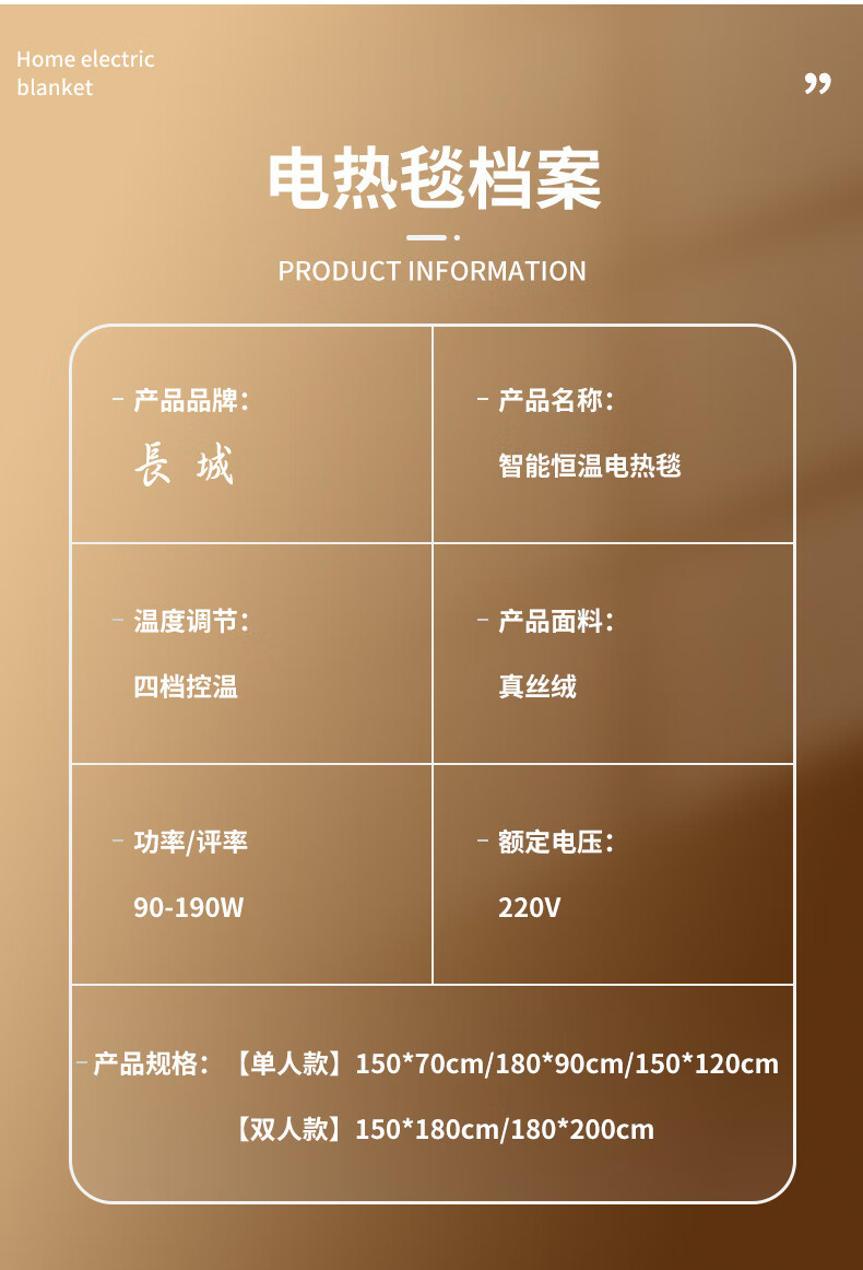 长城石墨烯电热毯双控除螨安全速热自动断电可水洗电褥子 9D提花牛奶丝【可水洗才更方便】 200*180cm智能断电【一键除螨】