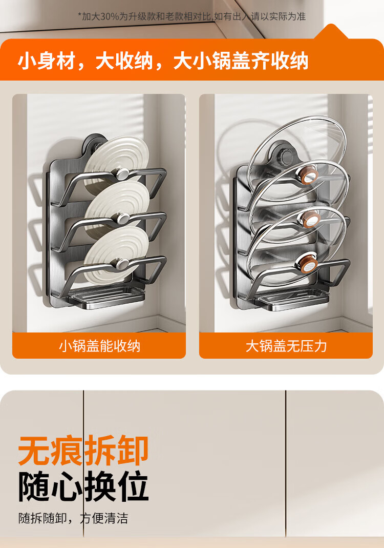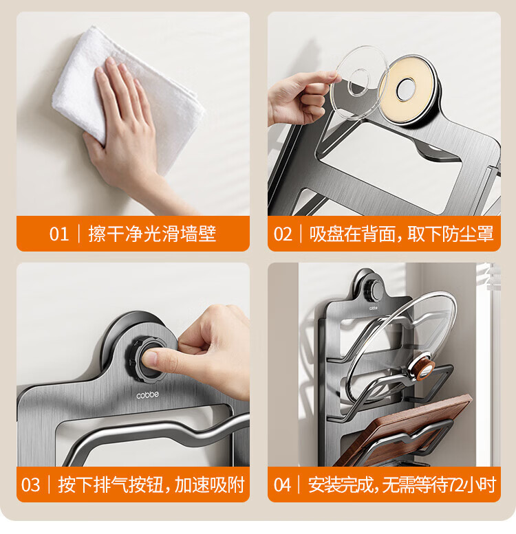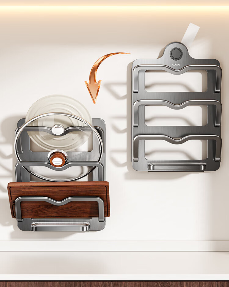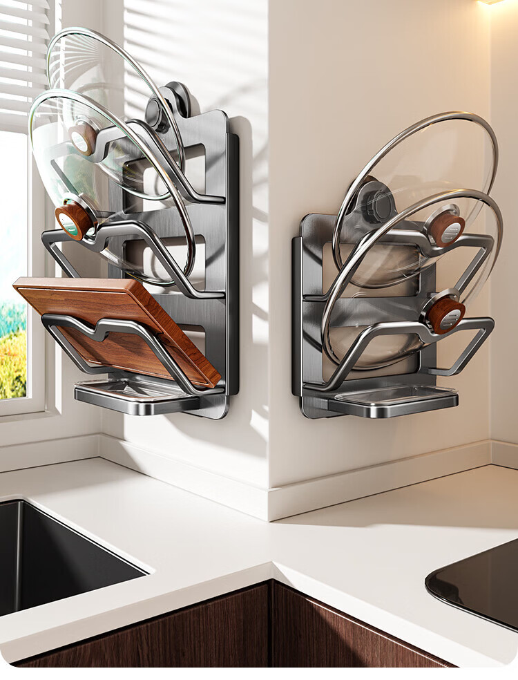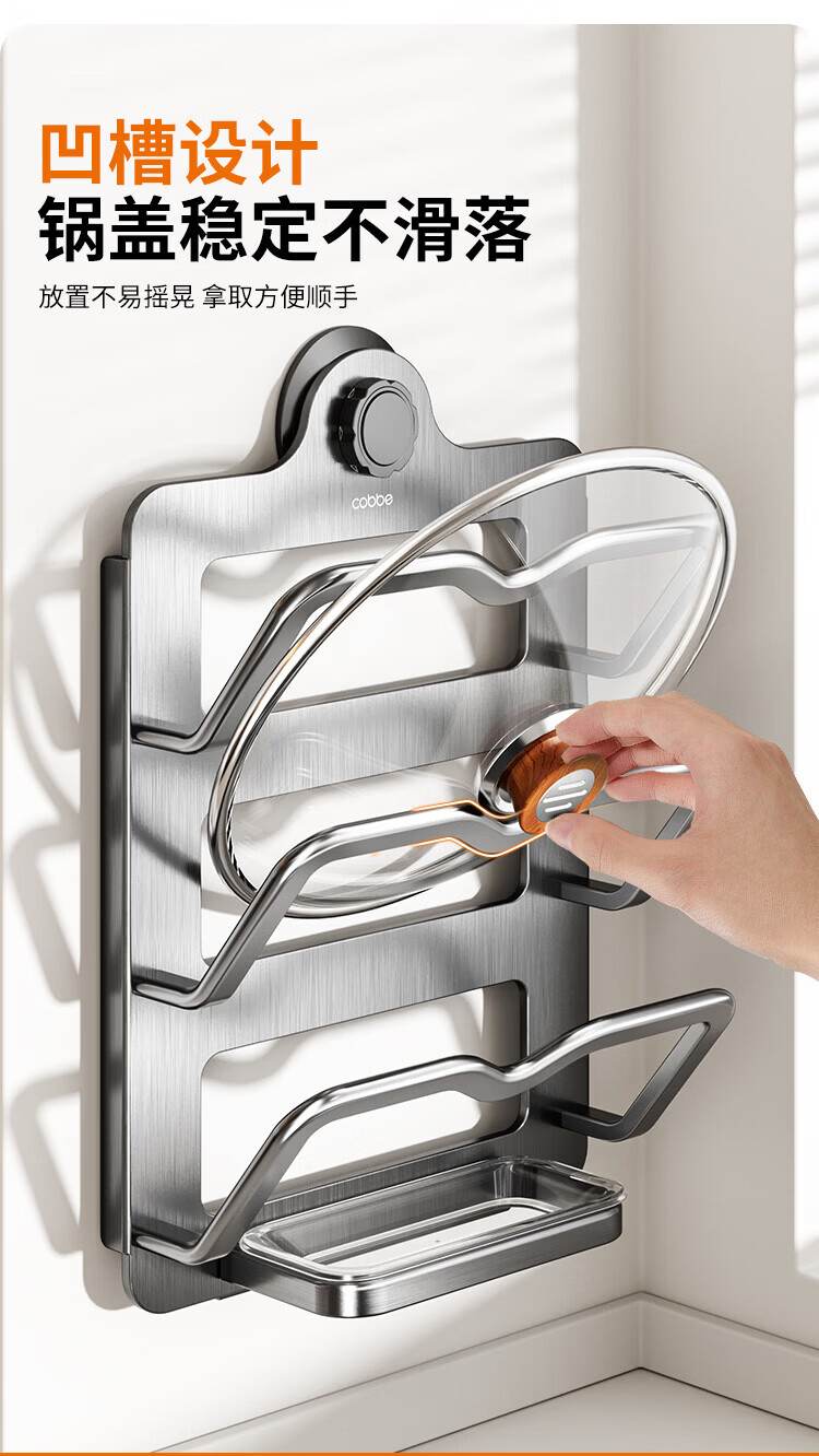 卡贝(cobbe)厨房锅盖放置架支架砧板菜板置物架案板吸盘多功能免打孔壁挂式 奶白双层锅盖架(吸盘一键安装)