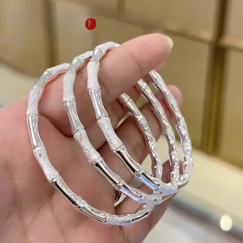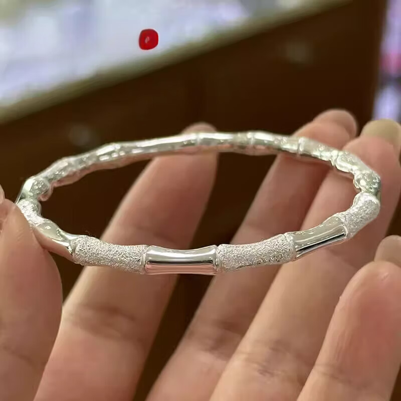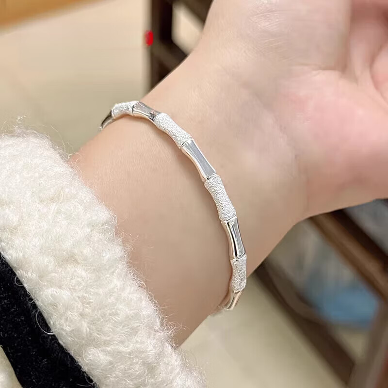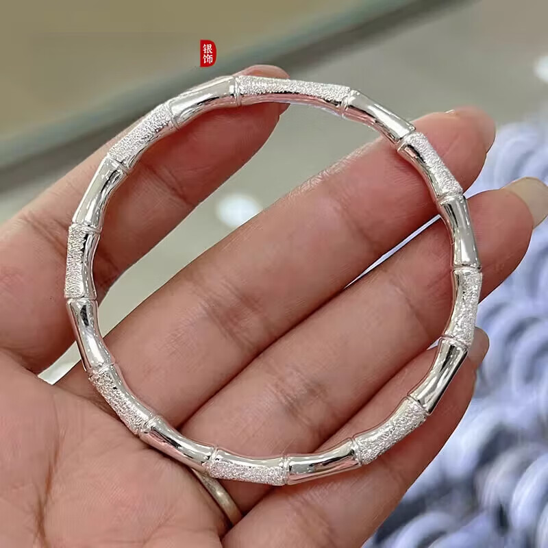 竹节银手镯一光一沙闭口手镯银新中式实心银镯 58圈口约25.5克