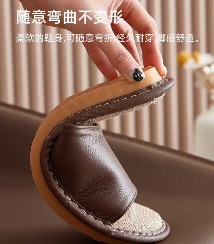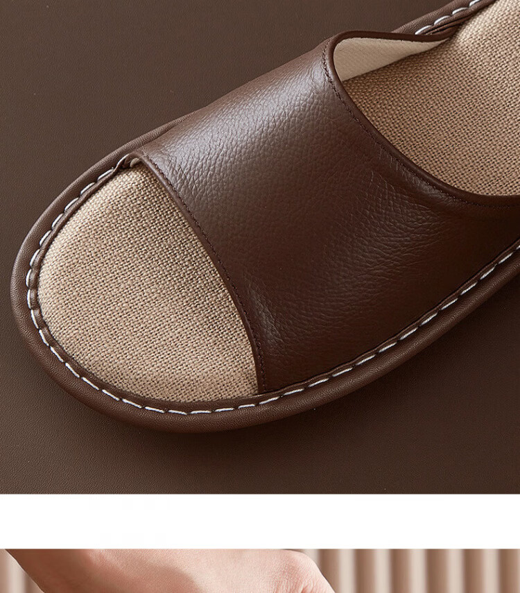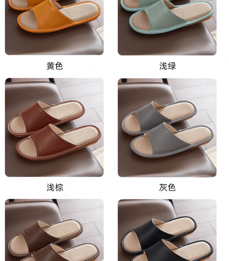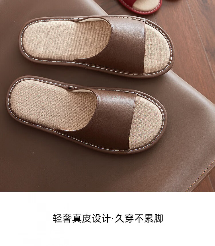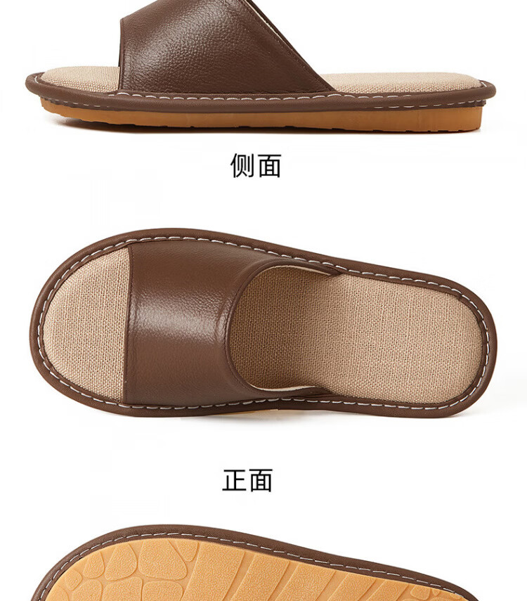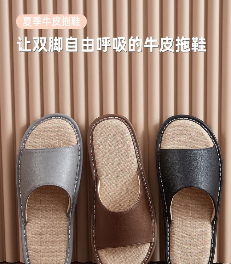 真皮拖鞋男士新款室内居家防滑夏皮质亚麻不臭脚皮拖鞋牛筋底 黑色 56 【脚偏宽胖拍大一码】