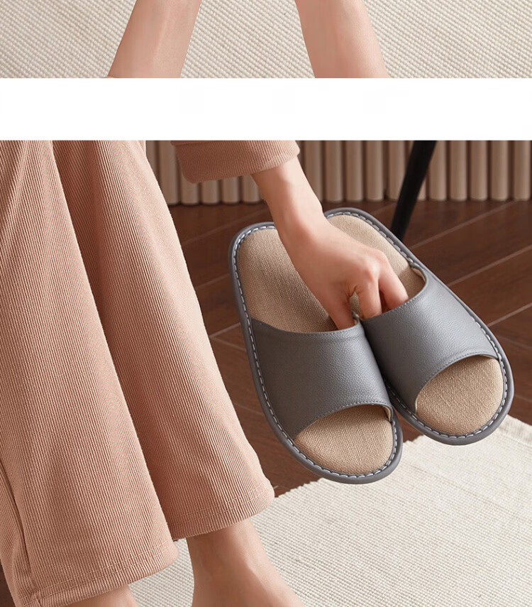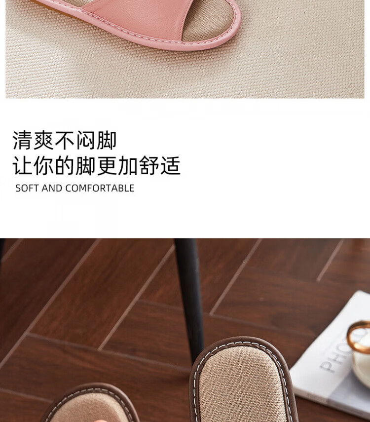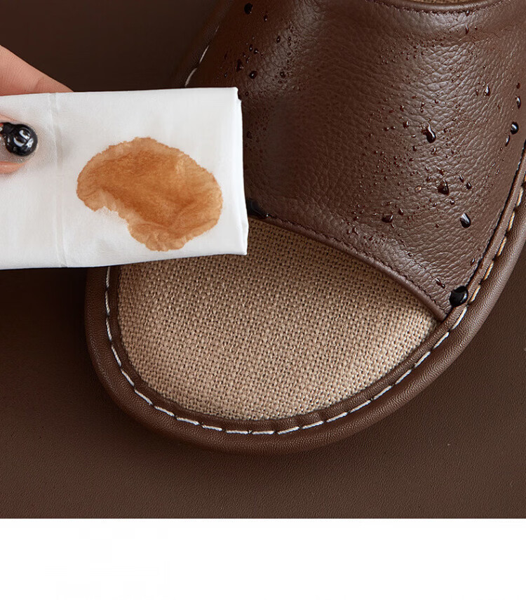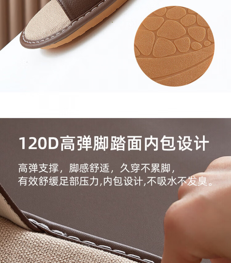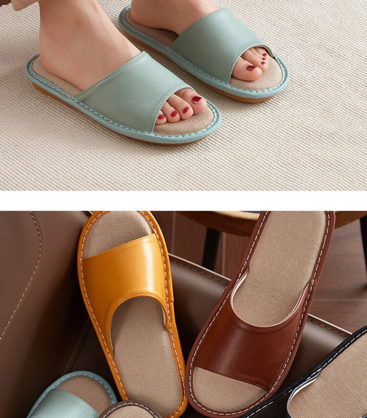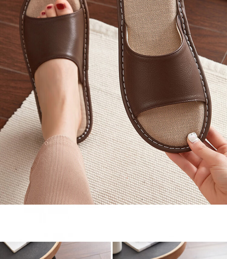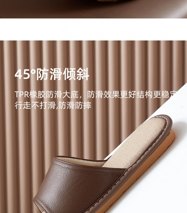 真皮拖鞋男士新款室内居家防滑夏皮质亚麻不臭脚皮拖鞋牛筋底 黑色 56 【脚偏宽胖拍大一码】