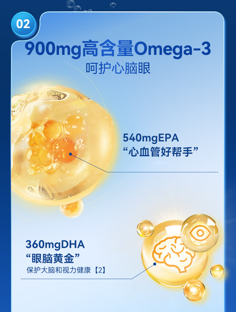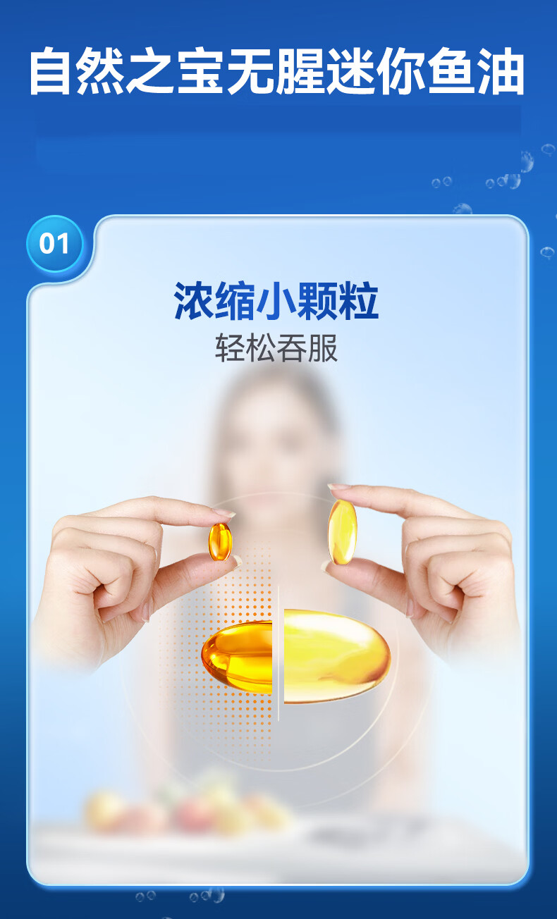 自然之宝深海鱼油软胶囊 Omega-3 DHA+EPA呵护中老年心脑眼 易吞服 高浓度1290mg|mini鱼油 90粒*1瓶 易吞服