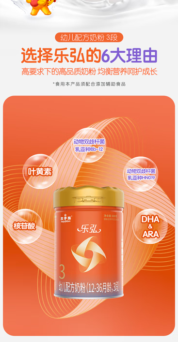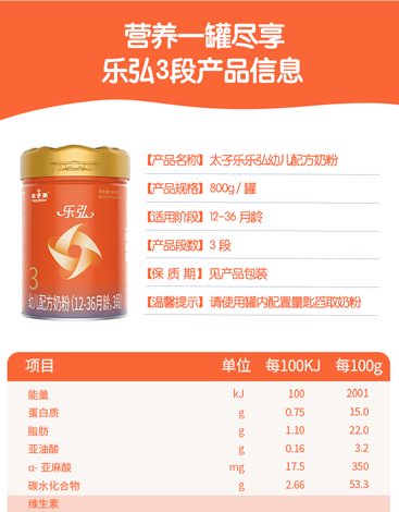 太子乐(Taizile)【购6罐赠1罐】乐弘幼儿配方奶粉3段(12-36个月幼儿适用)800g 3段 800g 6罐