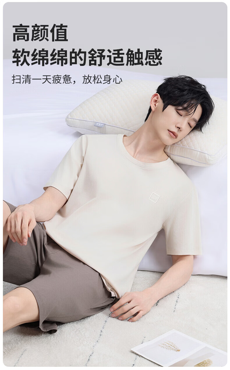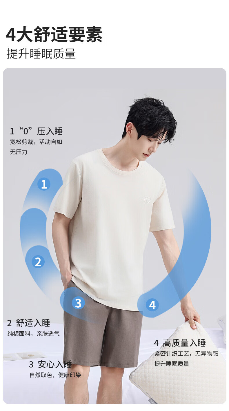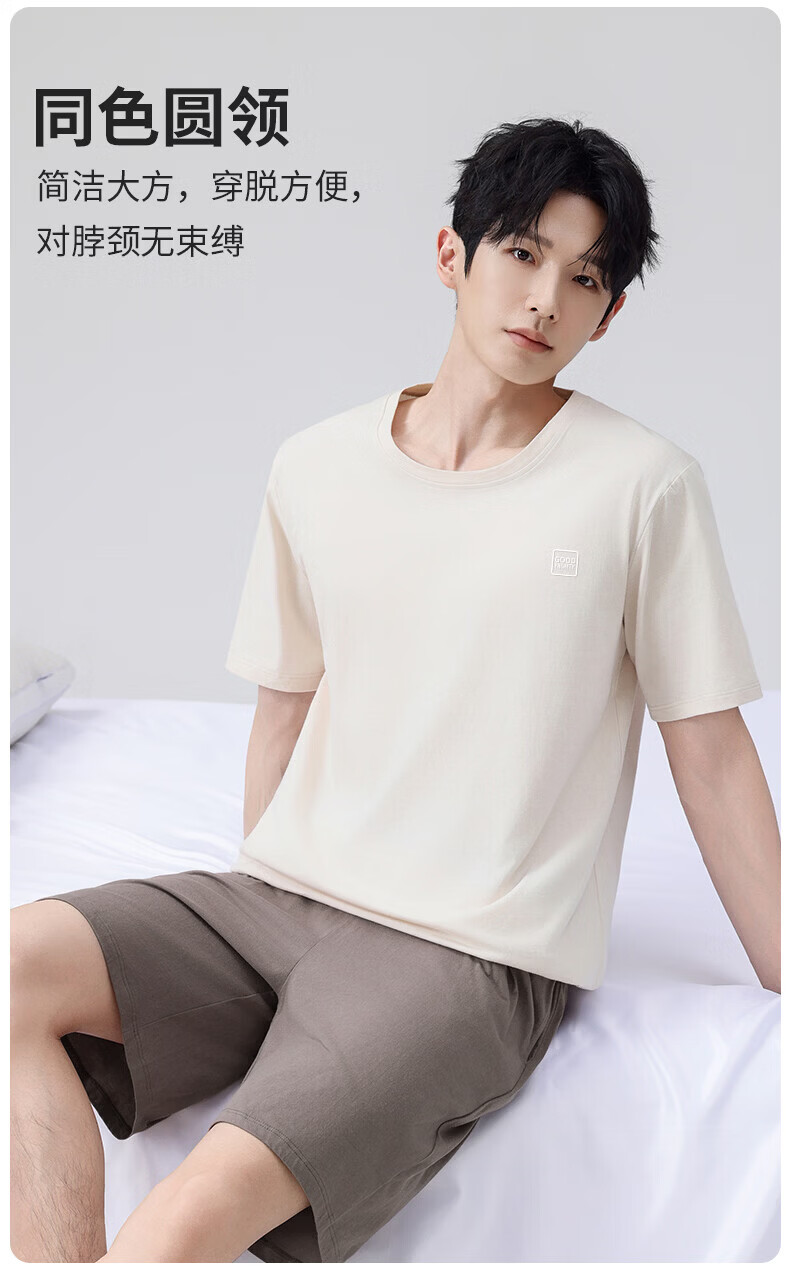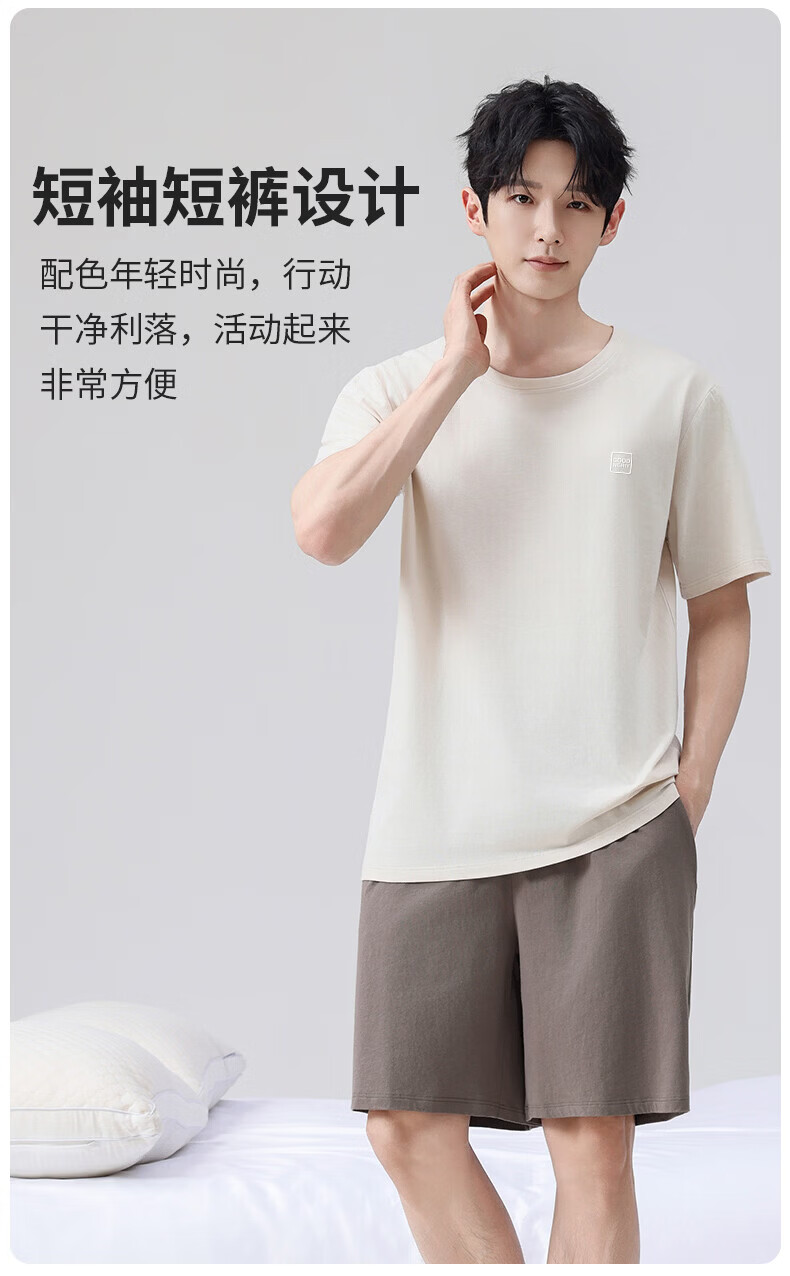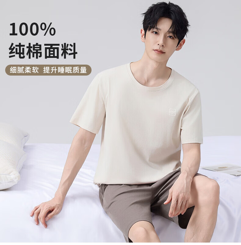 雪中飞男士睡衣男款纯棉春夏季薄款透气短袖短裤家居服套装套头2026新款 NSWJH-浅黄+咖啡 【100%新疆棉】 2XL 【建议140-160斤】