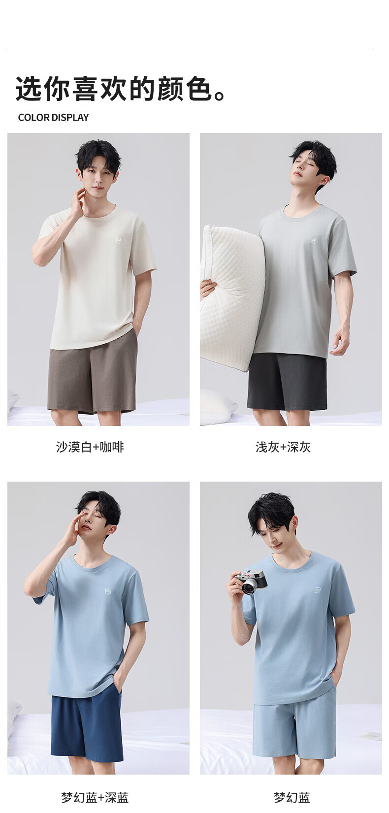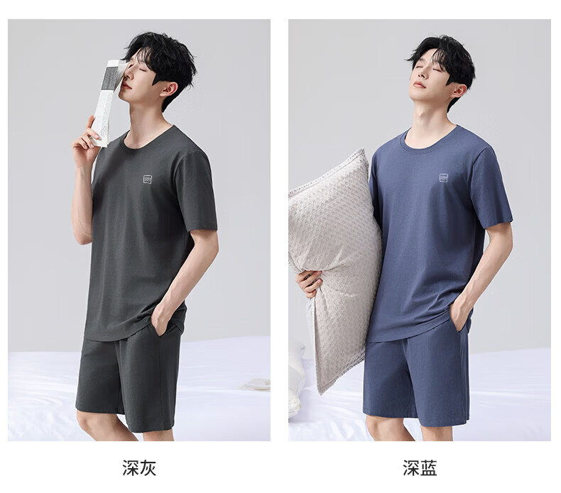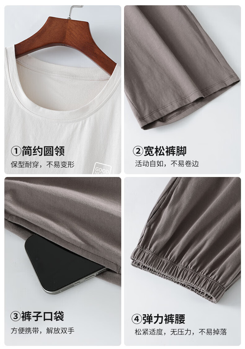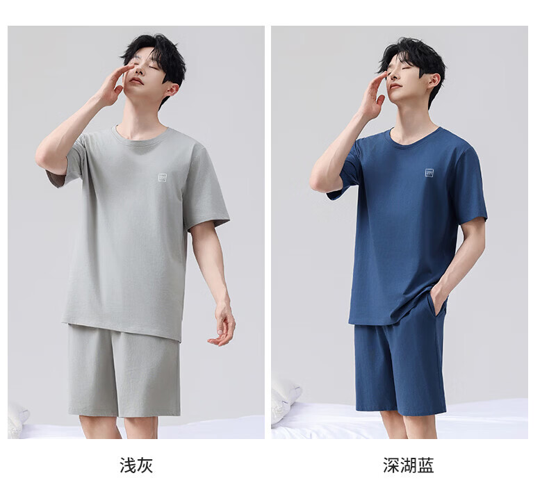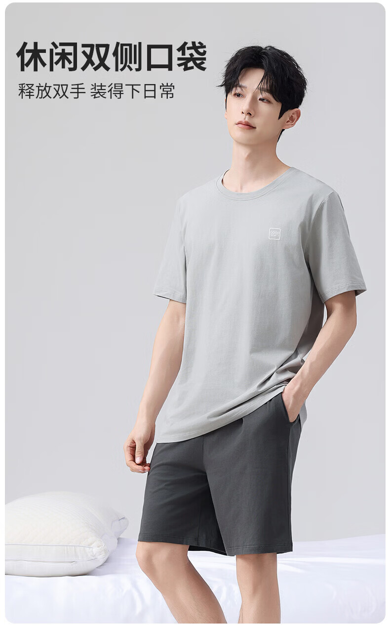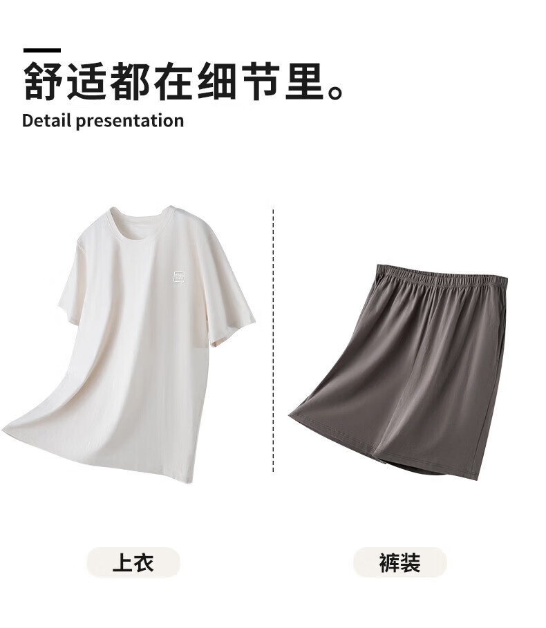 雪中飞男士睡衣男款纯棉春夏季薄款透气短袖短裤家居服套装套头2026新款 NSWJH-浅黄+咖啡 【100%新疆棉】 2XL 【建议140-160斤】