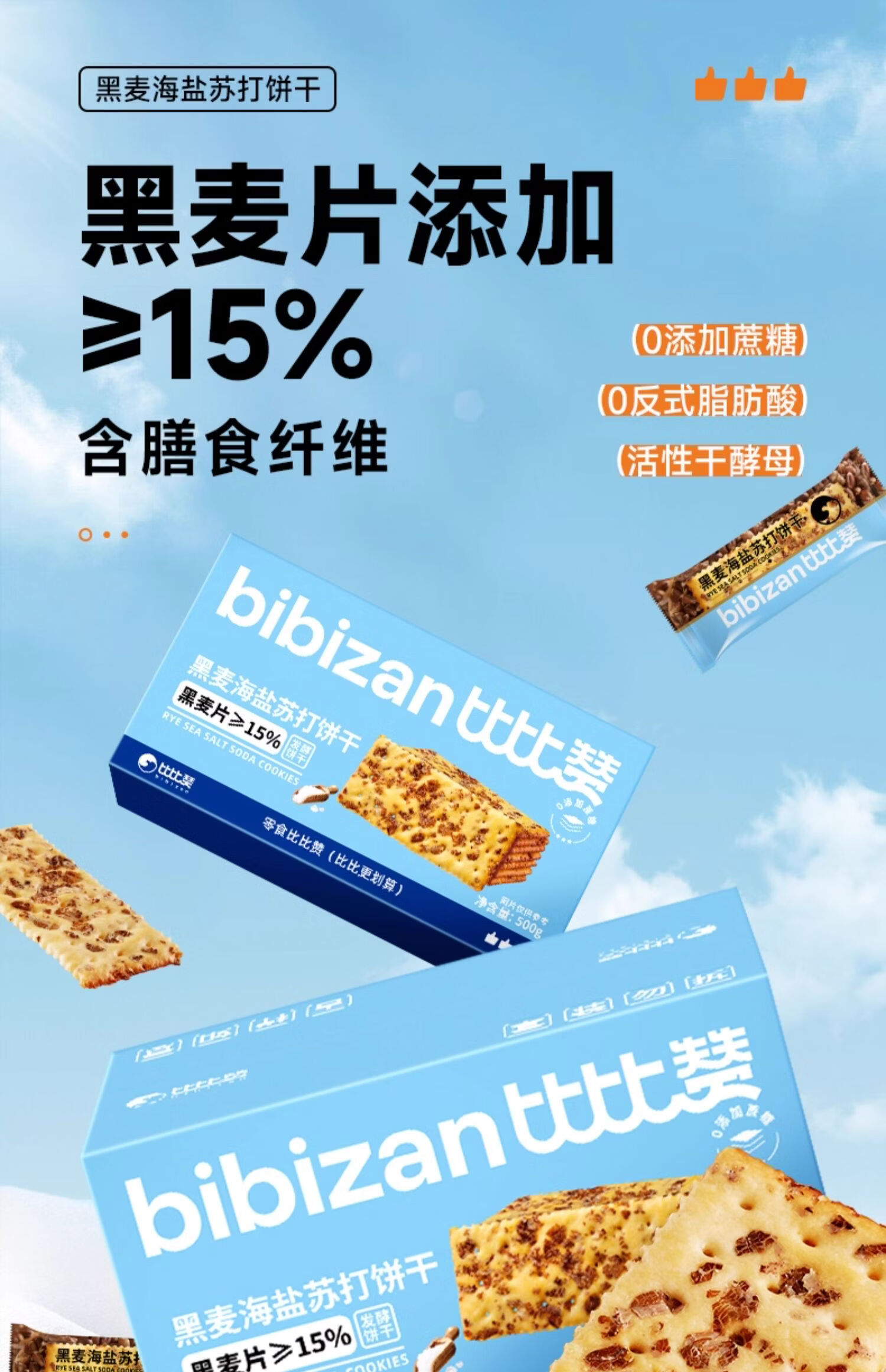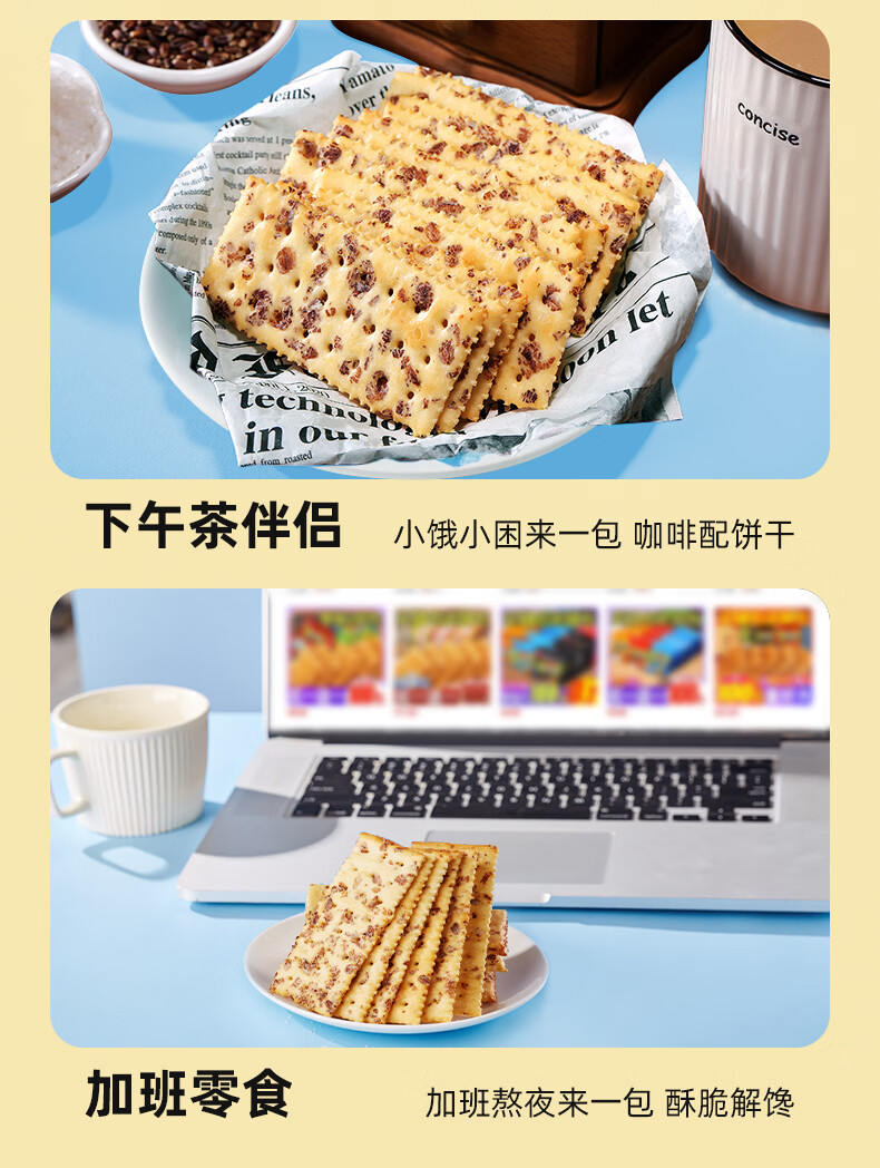 比比赞黑麦海盐苏打饼干整箱梳打早餐办公解馋小零食小吃休闲食品 黑麦海盐苏打饼干300g/箱