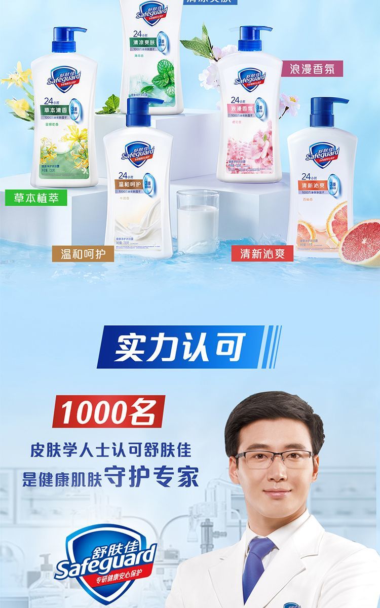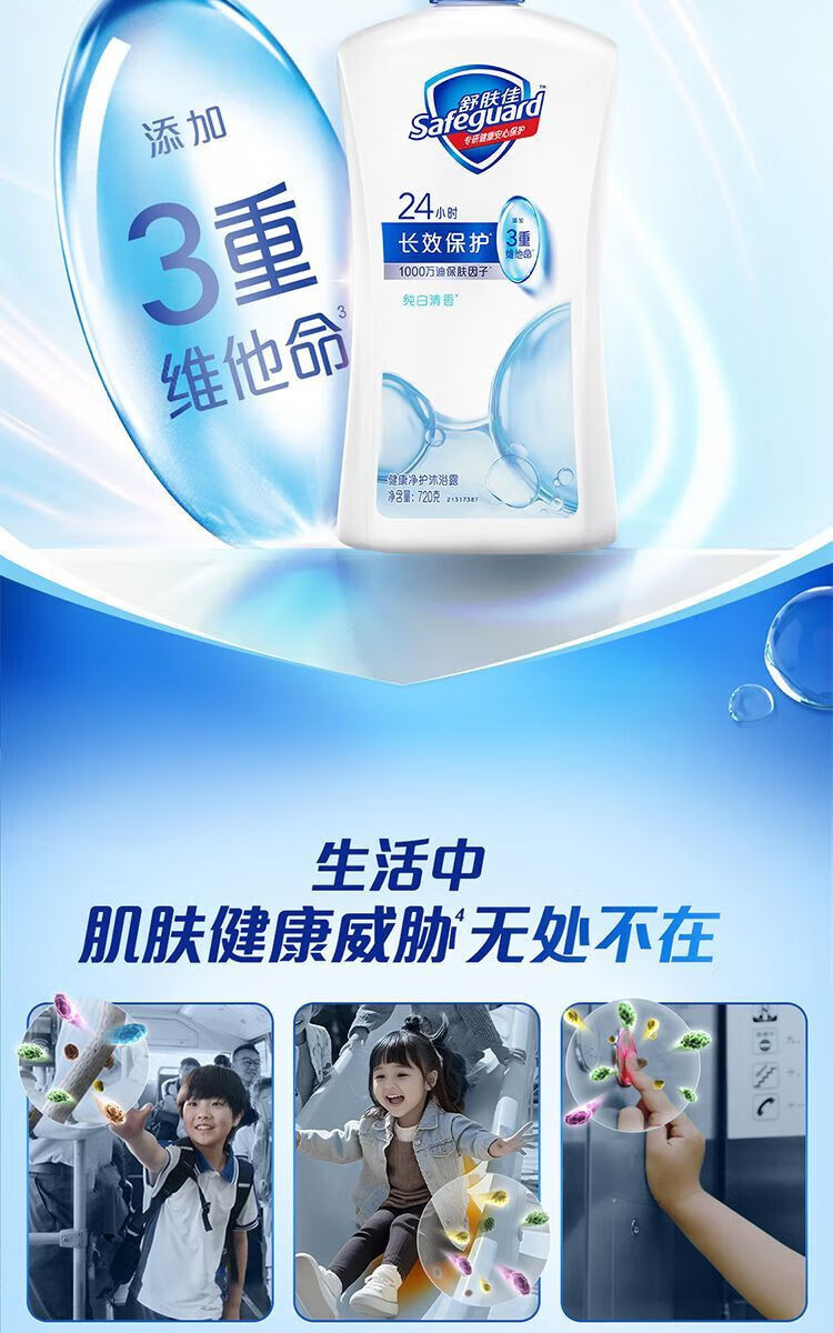 舒肤佳健康净护沐浴露 纯白清香1440g 滋润保湿 男女士通用新旧包装随机 纯白清香【720gX2瓶】【到手1440克】
