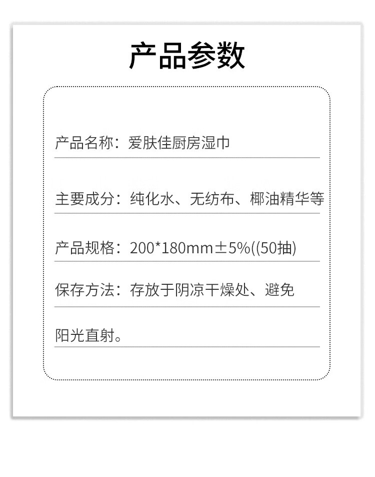 爱肤佳(aifujia)厨房湿巾去油污加厚厨房用纸油烟机重油污清洁湿纸巾一次性抹布 50抽X3包