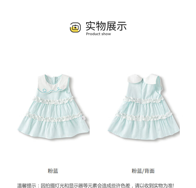 巴拉巴拉宝宝连衣裙婴儿裙子儿童公主裙女童夏装甜美气质清爽时尚 粉蓝80086 90