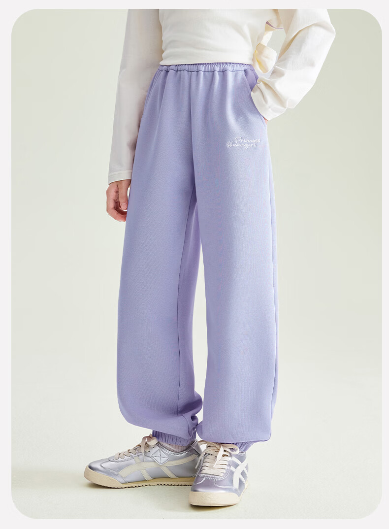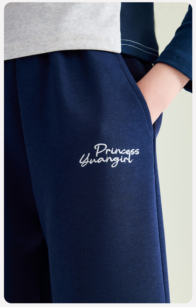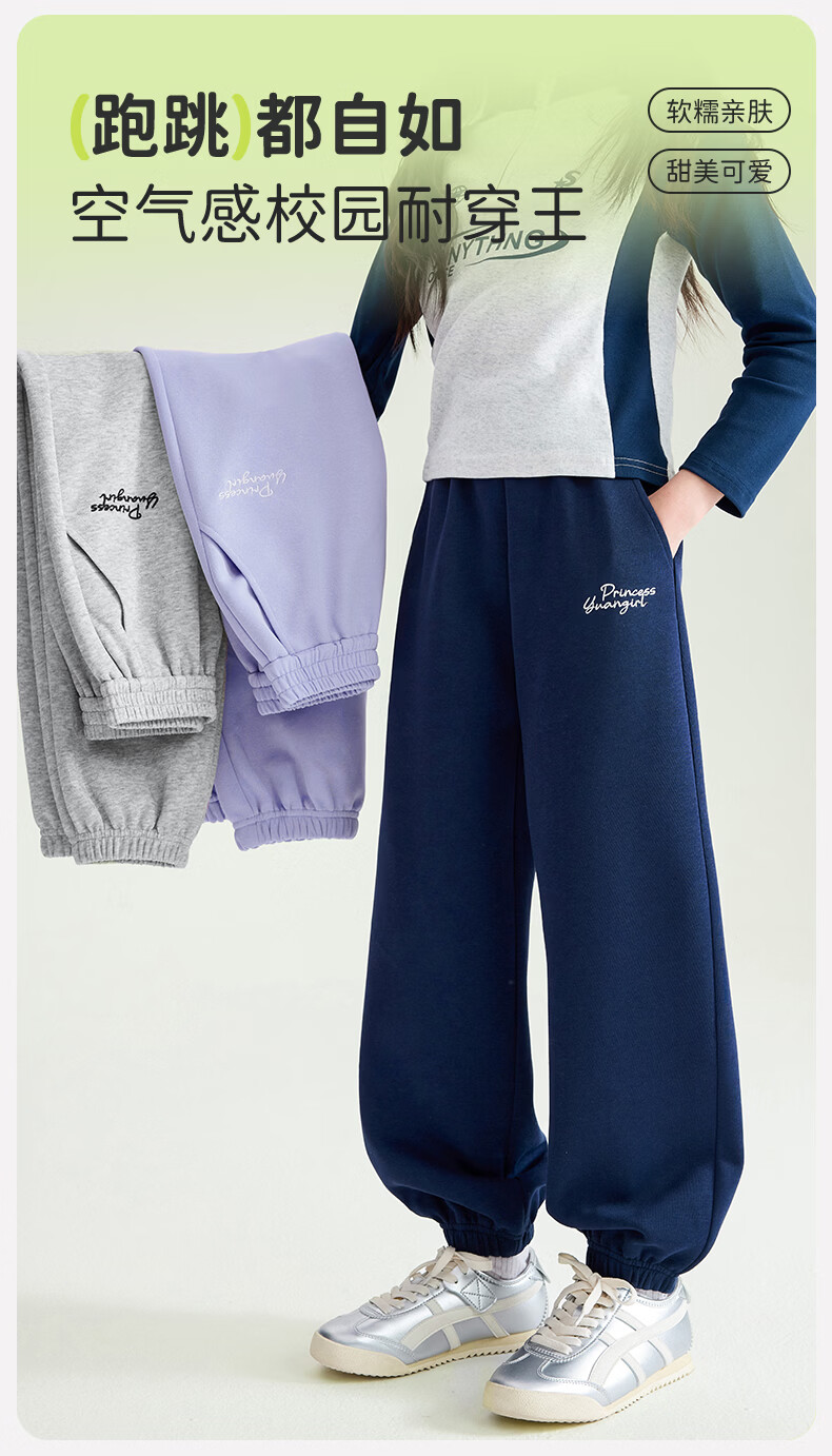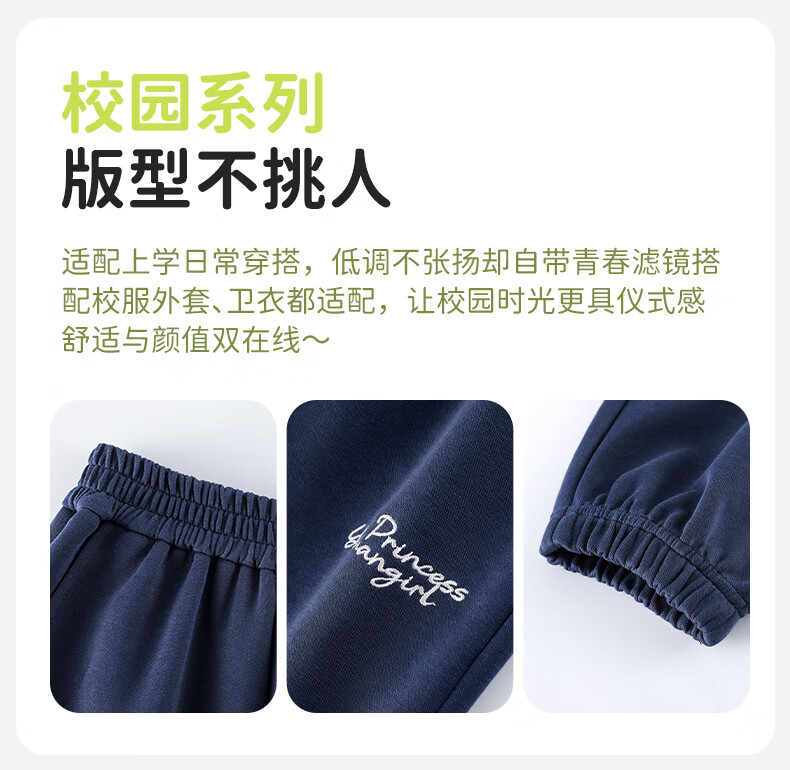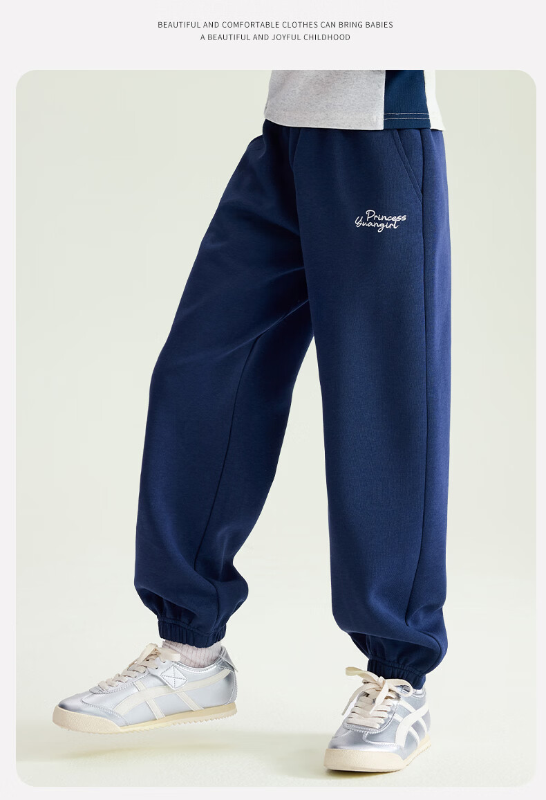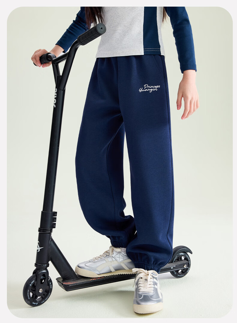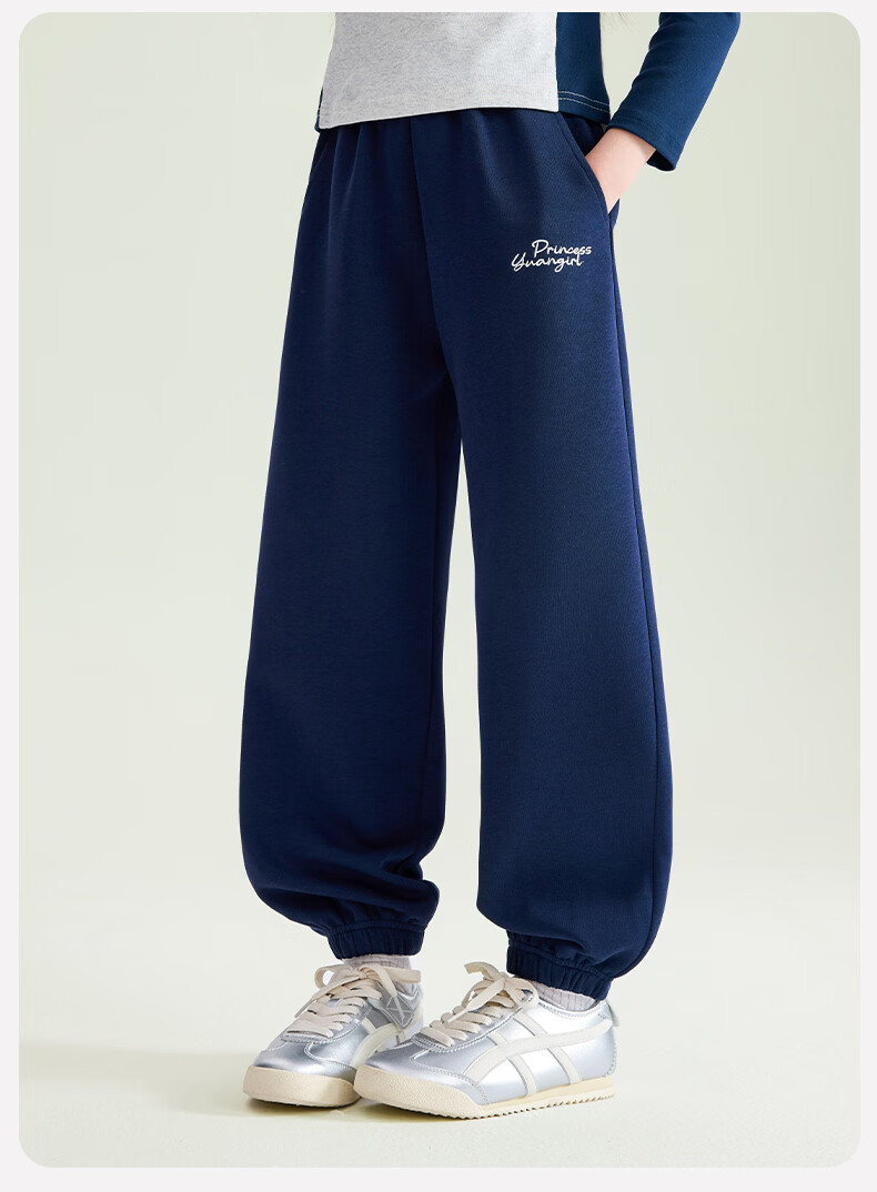 媛媛公主【校服神器运动裤】儿童裤子春秋女童针织束脚裤中大童百搭休闲裤 藏青色 110