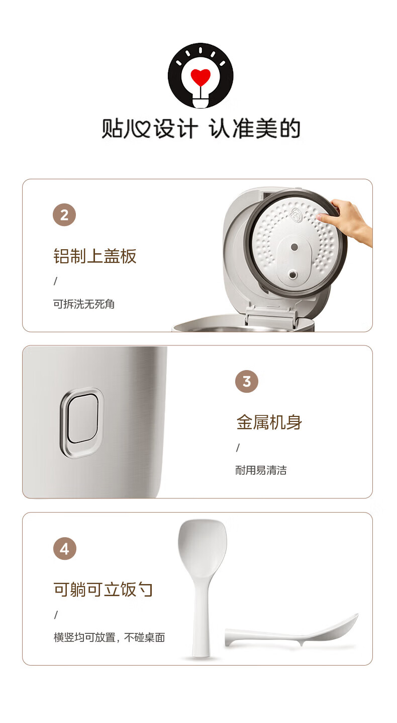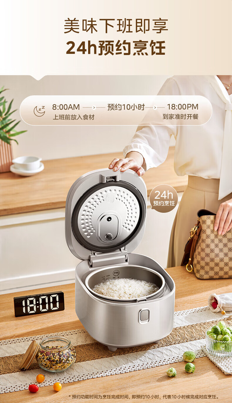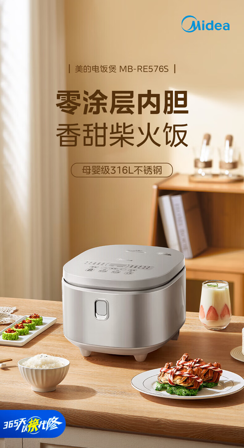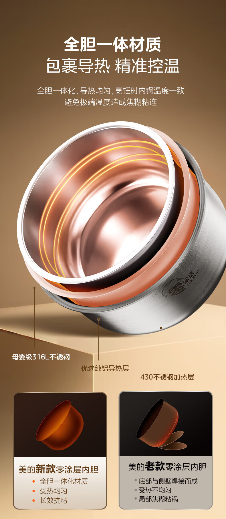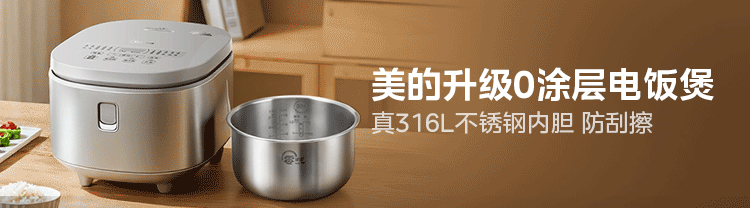 美的(Midea)电饭煲家用电饭锅5L大容量 0涂层内胆不粘锅智能预约柴火饭快速饭多功能一体煮粥煮饭锅4-5-8-10人 行业爆款 5L 【新一代0涂层健康无脱落】