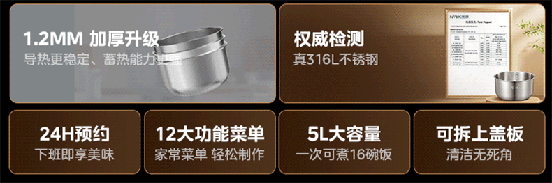 美的(Midea)电压力锅 家用5L大容量深汤少盐提鲜 双内胆加高304不锈钢錞钢厚釜高压锅 多功能智能电饭煲电饭锅 【加深内胆 | 少盐提鲜系列】 5L MY-C5936G