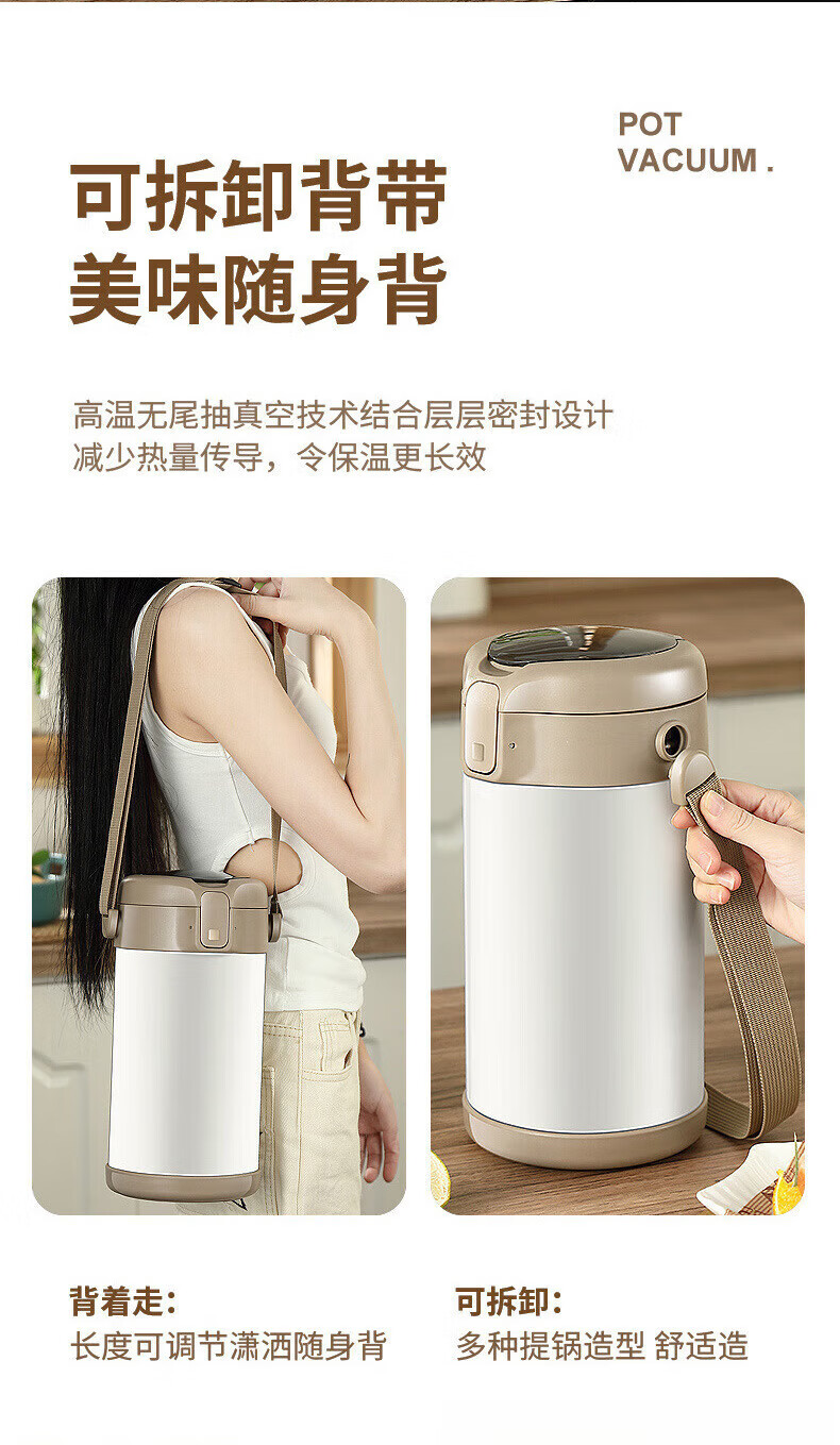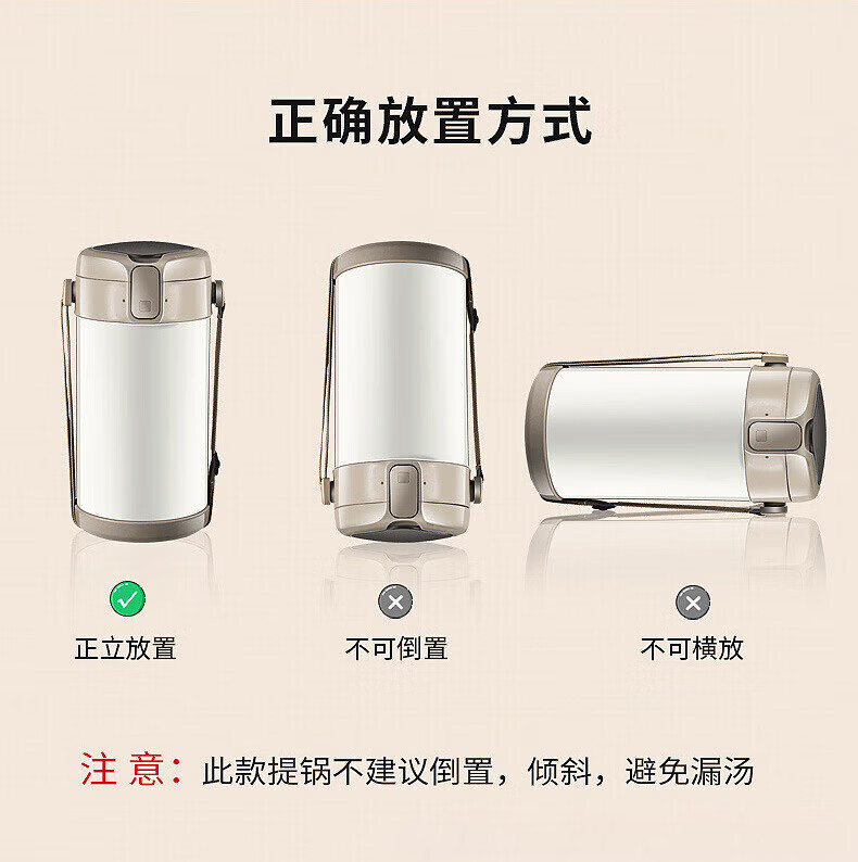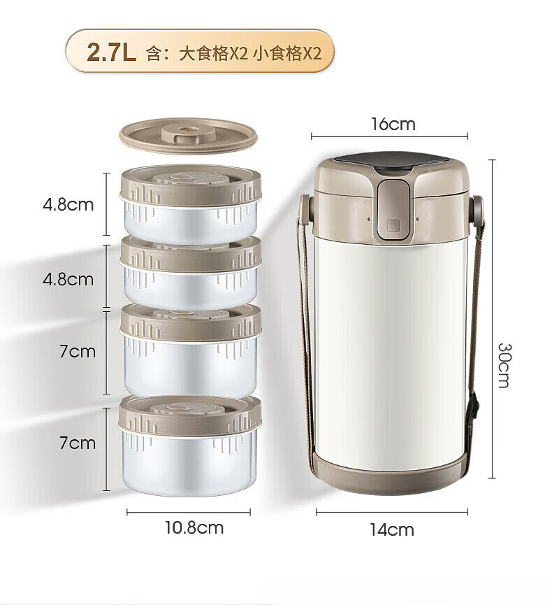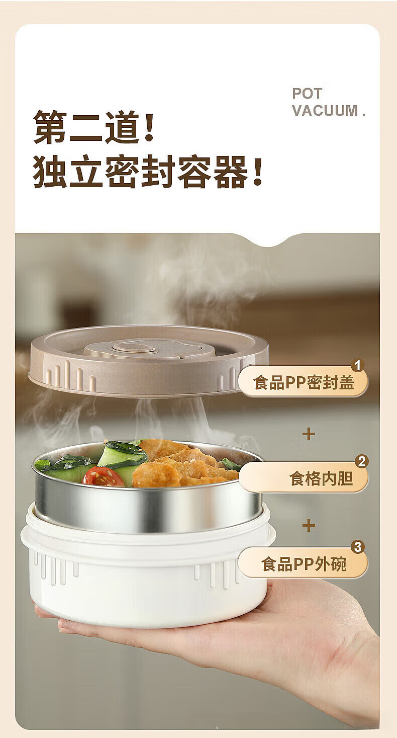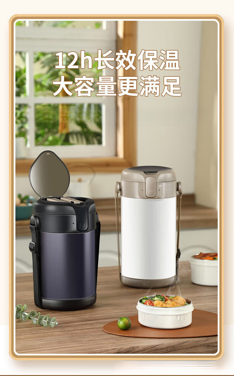 MMOTRO日本品牌不锈钢保温饭盒24小时超长保温桶上班族学生便携餐盒 不锈钢奶油白三层 2.2L 【赠送保温袋+餐具]