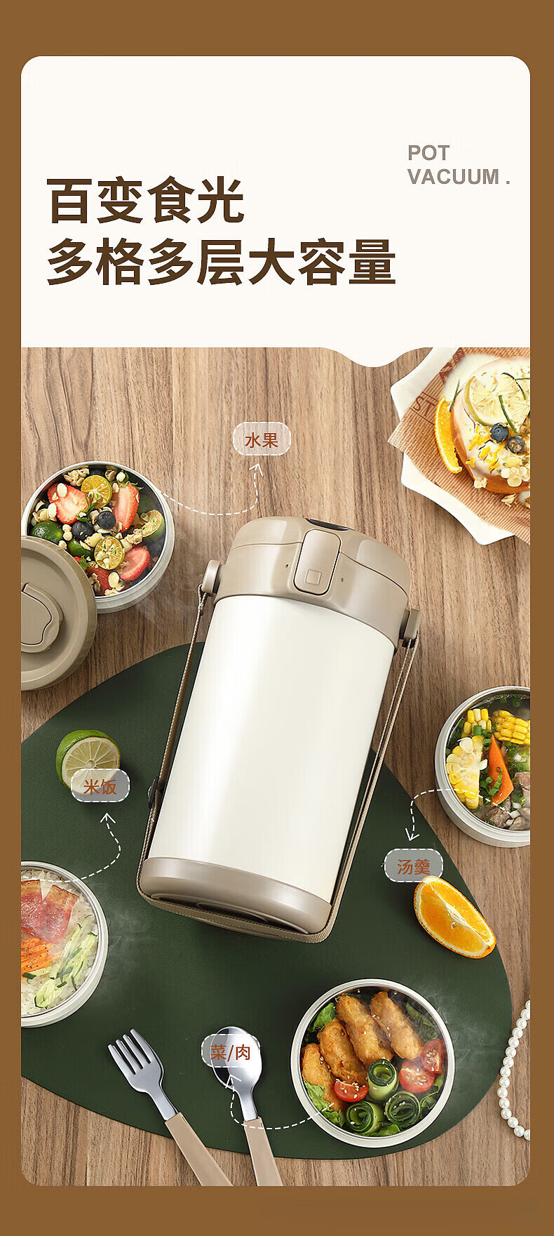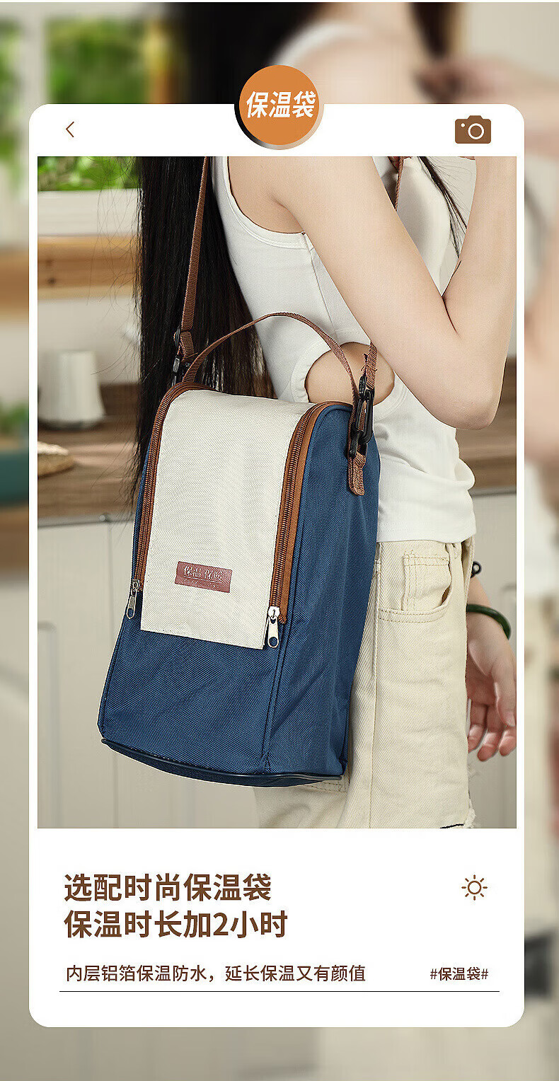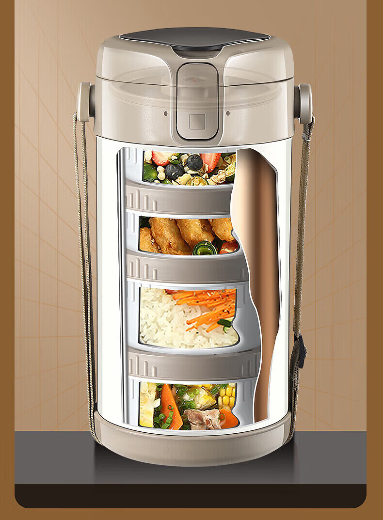 MMOTRO日本品牌不锈钢保温饭盒24小时超长保温桶上班族学生便携餐盒 不锈钢奶油白三层 2.2L 【赠送保温袋+餐具]