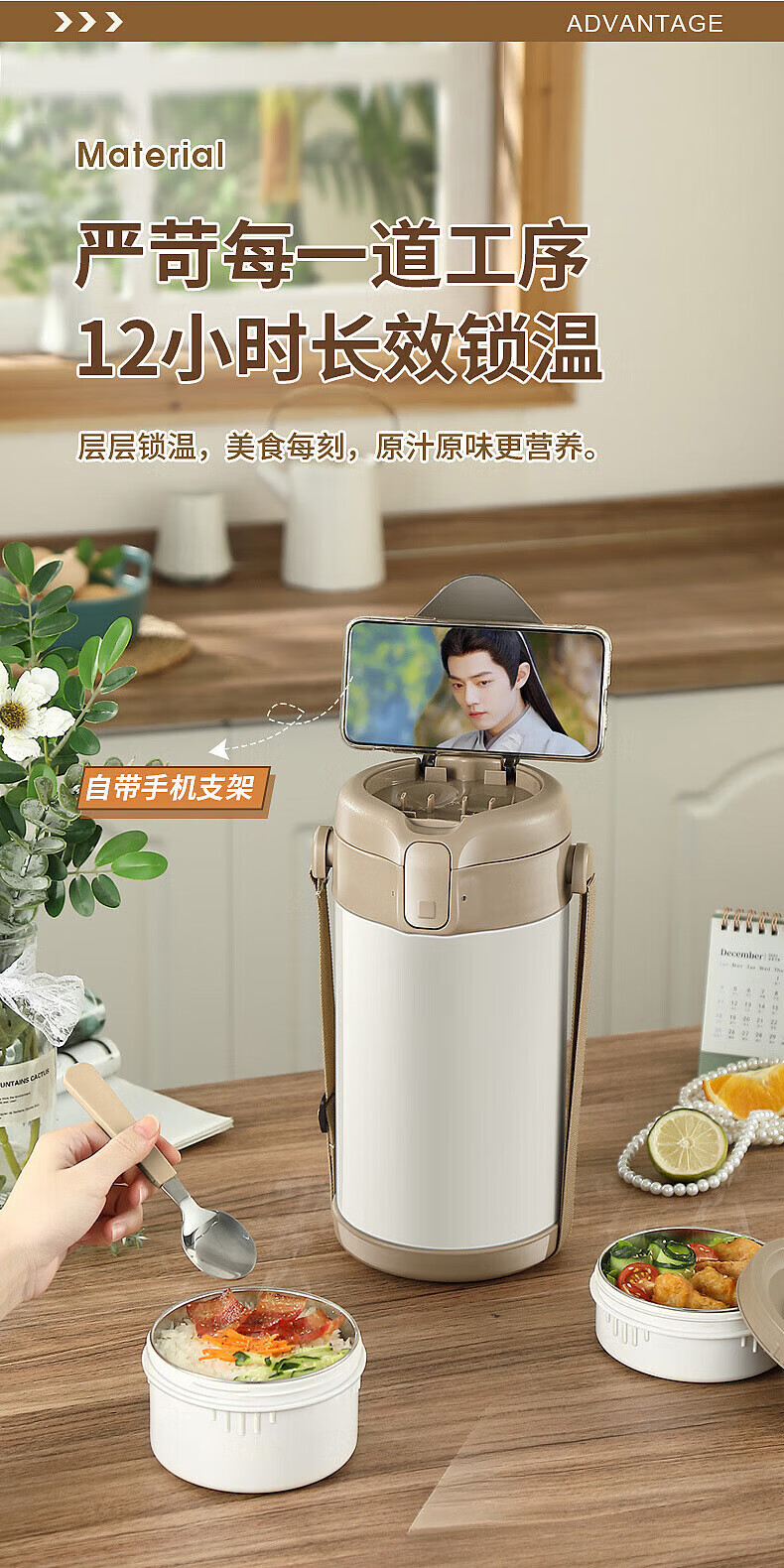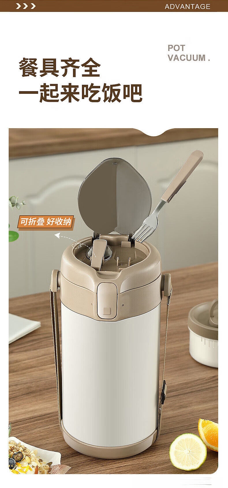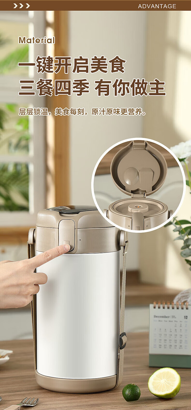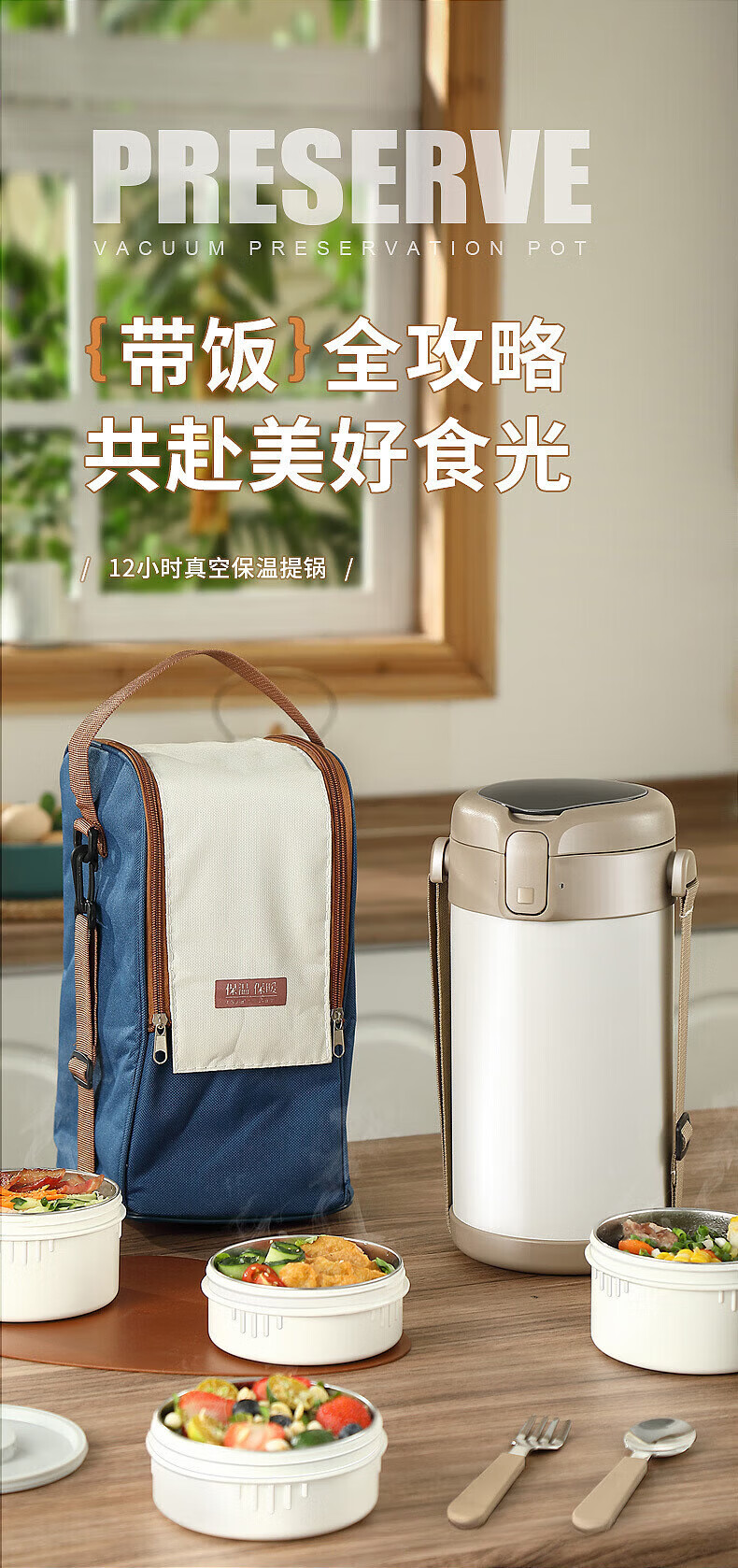 MMOTRO日本品牌不锈钢保温饭盒24小时超长保温桶上班族学生便携餐盒 不锈钢奶油白三层 2.2L 【赠送保温袋+餐具]