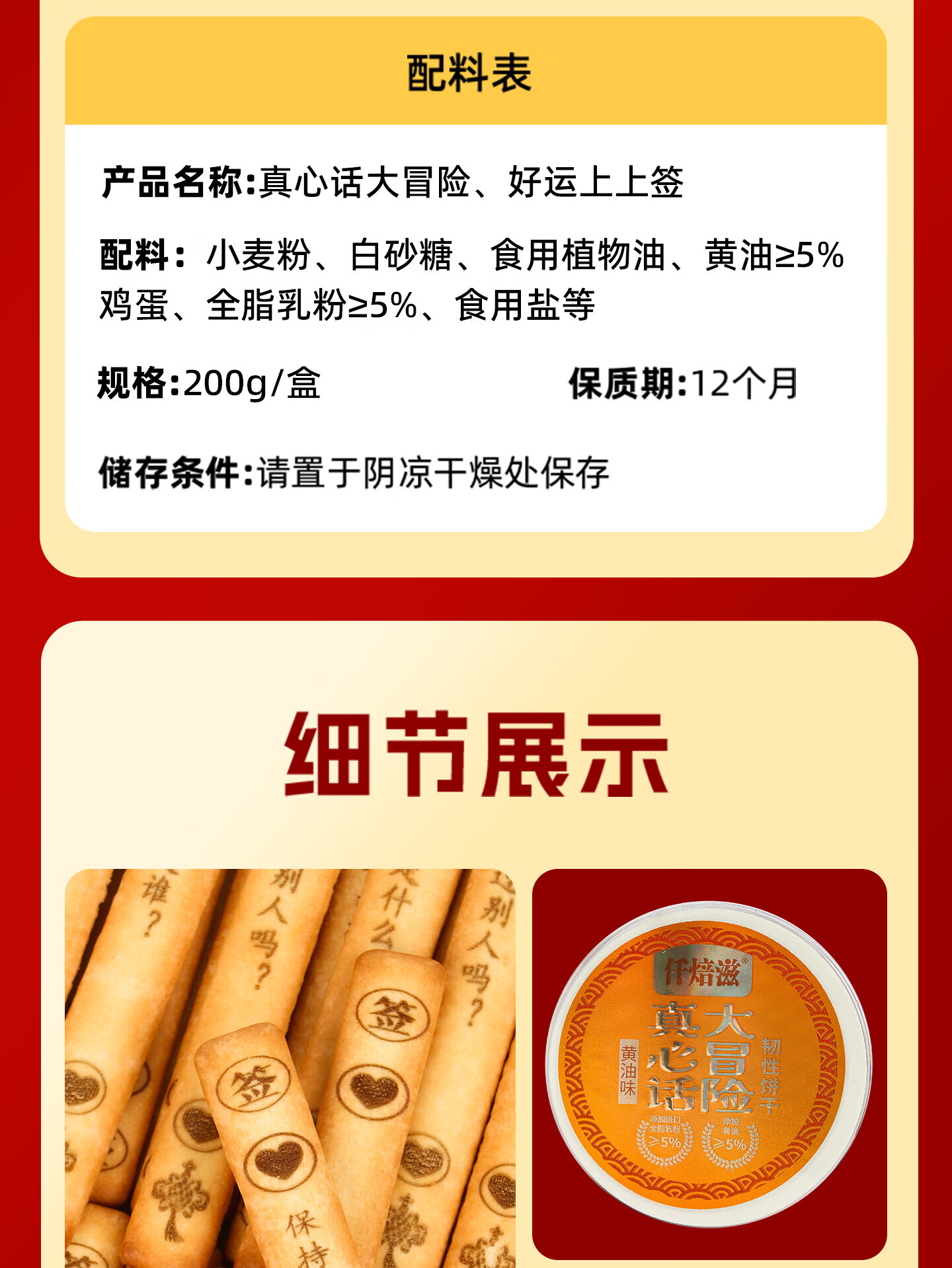 仟焙滋 好运上上签黄油味饼干200g/罐 真心话大冒险 抽签 休闲娱乐 聚会