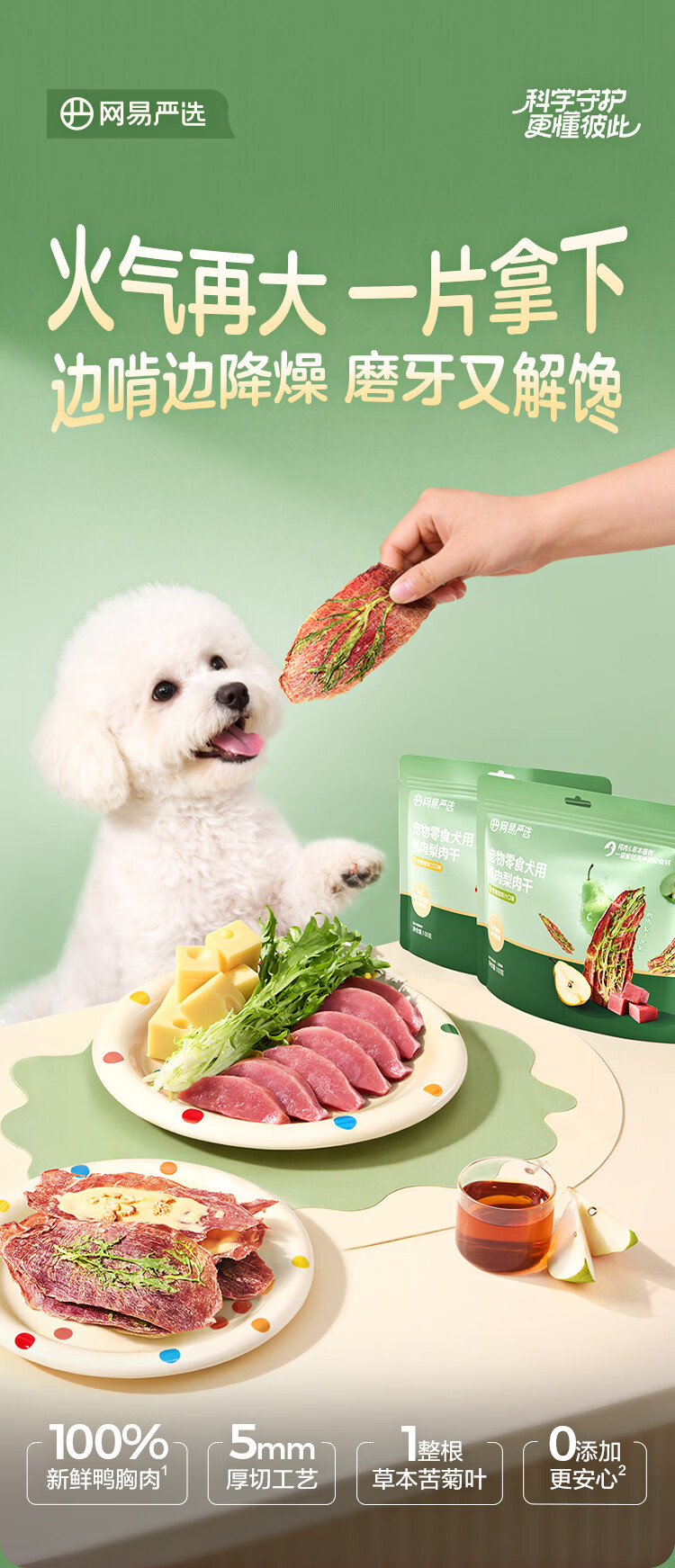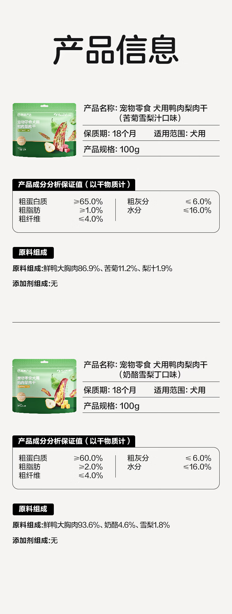 网易严选宠物狗零食 犬用鸭肉梨肉干 清热去泪痕犬零食 鸭肉梨苦菊干 100g*1袋